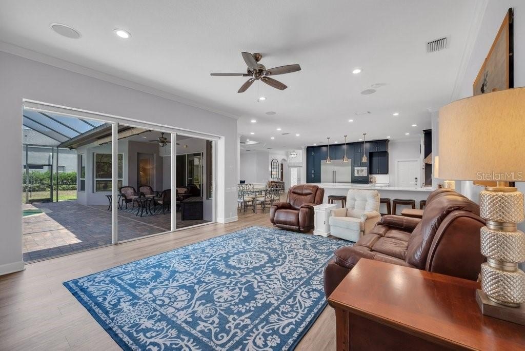 Rarely does a property of this caliber come to market. An Unforgettable Custom Home in Gated Fish Hawk Trails. Luxury meets functionality, an exceptional Arthur Rutenberg masterpiece featuring the sought-after St. Augustine floor plan. This sprawling ONE STORY estate offers * **4,142 square feet** of beautifully crafted living space on **NEARLY ONE ACRE** of land Featuring* 5 bedrooms, * 5.5 bathrooms, * a dedicated home office,* bonus room, and an * extended 3-car garage, this home effortlessly blends sophistication and comfort. Step through grand double leaded-glass doors into an interior filled with elegant finishes—premium flooring, wide baseboards, crown molding, and designer lighting throughout. The Magnificent chef-inspired kitchen is Truly One of a Kind - equipped with * Thermador appliances, built in refrigerator, pull out shelving, a 6-burner gas cooktop, double wall ovens, two dishwashers, built-in coffee station, ice maker, wine fridge, and an impressive 5' x 10' quartz island. The open-concept family room flows seamlessly to a spacious screened lanai featuring brick pavers and a large, resort-style pool & spa. A smart split-bedroom layout provides a private guest suite/in-law wing and a versatile bonus room with vaulted ceilings and lanai access. The luxurious primary suite is a true retreat with bay windows, dual walk-in closets, and a spa-like bath. >> Four of the five bedrooms feature en-suite baths, perfect for family or guests. You'll love working in home office w/built-in cabinetry & desk space. Additional features include a whole-home generator w/ extended warranty through 11/2029, whole home surround sound, Plantation shutters, motorized blinds, new fans and fixtures, sun-setter awning, roof 2016, a/c's 2017 &2022, Two hot water heaters 2022 & 2022, pool bath and powder baths, and an expansive fenced backyard—ideal for children and pets. All within a top-rated school zone and a community rich in amenities like walking trails, parks, tennis, pickleball, and more. NO CDD* This one-of-a-kind home is truly a must-see. Call today and schedule a private tour!