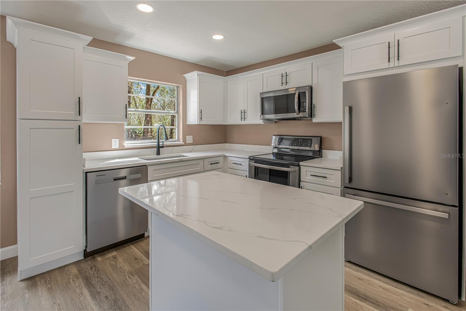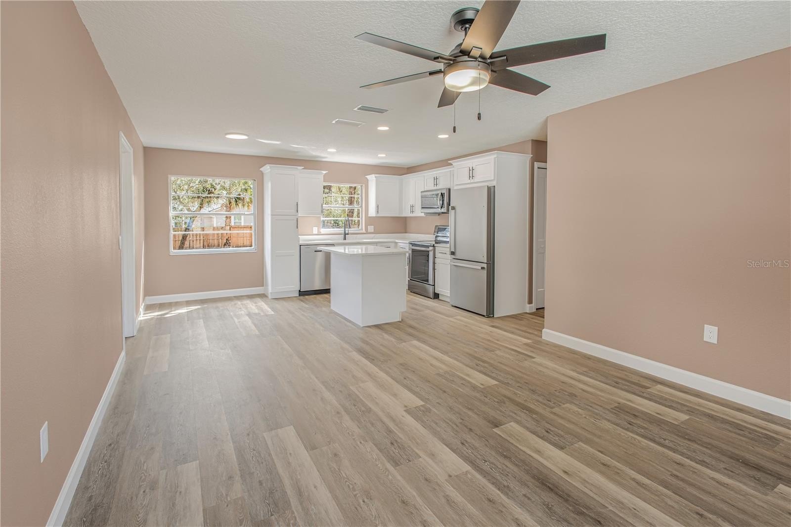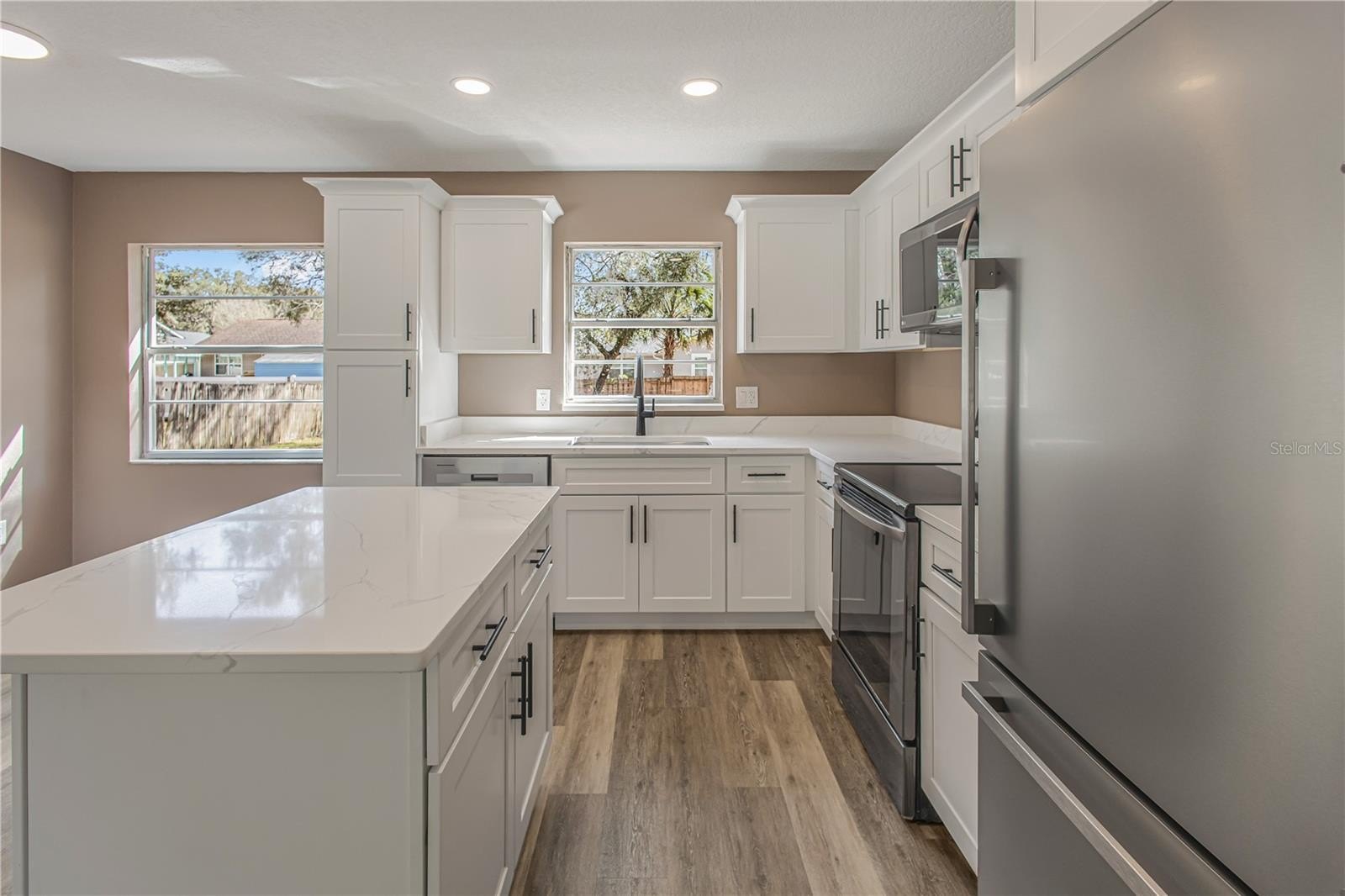 ABSOLUTELY TURNKEY – NEW ROOF, NEW HVAC, AND TOP-TIER FINISHES! Why wait for new construction when you can move into a meticulously remodeled masterpiece today? No detail has been spared in this complete transformation, headlined by a brand-new roof and new HVAC system for total peace of mind. Step onto gorgeous new luxury vinyl plank flooring that spans the entire home, complemented by new interior doors, updated baseboards, and a fresh, modern paint palette inside and out. The heart of the home is a stunning chef’s kitchen featuring solid wood shaker cabinetry, high-end Calacatta Fantasy quartz countertops, and new stainless steel appliances, including a refrigerator and dishwasher. Both bathrooms have been elegantly redesigned with custom-tiled showers featuring premium Moen valves and hardware, accented by all-new designer light fixtures. Enjoy the freedom of NO HOA and the privacy of a fully fenced backyard, perfect for pets, gardening, or entertaining. From the quartz surfaces to the structural upgrades, this home offers the luxury of a custom build with the character of an established DeLand neighborhood. Septic system has been pumped and tested and is good to go! Report available at no cost!