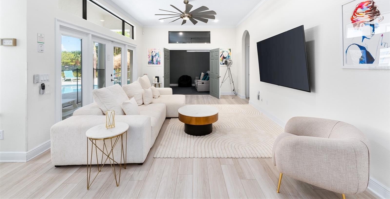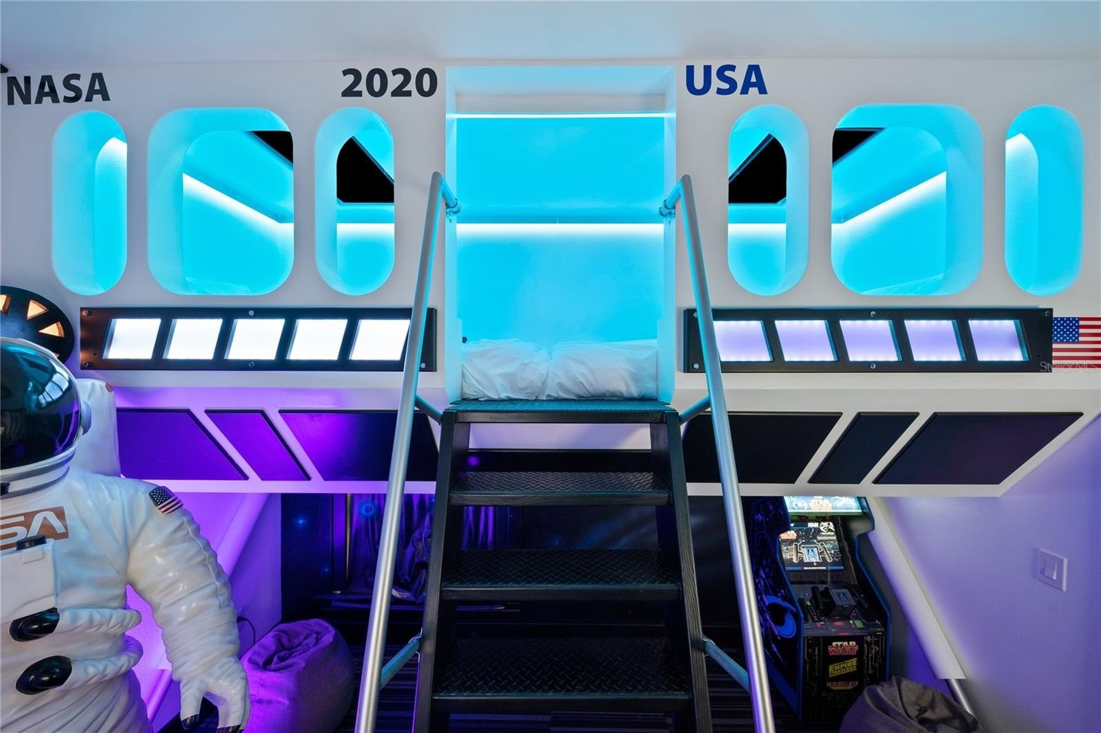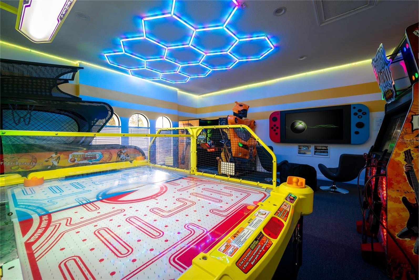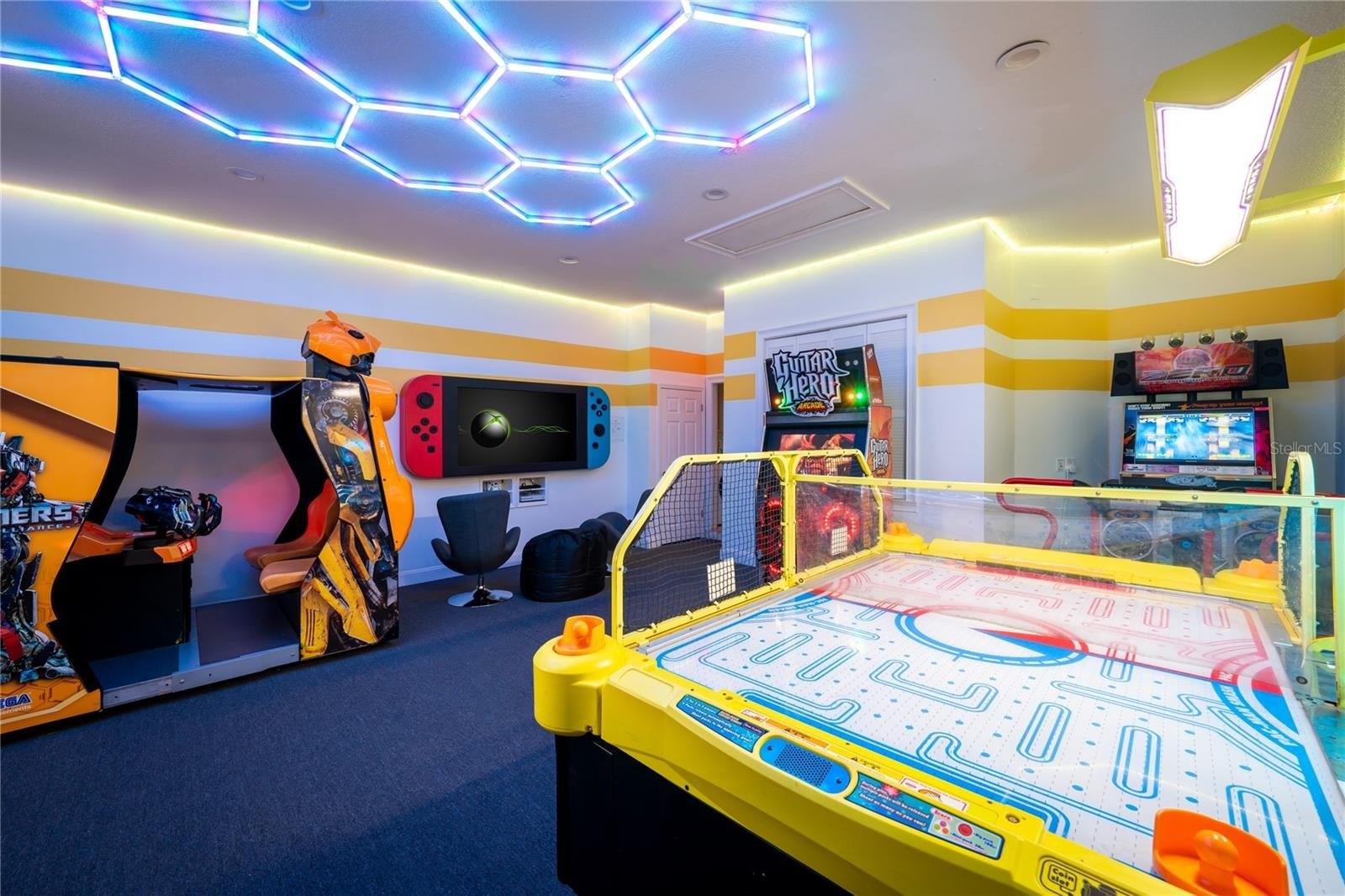 Great opportunity to own a successful vacation rental home in Reunion Resort with proven rental history. This 6 bed home is located in Reunion's East side. Being a unique, one of one, custom home makes it easier to command higher nightly rental rates in comparison to the large number of the 35ft width lot long narrow almost identical "cookie cutter" floor plan homes in the resort. This home has all key items to be a top performing vacation rental. It's rare in Reunion for any 6 bedroom homes to have a pool deck this size. Sold fully furnished with a transferrable resort membership. Create memories that will last a lifetime when staying with your own family. Then when you're not using the home enjoy rental revenue to cover expenses. From June 11th 2020 to December 31st 2025 the home has had $796,169 (gross) of rentals over 1,383 guest nights. The average annual rental revenue over that 62.5 months would be $152,864, with an average nightly rate of $575. There are currently $67.7k of guest bookings in place for 2026, over 135 guest nights. Any future bookings after closing would convey to the new owner should they decide to keep the home in the current vacation rental management program. Luxury Mediterranean inspired custom home is on a rare oversized corner lot. This home boasts one of the largest vacation home spillover spas in the whole of central Florida, up to 10 guests can relax in the hot jets. Located on the beautiful Tom Watson Independence Reunion Resort golf course and just 6 miles to the gates of Disney. Enjoy Florida sun on the rare extended pool deck that sets this home apart from most in Reunion. "Cookie cutter" homes on narrow lots with limited outside space do not compare. The amazing outdoor space features outdoor table tennis, corn-hole and a two-person hammock. The spacious lanai offers shade and a summer kitchen with gas BBQ grill and 70" TV. There is high-quality Polywood patio furniture such a table with seating for 10, seating for 5 around the firepit, and 8 sun loungers. Relax in the living room whilst watching Netflix on the 82" LED TV. There is an adjoining movie room with 110" screen, surround sound and reclining seats that has a PlayStation 4. The fully equipped kitchen has stainless steel appliances including. The large dining table below a beautiful chandelier seats 10. The adjoining breakfast nook also has an additional 4 chairs and there are two bar stools at the breakfast bar. The arcade games room will keep the whole family entertained for hours, compete against your friends on PacMac Smash 4 player Air Hockey and Basketball or the dance arcade. also a huge Transformers Human Alliance arcade. Don't forget the Xbox One connected to a TV in the form of a giant games console! Five bedrooms are located on the ground floor plus a King-sized Master suite upstairs. There is a King Master bedroom with a walk-in closet and en-suite. There are two further King bedrooms and two themed bedrooms. One has an amazing custom built princess castle bunk bed with a slide! The other is a Space theme bedroom with two Twin custom built bunk beds, both have a TV mounted in the ceiling.