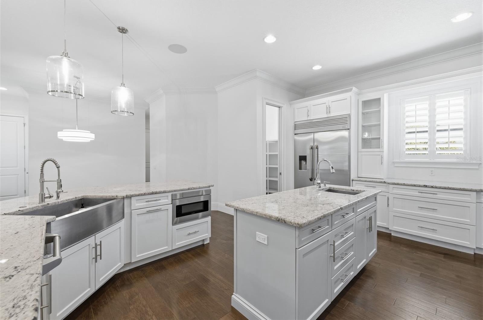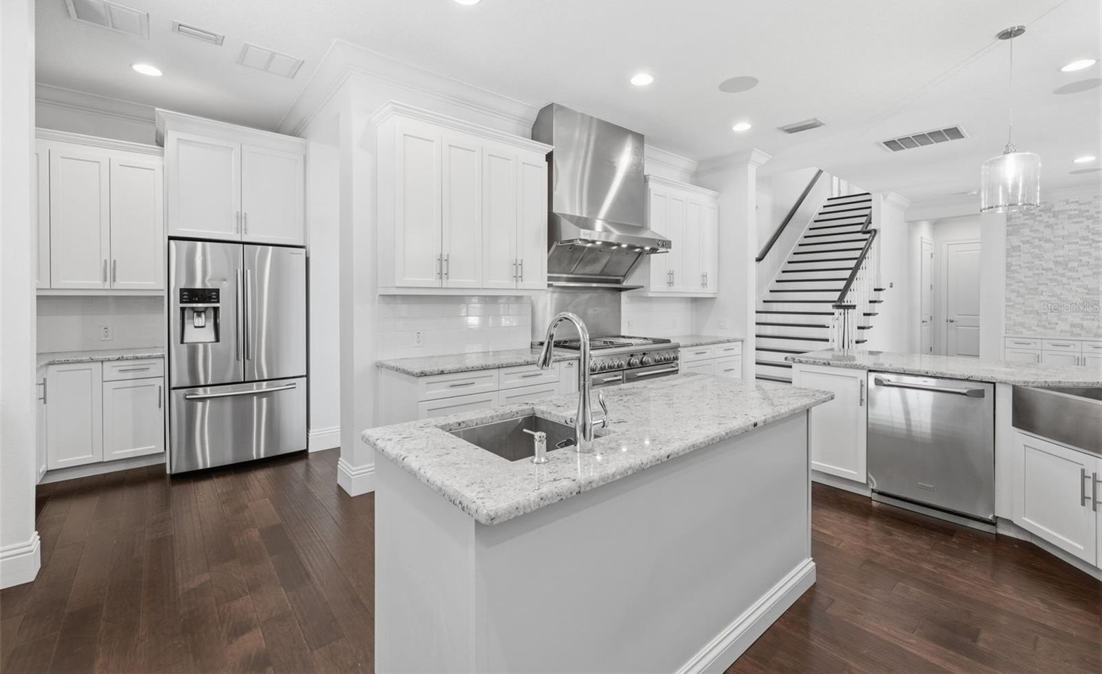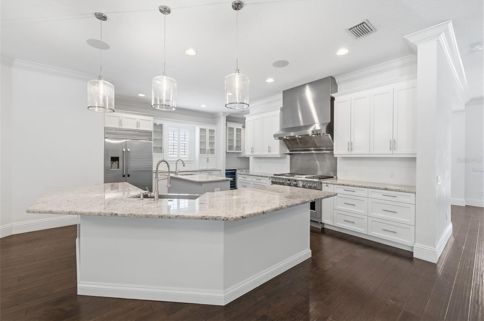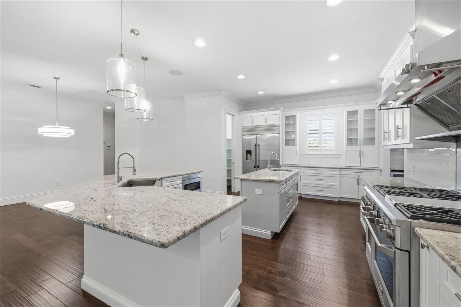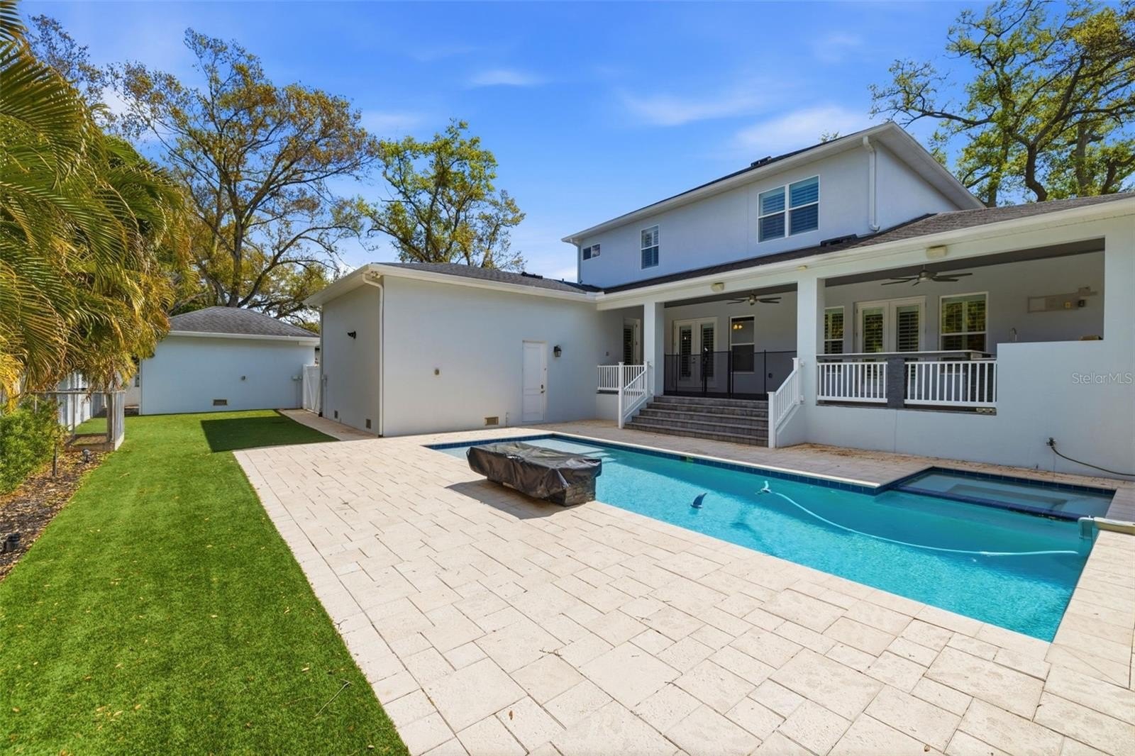 Located in the heart of highly desirable Sunset Park, this beautifully designed home by South Tampa builder Bayshore Custom Homes offers 4,106 square feet of well-appointed living space on an oversized 101 x 130 homesite with an outdoor entertainment space with a pool. This two story residence features 5 bedrooms, 4 bathrooms, a dedicated office/den, formal dining room, bonus/media room, and a spacious great room, along with a three-car garage. The open layout is designed for both everyday living and entertaining, highlighted by a gourmet kitchen with custom cabinetry, granite countertops, and stainless steel appliances, flowing seamlessly into the main living areas. The first-floor primary suite offers tray ceilings, dual walk-in closets, and a spacious bathroom with separate vanities and a soaking tub, while the second level includes additional bedrooms along with a loft/bonus room. Interior finishes include hand-scraped hickory wood flooring throughout the main level, detailed crown molding and baseboards, and hurricane impact-resistant windows. Outdoor living is equally inviting with a covered lanai featuring a built-in outdoor kitchen with grill, refrigerator, and sink. You will see beautiful custom tongue-and-groove wood ceiling outside, along with professionally landscaped grounds, irrigation, and paver driveway and walkways. This home offers quality craftsmanship in a prime South Tampa location close to dining, shopping, and top-rated local schools.