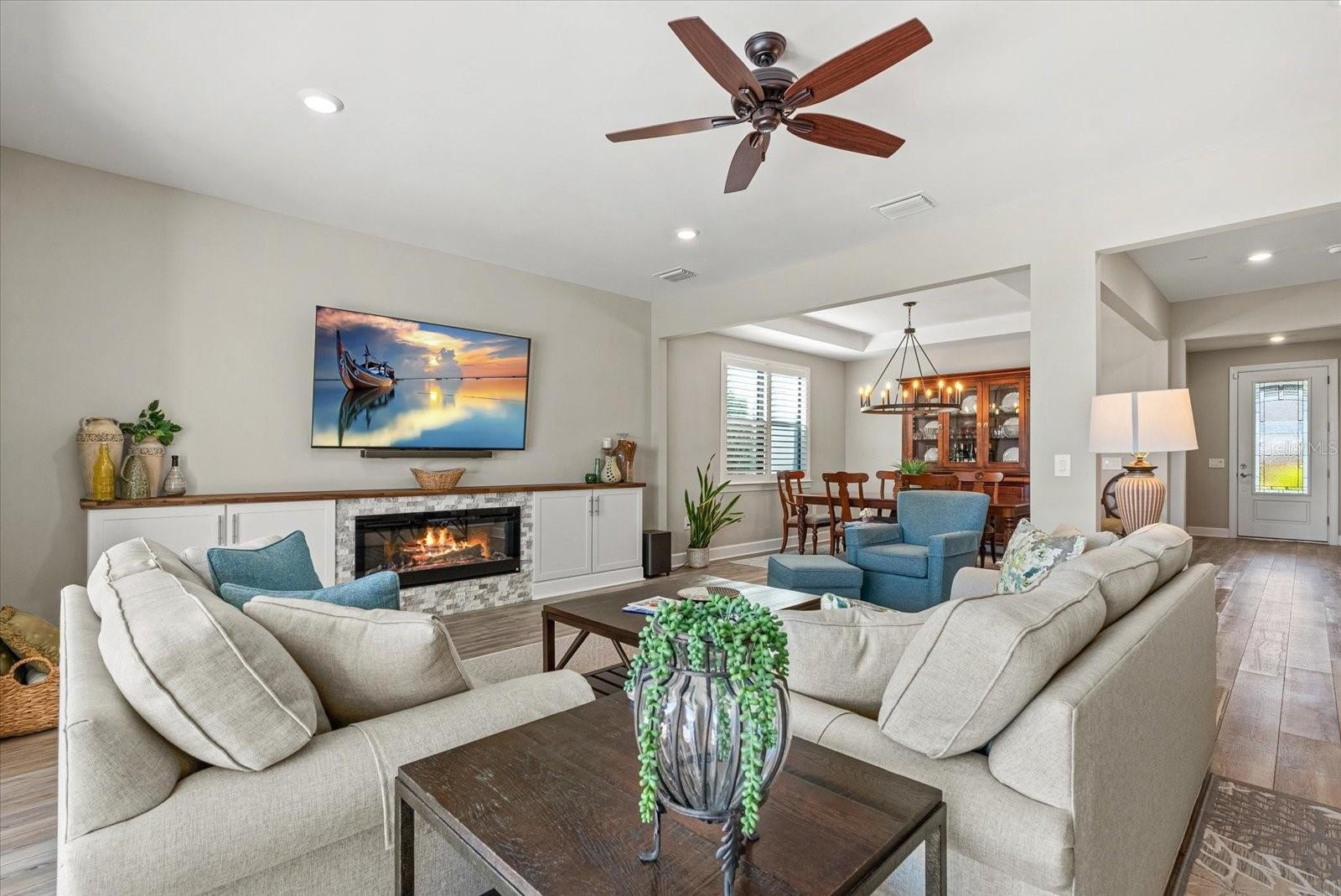 Welcome to your dream oasis in the premier gated community of Sapphire Point! This stunning Yorkshire model, built in 2022, offers an expansive 3,443 square feet of living space designed for those who appreciate luxury and functionality. From the moment you arrive, the extended driveway and sleek epoxy garage floors set the tone for the meticulous care found throughout this residence. Step inside to discover an airy, open floor plan highlighted by soaring ceilings and elegant 8-foot, 2-panel doors that lead you through a home filled with high-end finishes including quartz countertops throughout.