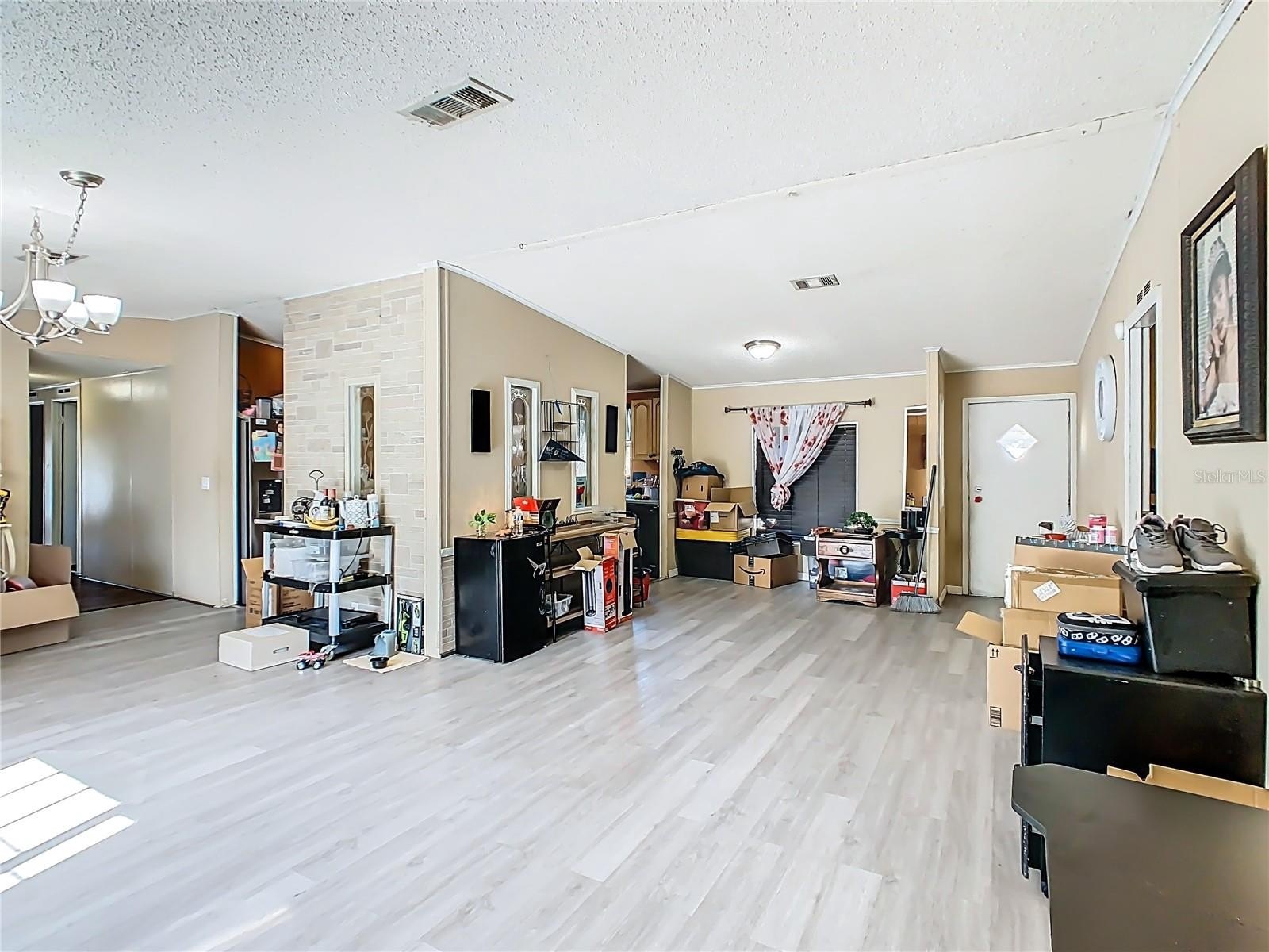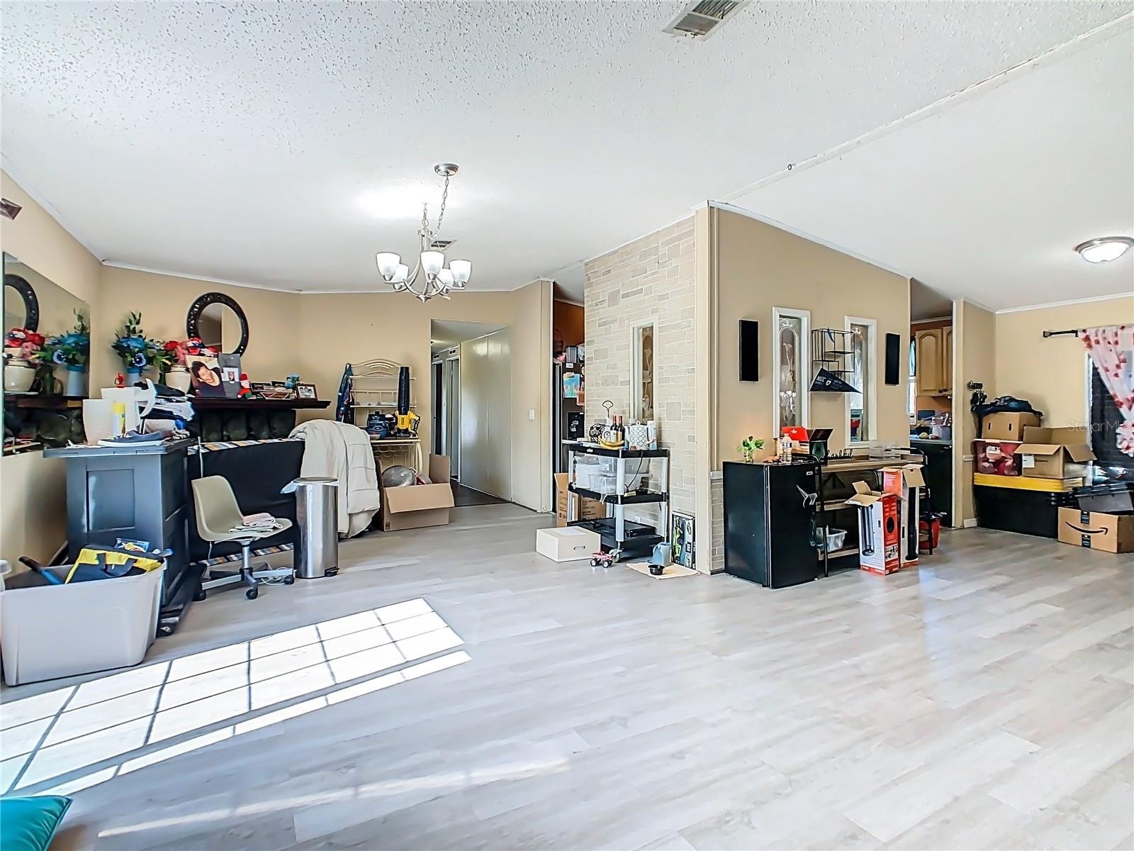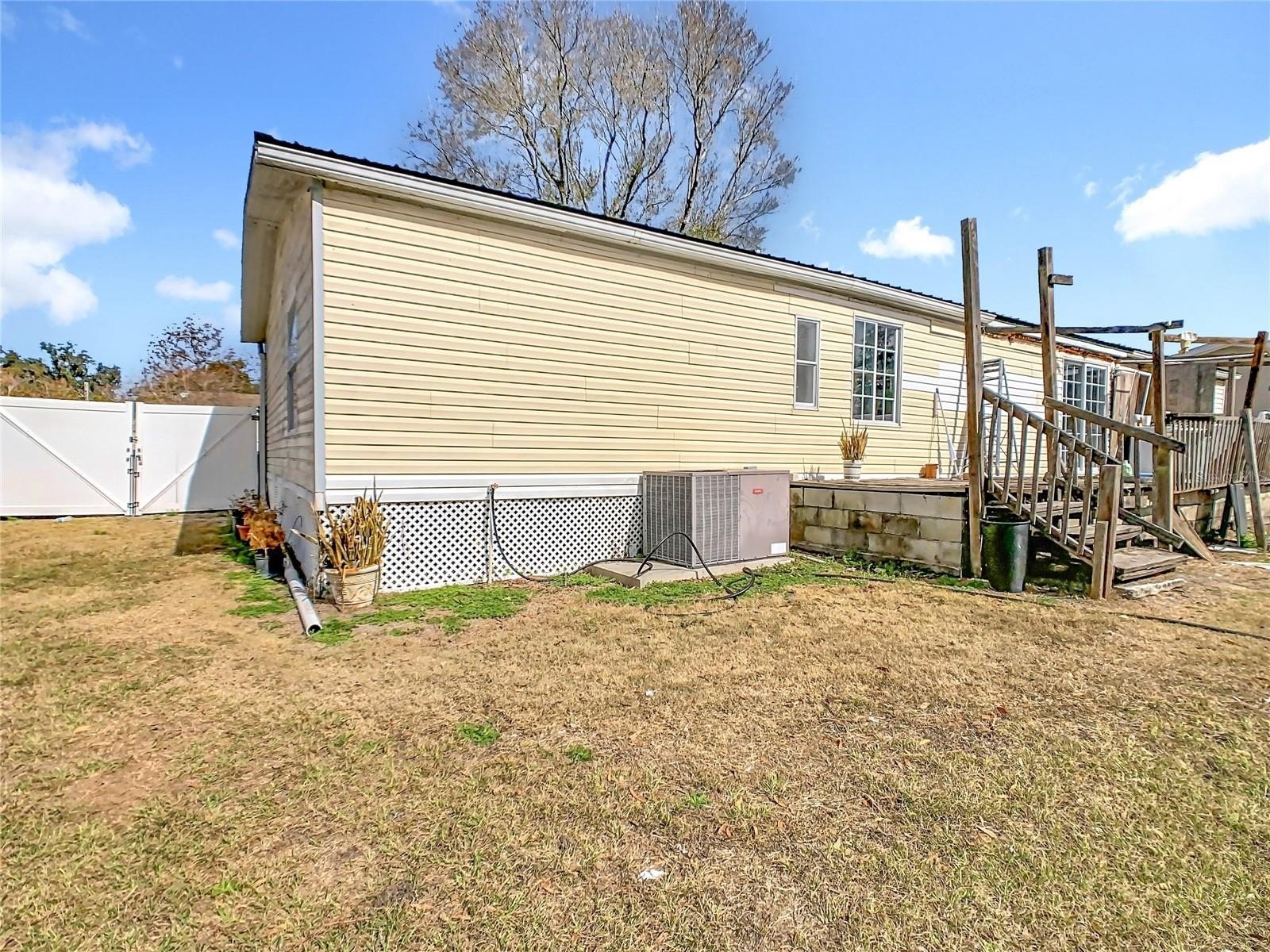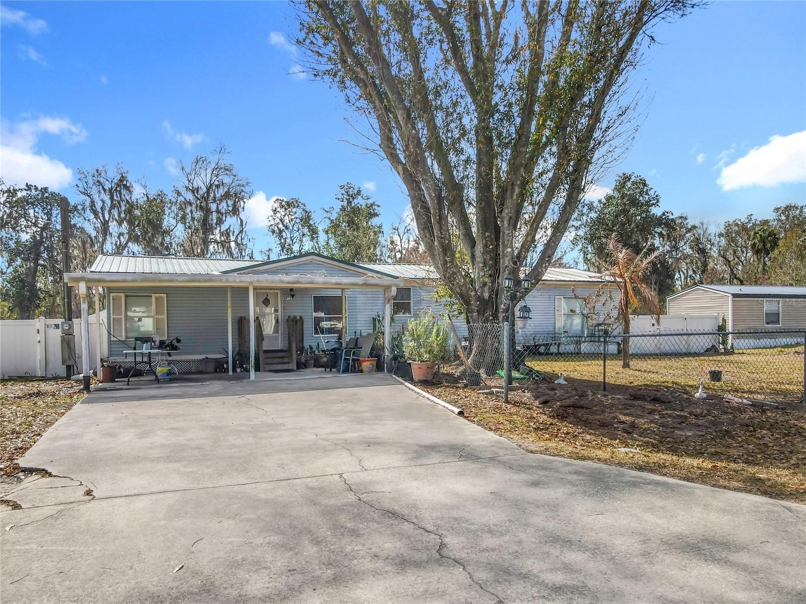 This 4-bedroom, 2-bath doublewide home sits on a fully fenced 0.50-acre lot, offering space, privacy, and no HOA or CDD fees. With 1,728 sq. ft. of living space, the home features an open living and dining area with laminate flooring, a spacious kitchen, and a split-bedroom layout for added comfort.