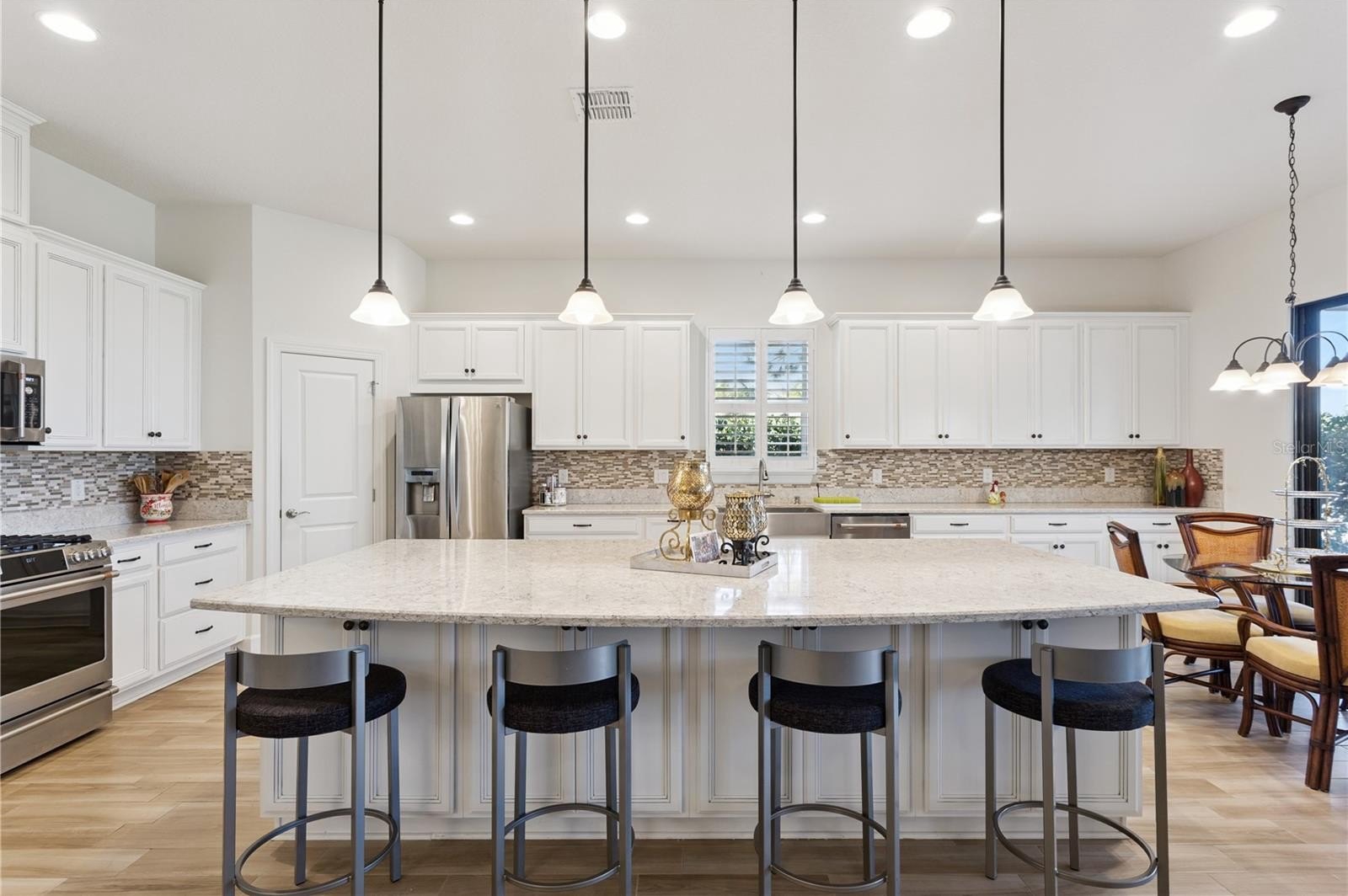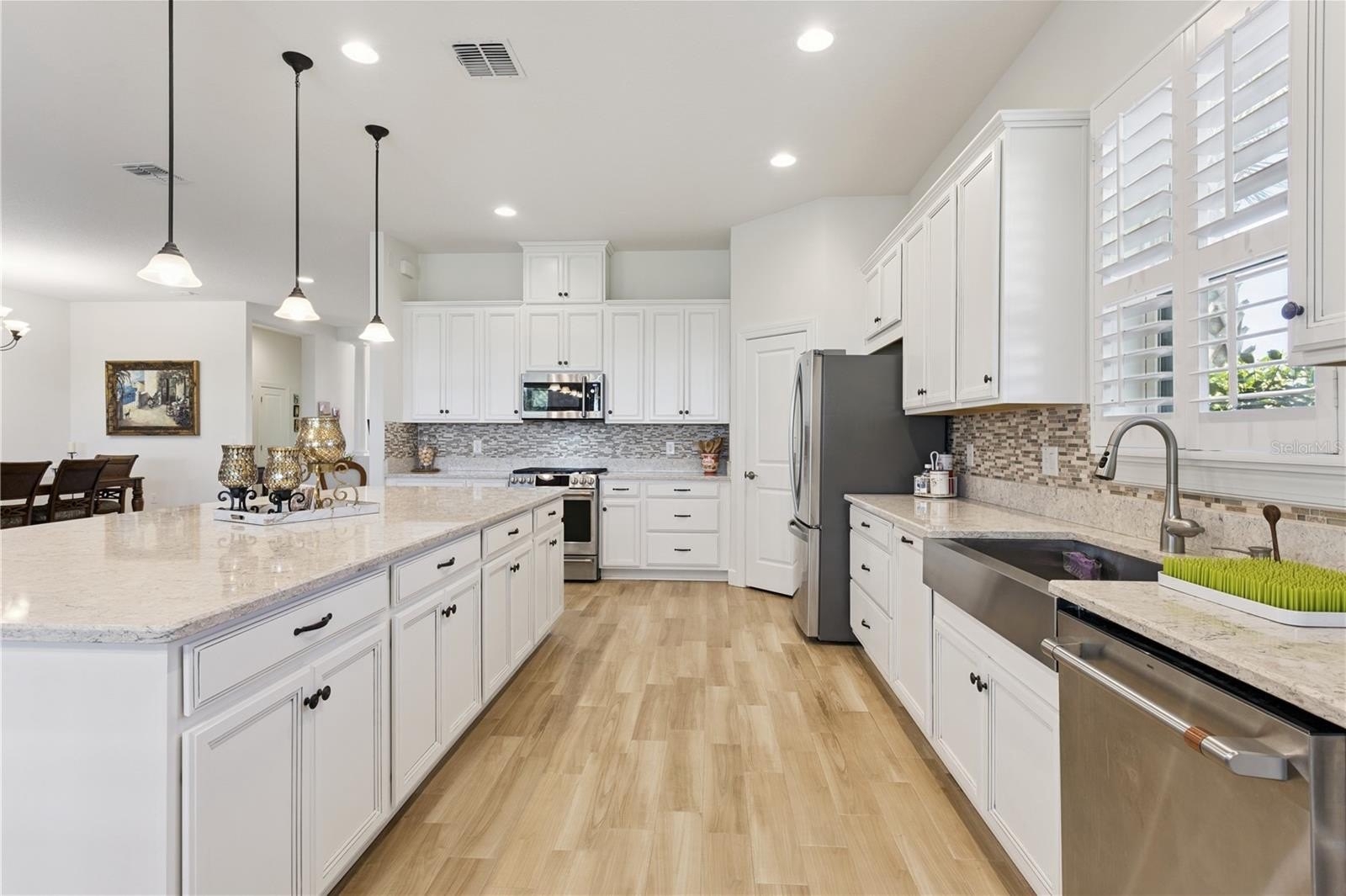 Welcome to carefree, resort-style living in the gated community of Esplanade at Highland Ranch—one of Clermont’s premier 55+ maintenance-free communities. Step into this beautifully appointed 3-bedroom, 3-bath residence with a private office/den (optional 4th bedroom) and an oversized 3-car tandem garage, offering 2,996 sq ft of thoughtfully designed single-story living space nestled among Clermont’s scenic rolling hills. This desirable “Pallazio” floor plan features an open-concept layout with generous room sizes, ceramic tile flooring throughout, custom plantation shutters, and an expansive screened lanai overlooking the private backyard and lush landscaping—perfect for enjoying Florida’s year-round outdoor lifestyle. At the heart of the home is the chef’s dream kitchen, beautifully appointed with stainless steel appliances, a massive center island, elegant quartz countertops and backsplash, solid wood cabinetry, and a spacious walk-in pantry—ideal for entertaining family and friends. The primary suite offers a bright, open retreat with abundant natural light and a luxurious en-suite bath featuring a large walk-in shower, dual sink vanity, private water closet, and an oversized walk-in closet. Guest Bedroom 2 features its own private en-suite bath, providing excellent comfort and privacy for visiting family or guests, while Bedroom 3 is conveniently located near the third full bathroom. A versatile office/flex room with French doors can easily serve as a fourth bedroom, hobby room, or study. Additional highlights include an interior laundry room with cabinets, utility sink, shelving, and included washer and dryer, along with the oversized tandem garage offering abundant storage space. Enjoy relaxing or entertaining on the spacious screened lanai, where you can take in the peaceful backyard setting. Residents of Esplanade at Highland Ranch enjoy a true maintenance-free lifestyle, with the HOA covering lawn and shrub care, fertilization, mulching, irrigation maintenance, amenities, gated entry, and community roads. The community offers an impressive lineup of resort-style amenities, including: Heated pools (lap and resistance) and spa, tennis, pickleball, and bocce courts (lighted for evening play), fire pit and outdoor kitchen, billiards, table tennis, and card room, fitness studio, Dog park and other numerous club and social activities. Conveniently located near shopping, dining, hospitals, medical facilities, golf, and outdoor recreation, with easy access to the Florida's Turnpike and just 35 minutes from Orlando International Airport. The home is also close to world-famous attractions including Walt Disney World Resort and the National Training Center, as well as miles of scenic biking and walking trails. Did we mention, No CDD fees! Don’t miss this opportunity to own a spectacular home in one of Clermont’s most sought-after active-adult communities. Call Now To Schedule Your Private Viewing Today!