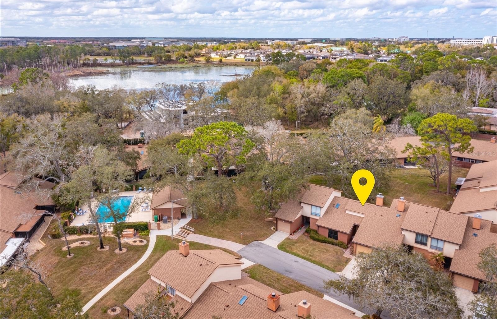 Live in the heart of Lake Mary! This is a rare find find beautiful Single Story spacious 2 Bedroom, 2 bath Condo with an Attached One Car Garage on a quiet Cul-De-Sac. From the minute you walk in you will be impressed with all this home has to offer. The Family Room is ideal for entertaining with 17 Ft vaulted ceilings, A Brick Floor to Ceiling Wood Burning Fireplace and a Wetbar area that flows into the Dining area both with Double Sliding Glass Doors that allow an abundant natural lighting. Walk out to the oversized Screened patio with 2 storage closets overlooking a lovely Park Like Setting to enjoy your morning coffee. If you enjoy cooking this is your Kitchen! This updated kitchen offers Stainless Appliances, spacious Granite Countertops, Built in Pantry, Double Sinks, Breakfast Bar, and more cabinets than you can fill and is a pass through to the Family Room for easy entertaining. The Primary Bedroom & Guest Bedroom both are approximately 15.5 x 11.5 and each have walk-in closets. The Primary Bath has a spacious shower, A Vanity with plenty of storage and Granite Countertops. The Full Guest bath has a tub sliding doors and Corian Countertop. The Laundry Room includes a Washer & Dryer and storage Cabinets, This home is just steps away from the Community Pool and Clubhouse. If you work or visit nearby Medical Hospitals or Clinics the New Orlando Health Hospital is only 1 mile away to walk, and The New Advent Health Hospital is only 2 miles away from the condo, along with Target, Publix, Home Goods, Walgreens, Many great Restaurants and shopping also within 2 miles. The schools are Top rated. No neighbors above you so you may want to see this one first as it will not last! Easy Access to I-4, Sr 417, SR 429.