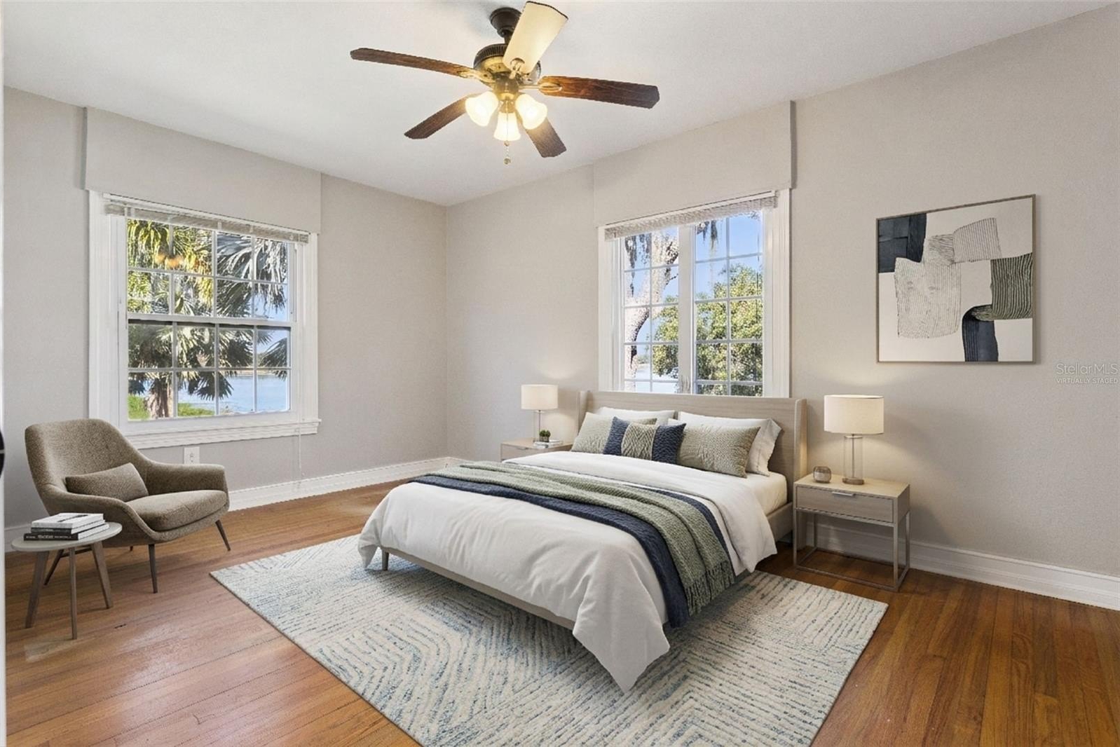 One or more photo(s) has been virtually staged. Located on a picturesque, tree-lined street in the heart of Lake Wales, this enchanting waterfront-view 3-bedroom, 2.5-bath cottage blends timeless charm with modern comfort. Situated on a premium double lot, the property offers exceptional privacy—whether relaxing on the open patio or enjoying the swimming pool.