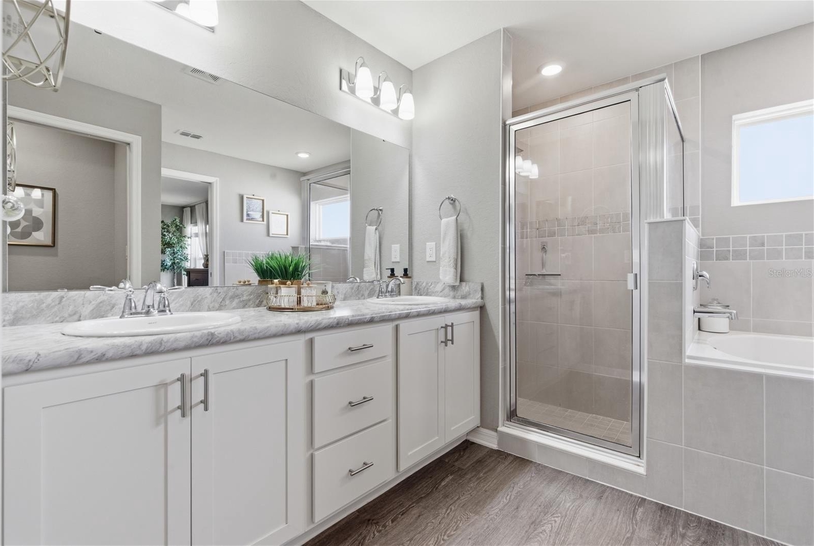 The thoughtfully designed split-bedroom layout provides privacy, with a spacious primary suite that offers a large walk-in closet and a beautifully appointed bathroom complete with dual vanities, a soaking tub, and a separate glass-enclosed shower. Three additional bedrooms are generously sized and perfect for family, guests, or a home office. You’ll also appreciate the convenience of a dedicated laundry room and a large pantry for extra storage. This home also offers the added benefit of NO CDD fees and a low HOA of just $275 annually, helping keep ownership costs affordable.