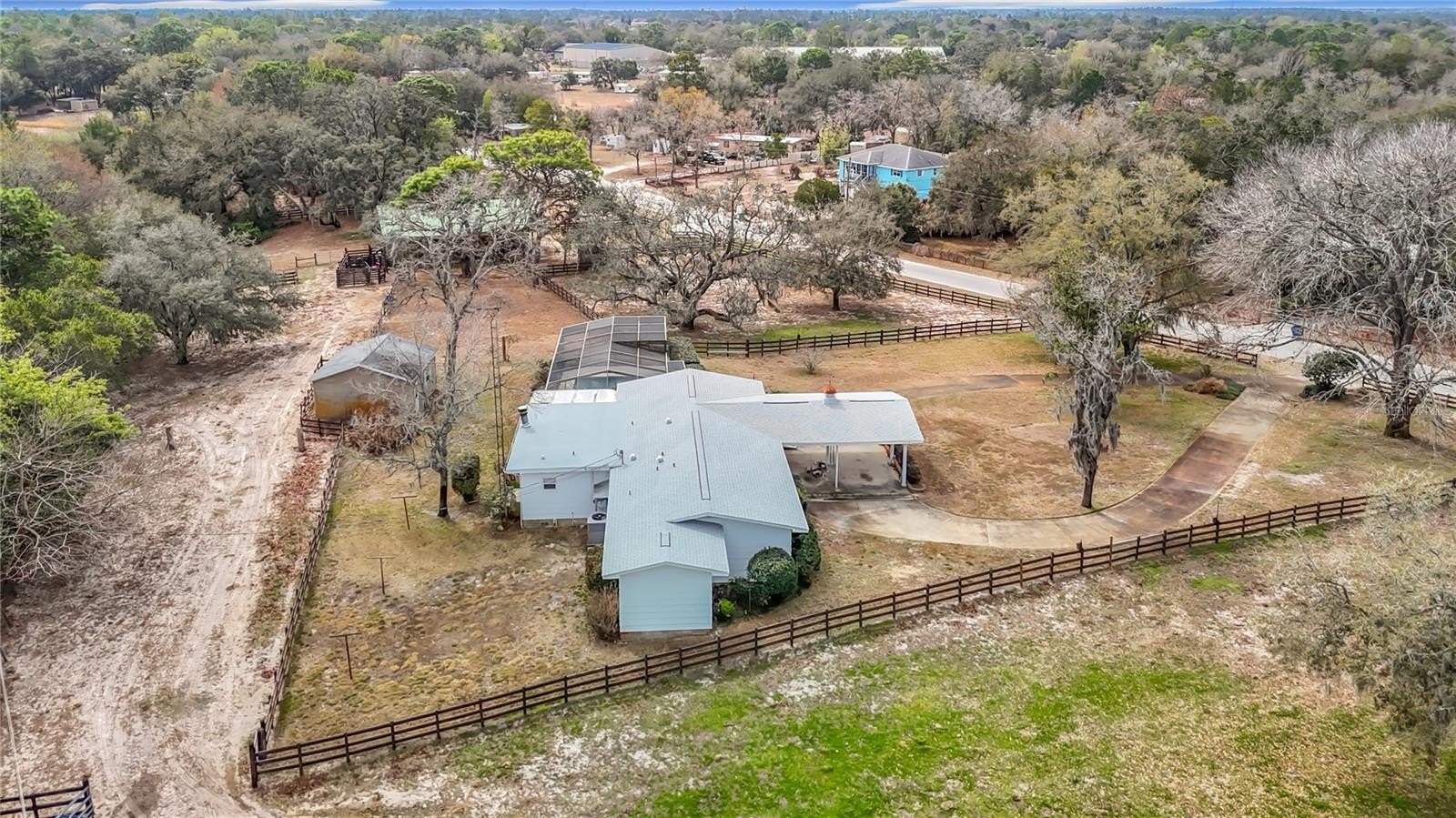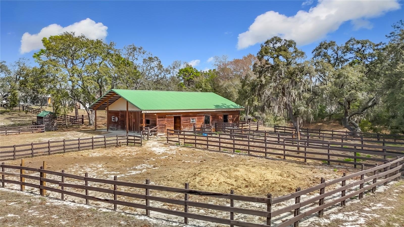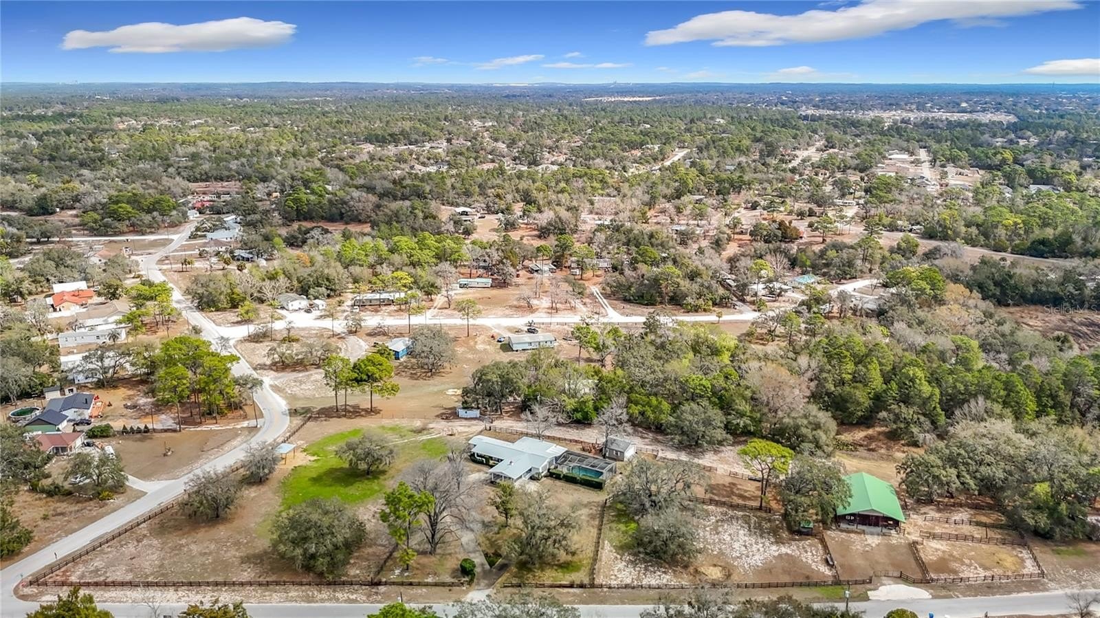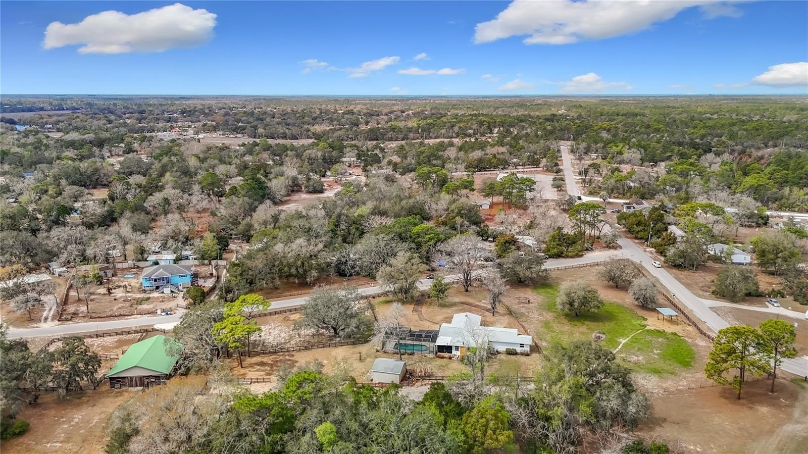 Experience the perfect blend of country living and modern comfort with this exceptional 4-bedroom, 3-bath pool home situated on a fully fenced 3.2-acre lot overlooking a serene pond. The property boasts a remarkable 40x48 drive-thru hay barn featuring three stalls, a tack room, a feed room, and a tractor/storage room--all equipped with water and electric for your convenience. Additionally, there is a detached two-car garage with electric and water, and a spacious extended circular driveway leading to a two-car carport with attic space. Inside, you'll find an open floor plan with a welcoming living/dining combo, enhanced by newer PGT double-pane windows and a new slider in the living room. The kitchen is features newer stainless-steel appliances, a closet pantry, and a pass-through to the family room, which includes a cozy wood-burning fireplace, the third full bathroom, and another newer slider opening to the pool area. The master ensuite is generously sized with newer double-pane windows, dual sinks in the master bath, and a step-in tub. The three additional bedrooms share a second bathroom, with the third and fourth bedrooms offering ample space. Step outside to appreciate the tranquil views, relax under the shade of beautiful oak trees, or take a refreshing swim in the diamond brite pool on warm summer evenings. Other notable features include a new roof (2024), AC replaced in 2017, a newer water heater, water softener, and an alarm system, making this peaceful property the ideal retreat for both relaxation and entertaining. This property combines comfortable living spaces, modern amenities, and a spacious lot, making it an excellent opportunity for those seeking a peaceful country lifestyle with room to grow. Lots of shopping and favorite local dining options nearby. Minutes from the famous Weeki Wachee live mermaids, Pine Island Park and Roger's Park for fun on the water. Close to the Suncoast parkway for quick access to the airport, Tampa, Clearwater and St. Pete Beaches (Ranked in the top 5 Beaches in the US), also close to the famous Tarpon Springs Sponge Docks. Enjoy everything Tampa Bay has to offer from the new Downtown Riverwalk, TOP US BEACHES, boating, fishing, golfing, cultural entertainment, and museums...and of course beautiful year-round weather!