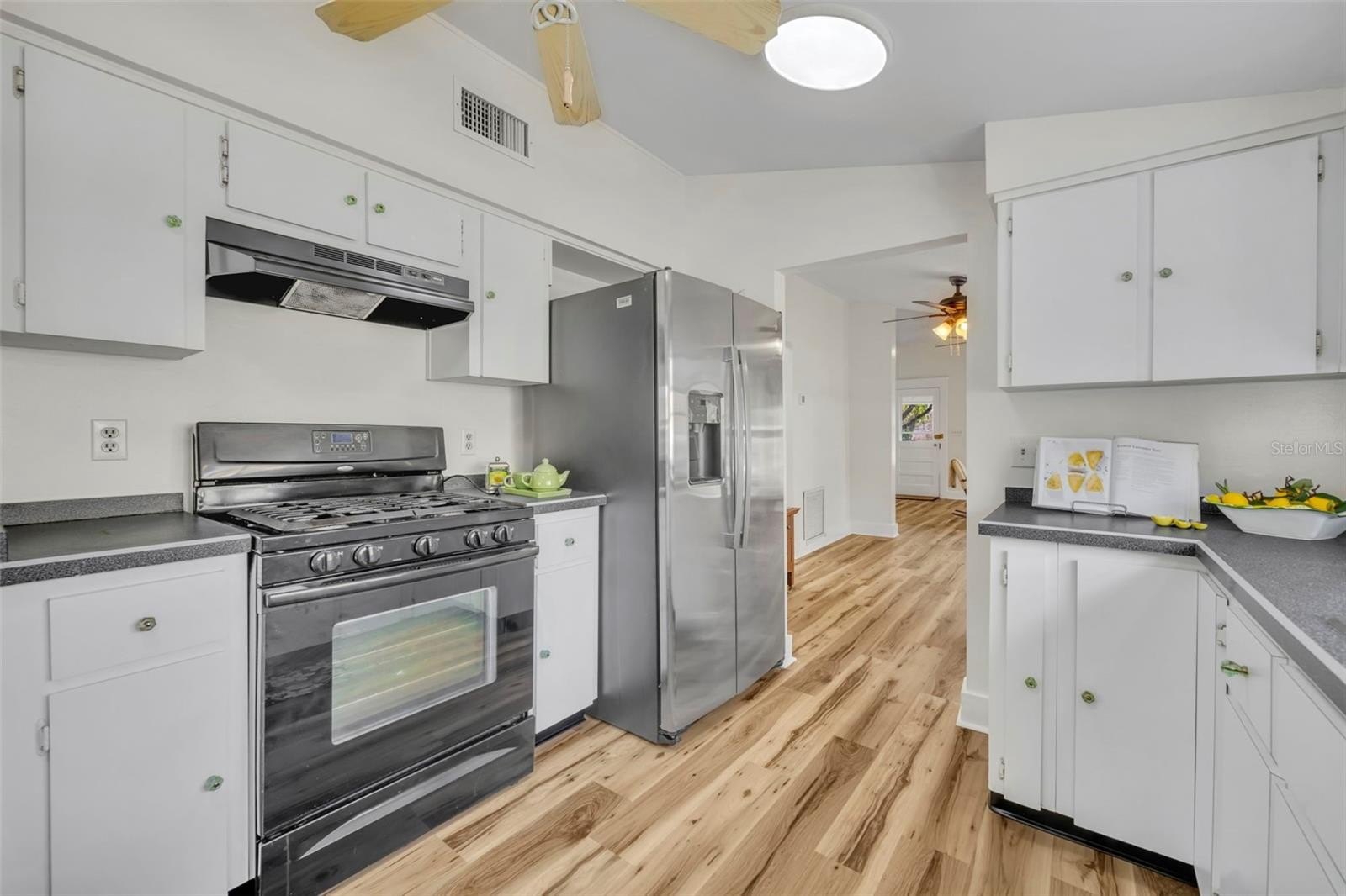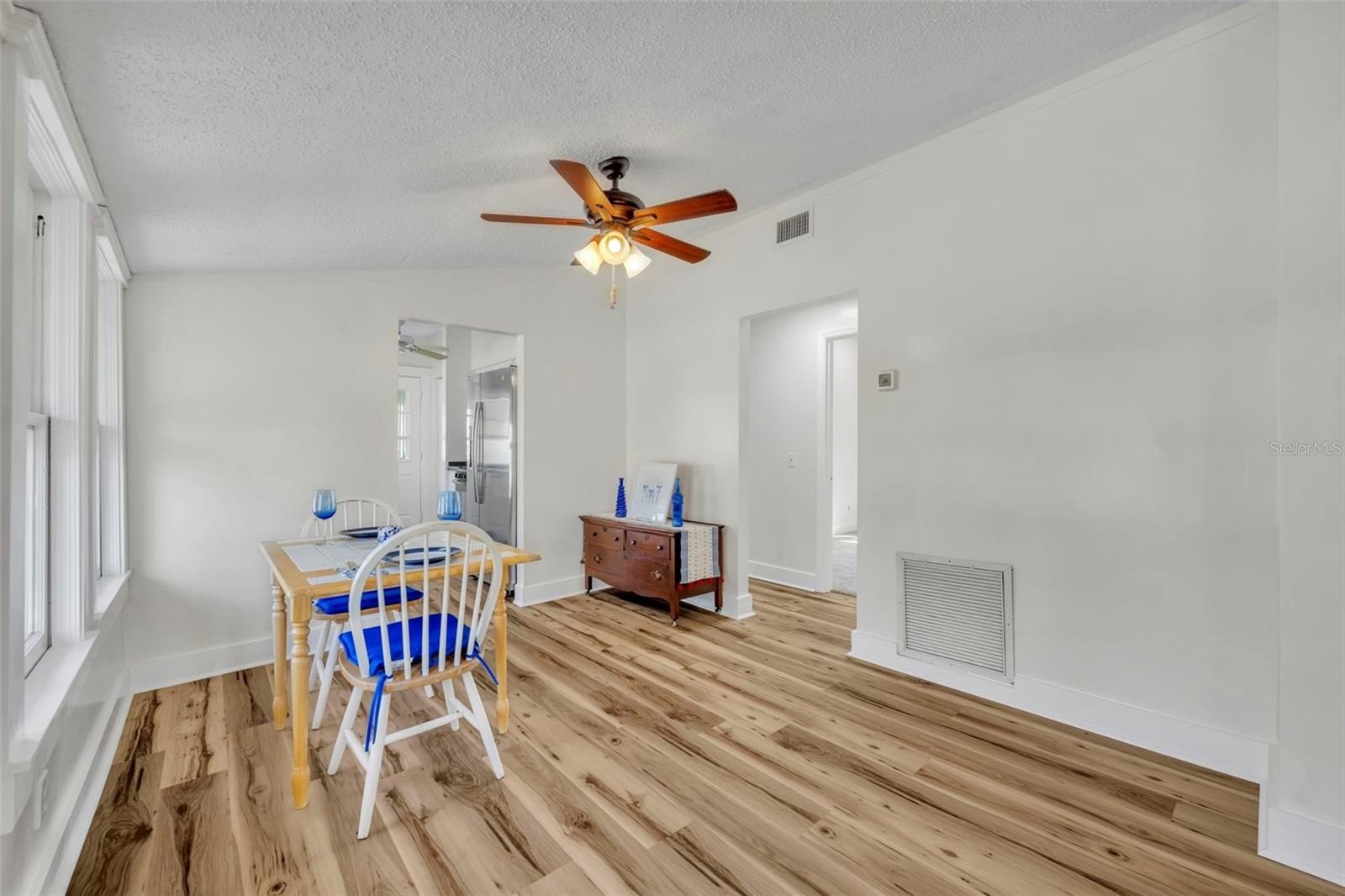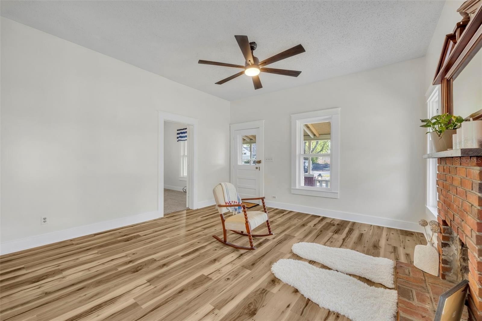 One of the true highlights of this property is the inviting front porch and the more private rear porch, both perfect for relaxing, entertaining, or enjoying peaceful Florida evenings. Inside, the home blends historic charm with thoughtful updates including all new flooring, fresh interior and exterior paint, upgraded kitchen, new light fixtures, new ceiling fans, and new toilets. The cozy gas fireplace adds warmth and character to the living space, while the tankless water heater provides modern convenience.