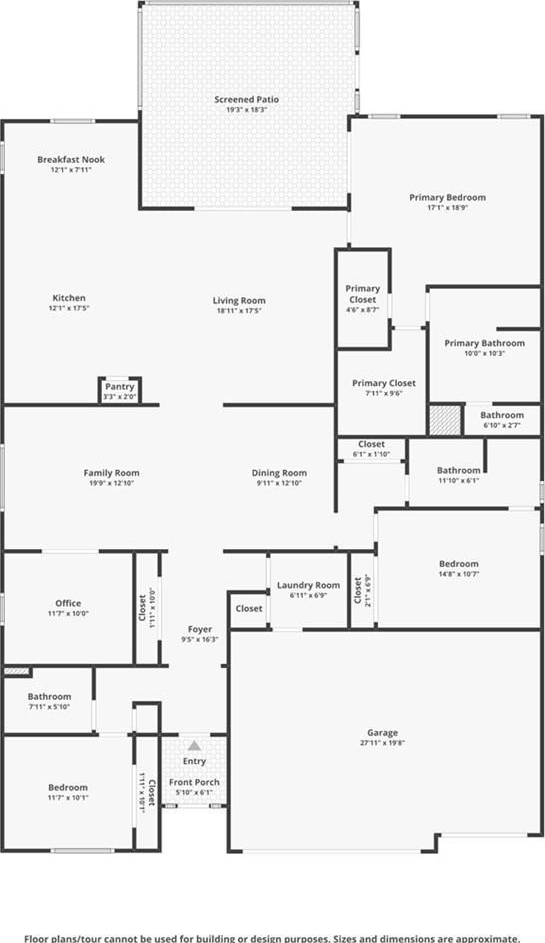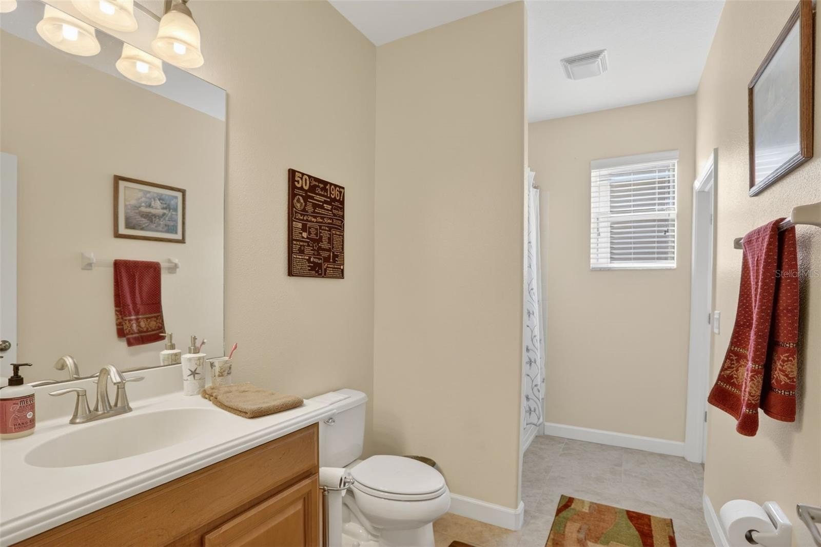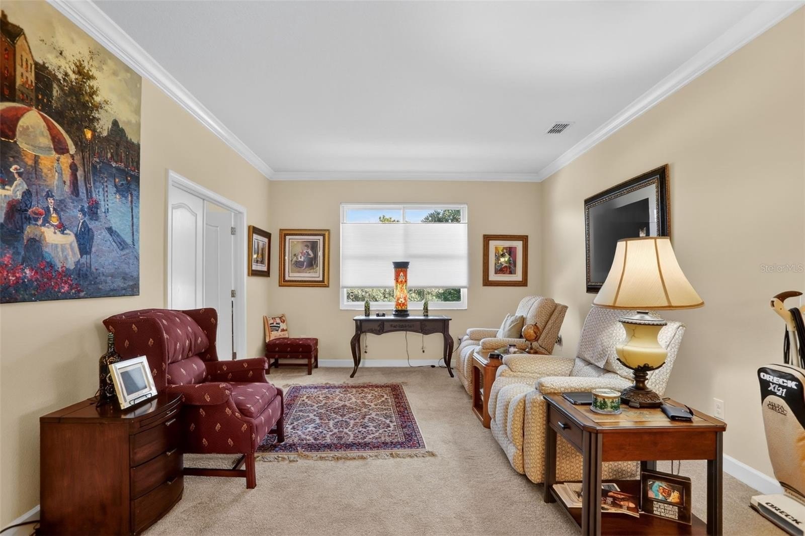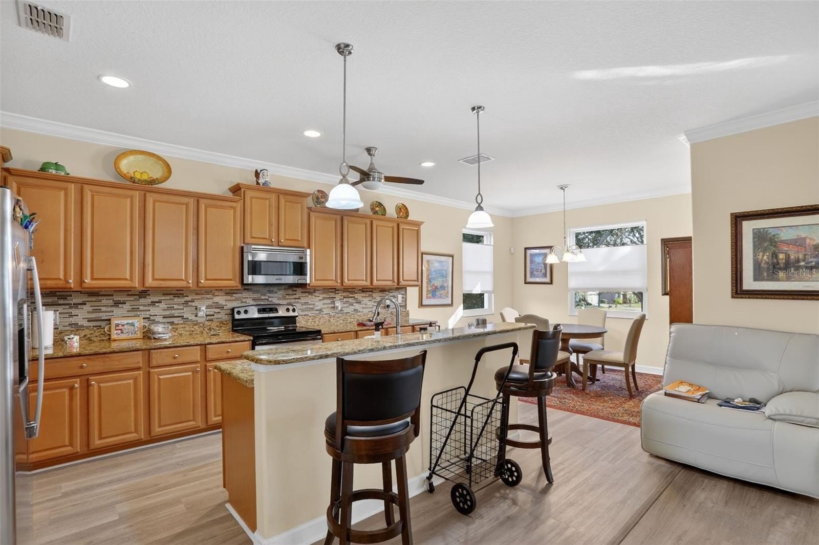 and office, three full baths. Large closet pantry in hall. This stunning property is located in an active lifestyle 55+ neighborhood. This home shows very well. Baths have grab bars. Master bath has a walk in tub and separate shower. His and hers closets (9 X 8 and 9 X 5) in the master bedroom, larger closet has built-ins. Rear patio 18 X 20 has a portion that is covered and a portion that is screened, patio has and a firepit, and paver flooring. Patio furniture and firepit stay. Seven ceiling fans. HOA dues include exterior painting, lawn care, tree trimming, internet and cable TV service. A walking trail five miles around the community.