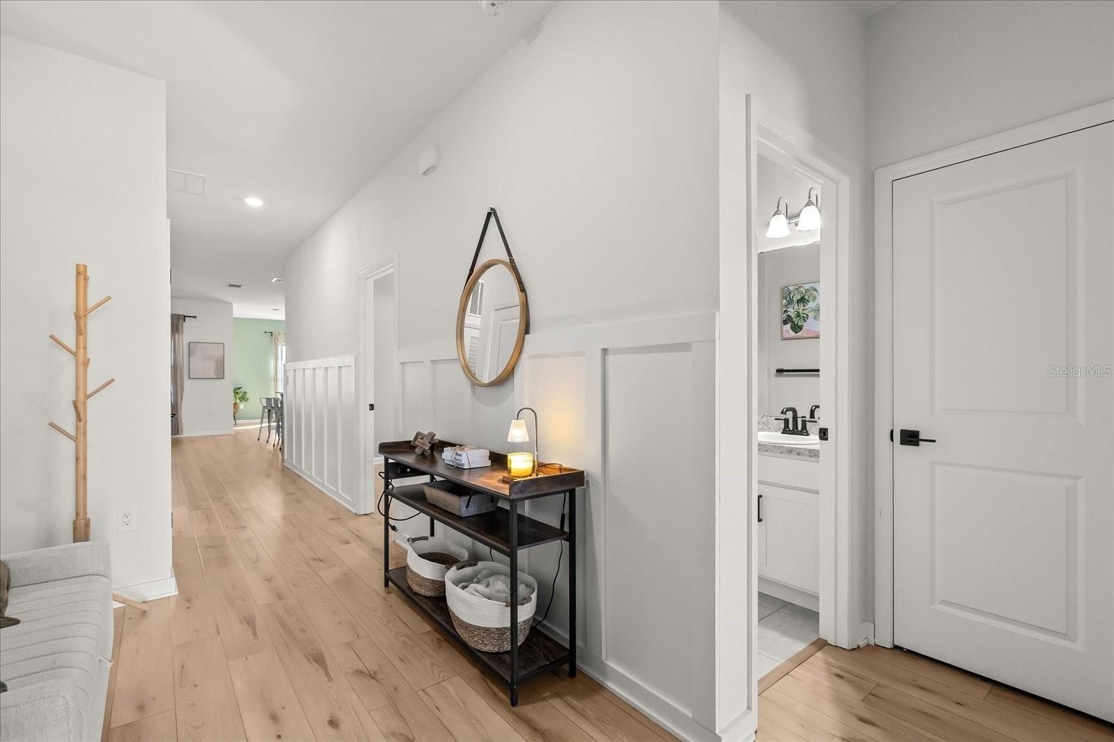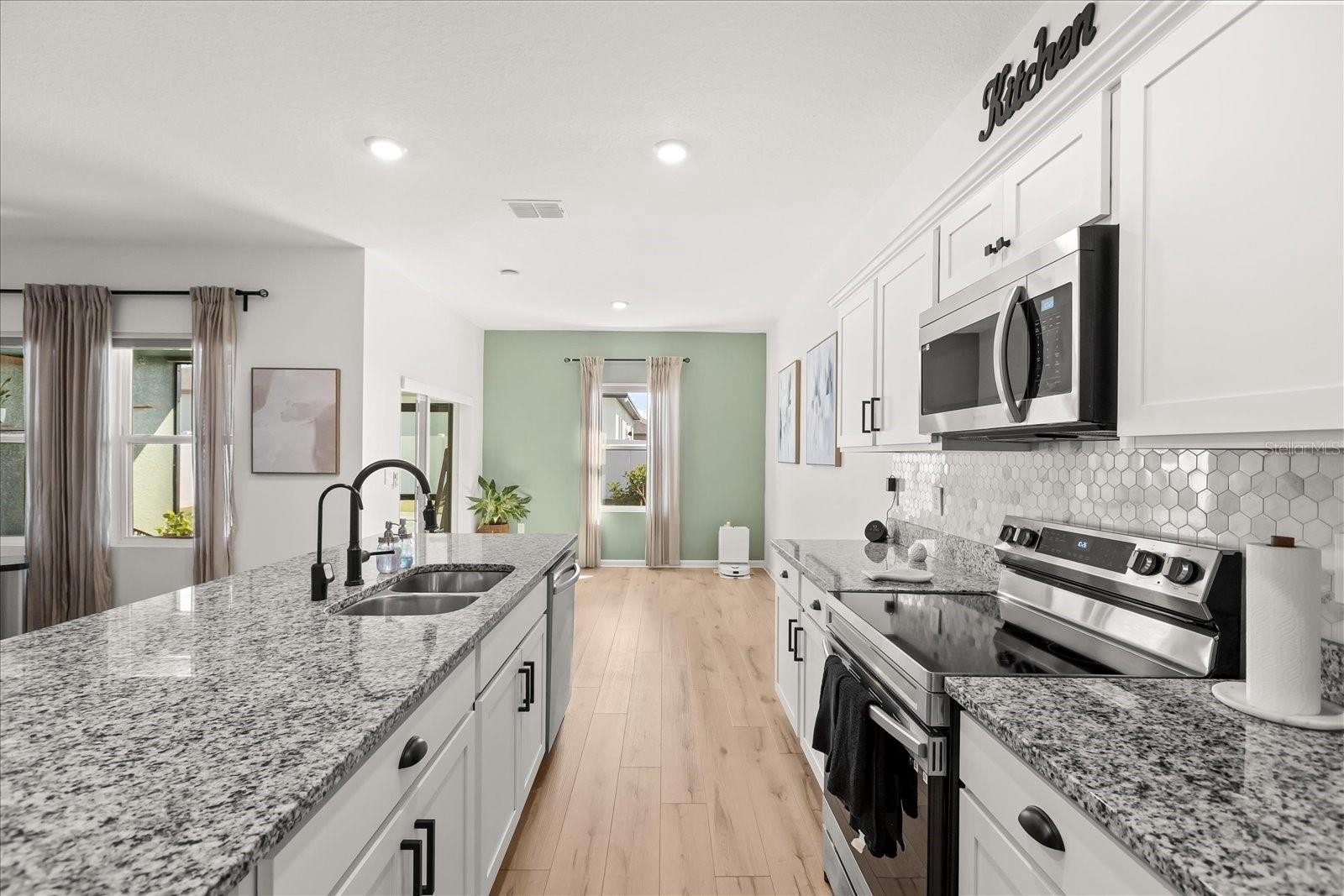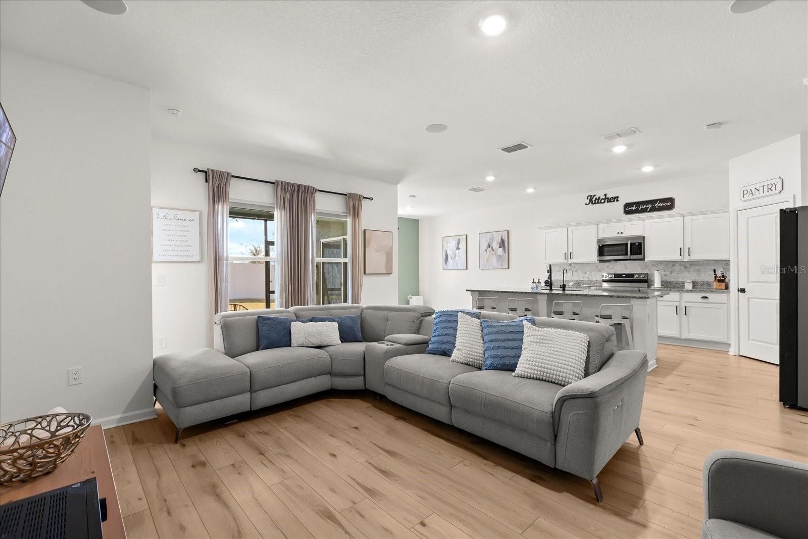 Step inside to an inviting open-concept layout with a split floor plan that provides both functionality and privacy. Luxury vinyl flooring flows seamlessly throughout the entire home, enhancing its modern appeal and easy maintenance. The spacious living room is pre-wired with surround sound, making it ideal for entertaining or enjoying cozy nights in. The open kitchen and living areas create the perfect setting for gatherings, while the two-car garage adds convenience and extra storage.