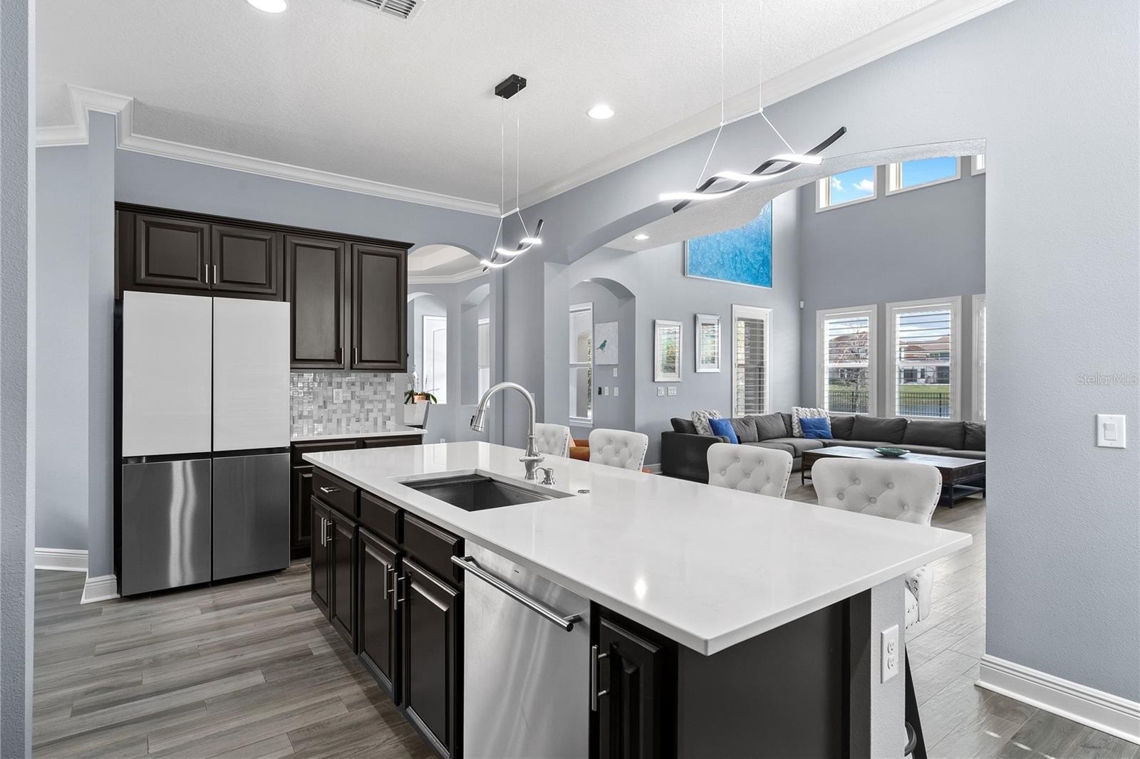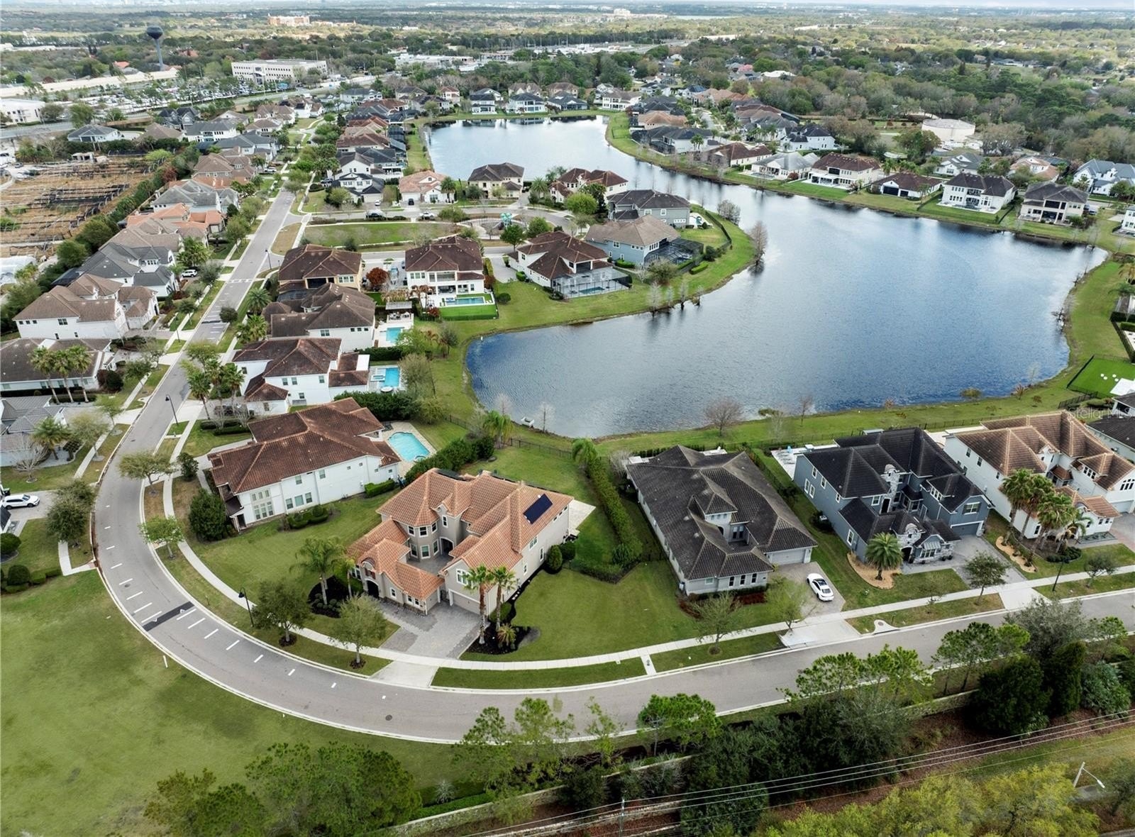 Located in the gated community of Havencrest in Orlando, this courtyard-style home offers privacy, space and scenic pond views with no rear neighbors. Positioned on one of the community's premier lots, the property overlooks a peaceful water setting that creates a tranquil backdrop for everyday living. Inside, the home features soaring ceilings, expansive windows and abundant natural light throughout. The thoughtfully designed floor plan offers five bedrooms, a dedicated home officer and a private in-law suite providing flexibility for guests or multi-generational living. The primary suite is conveniently located on the first floor and offers a spacious retreat with views of the outdoor living area. Upstairs you will find additional bedrooms, a balcony overlooking the pond and a media room that is perfect for movie nights, game days or entertaining. The courtyard style layout creates a seamless connection between indoor and outdoor living spaces. The private outdoor area, providing plenty of room to relax, entertain, or enjoy the peaceful water views and added privacy of having no rear neighbors. The home features a Tesla solar system with battery backup, offering improved energy efficiency and added power reliability. Havencrest is one of the few communities in the area with natural gas service, providing additional convenience and efficiency for homeowners. Ideally located near Windermere and the highly desired Dr. Phillips area, tis hone offers convenient access to the popular Restaurant Row along Sand Lake Road, known for its wide variety of dining, entertainment, and nightlife options. Residents enjoy close proximity to shopping centers, grocery stores, golf courses and everyday conveniences while still being tucked away inside a private community. The location also provides easy access to major highways including I-4, the Florida Turnpike, State Road 408 and 429 making commuting throughout Central Florida simple. Downtown Orlando, the area theme parks and Orlando International Airport are all within a short drive. This home offers a rare combination of privacy, functionality, energy efficiency and an ideal Central Florida location within a gated community setting.