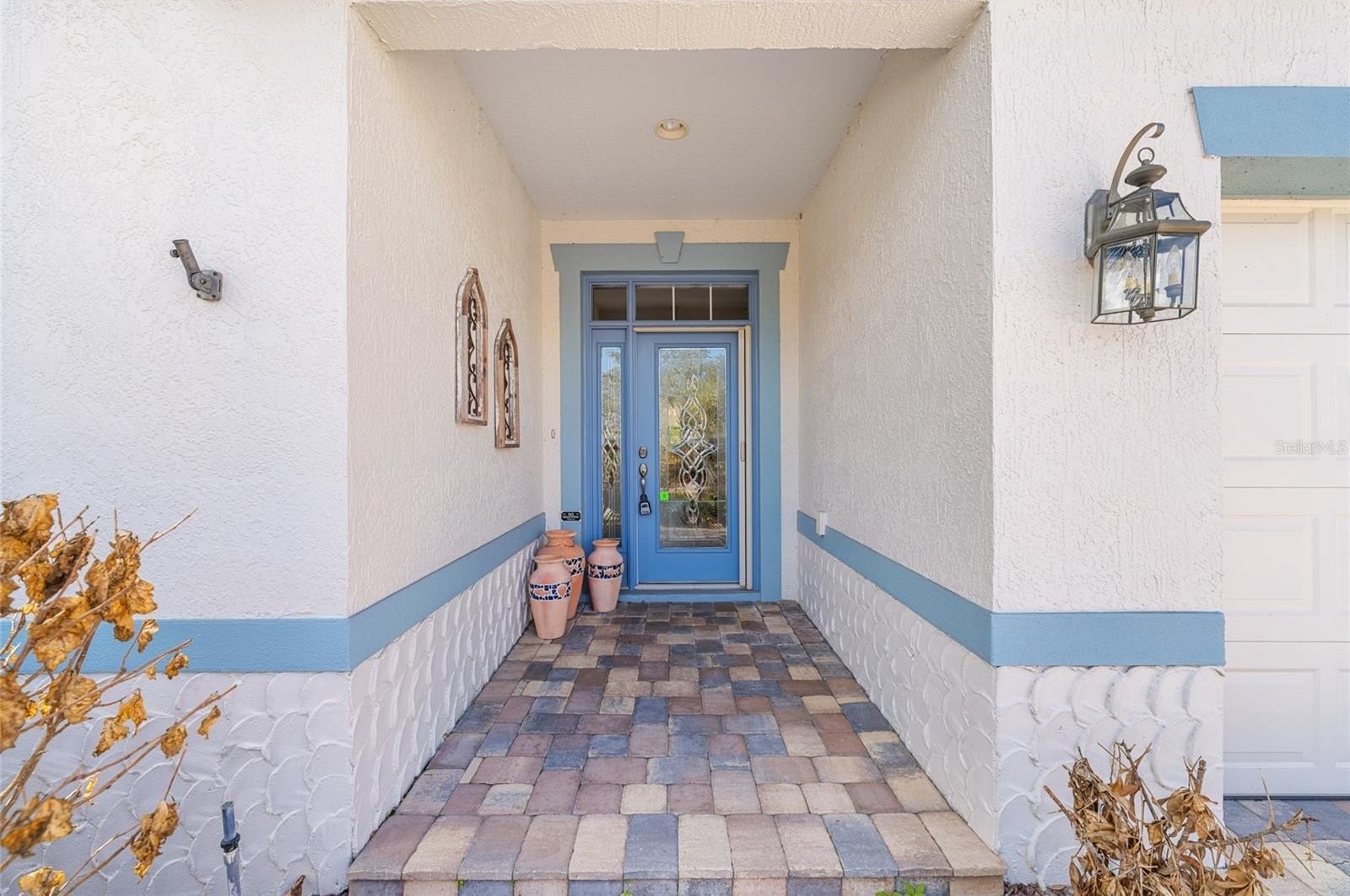 This updated Bridgeport Designer home with a golf cart garage is nestled on a quiet cul-de-sac in the VILLAGE OF BONNYBROOK, so close to everything The Villages! The home features three bedrooms, two full bathrooms, and a powder room conveniently located off the grand foyer. The entry showcases a beautiful, beveled glass front door with matching side light, welcoming you from the attractive paver driveway, sidewalk, and front porch. Upon entering, you'll enjoy a clear view straight through to the back of the house. In this split bedroom layout, two guest rooms at the front are connected by a Jack & Jill bathroom. The expansive living/great room includes a solar tube for natural light, while the dining room offers a tray ceiling. The generous kitchen is equipped with abundant cabinetry, and island and granite countertops. Adjacent to the kitchen, you'll find the Florida Room through French doors, which features paver stone flooring, acrylic windows, and a vaulted ceiling, plus a door leading out to the backyard. Off the dining room is a screened lanai, perfect for unwinding. The primary bedroom boasts double-door entry, engineered hardwood floors, a two-foot bump out and tray ceiling, and an elegant ensuite with dual vanities topped with granite, a dedicated makeup station, a spacious walk-in closet, and a Roman shower. There is a Tankless water heater, the Roof was replaced in 2022, the HVAC was replaced in 2015 and has been meticulously maintained. The seller is providing a 1-Year Broward Factory Service Home Warranty. This home is easy to show! Call now to schedule your visit to this beautiful home! ***Some photos have been virtually staged.***