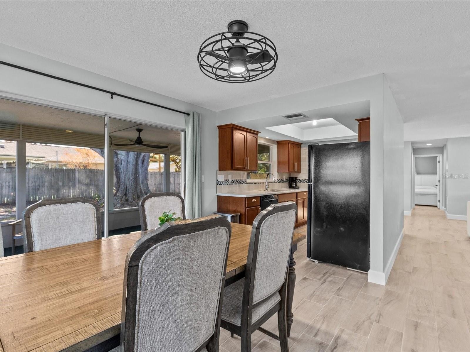 Thoughtfully renovated in 2025, the home showcases fully remodeled bathrooms, continuous tile flooring throughout, fresh interior and exterior paint with curated accent walls, new baseboards, updated dark designer lighting, and added recessed lighting to enhance warmth and ambiance. Major improvements include impact-conscious window replacements (2014) and newly refreshed landscaping with fresh mulch (2026), creating polished curb appeal from the moment you arrive.