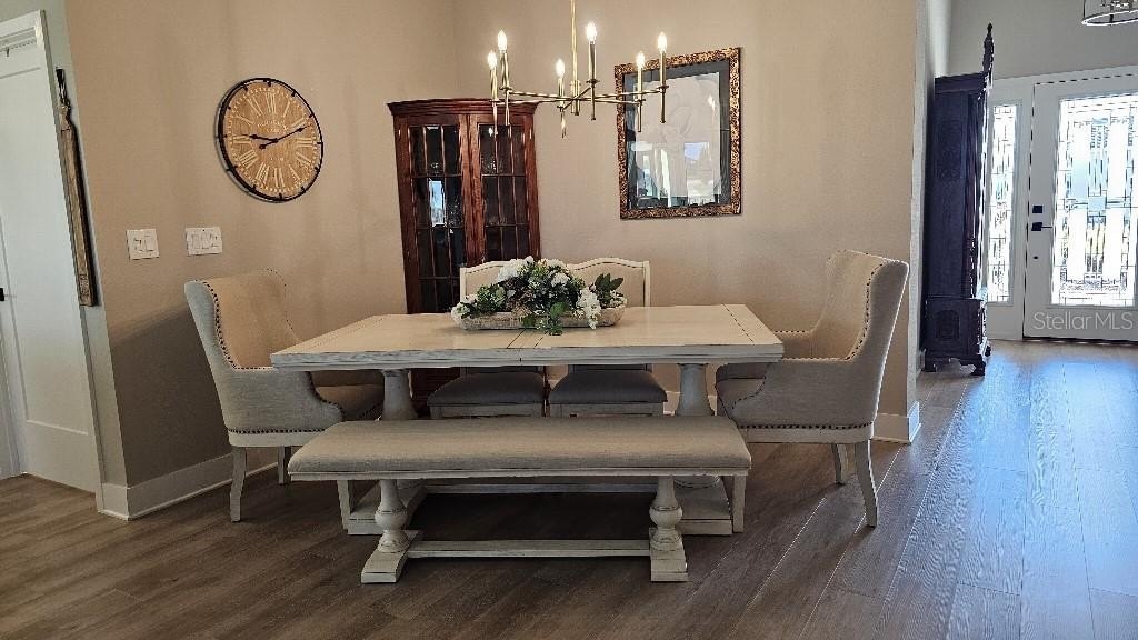 Golf Course View! Don't miss out on this gorgeous Veranda (3 Bed, 3 Bath) - Isabella with 2 primary suites with 3 full bathrooms. Located in The Village of Moultrie Creek, convenient to Middleton and 1.5 miles from the new Eastport Down Town. This beautiful home greets you with enhanced landscaping, glass entry door & sidelights & grand foyer. Champagne Gold fixtures throughout the home. Luxury Vinyl Plank throughout the entire home - No carpet. You will love the large island kitchen with storage cabinets, roll out trays, a pantry cabinet, all accented with quartz counters & stainless-steel appliances. Updated Induction Range. The primary suite has a tray ceiling, dual sinks, a custom closet & a tiled walk-in Roman shower. The front guest wing boasts a pocket door for privacy & features a tiled step-in shower & a walk-in closet. The 3rd bedroom also has a separate guest bath with a tub/shower combo. The 2 car plus golf car garage floor is epoxied & includes a whole home water filtration. The garage has storage container built inns. The fenced backyard is perfect for those pet lovers & even has room for a large pool. This is a great home in a great location.