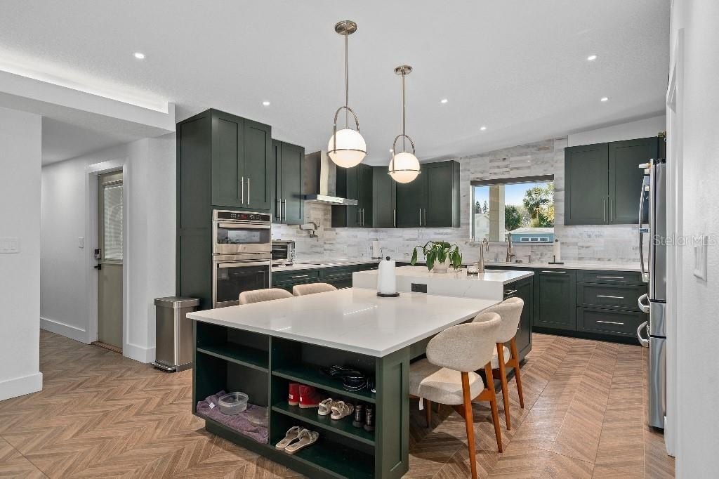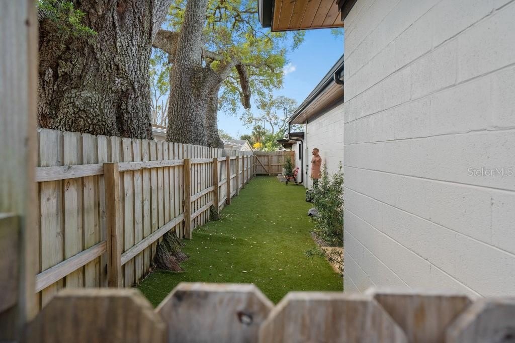 Step outside and discover a true backyard oasis designed for Florida living. The fully fenced yard features a saltwater pool with spa and sun shelf, multiple covered seating areas with beautiful Synergy wood ceilings, and a newly installed outdoor summer kitchen perfect for entertaining. The entire backyard has been professionally turfed with premium artificial grass, creating a lush, low-maintenance landscape that stays green year-round.