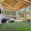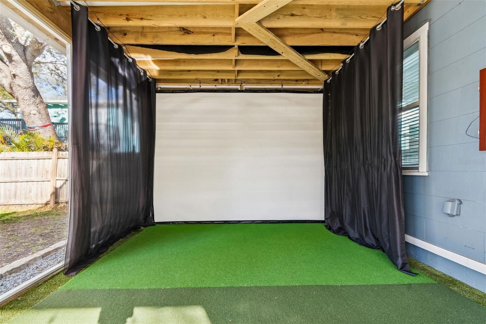 Outdoor space is amazing and a true highlight of this beautiful home with a 24 x 14 balcony (2024) featuring a waterproof system that creates a fully covered 11 ft tall, screened enclosure below (2026). Covered area includes a built-in golf simulator setup (impact screen, turf, padding, side curtains, and power ready for a projector). 10 x 10 storage shed, Ring camera with 5 cameras and 2 security lights.
