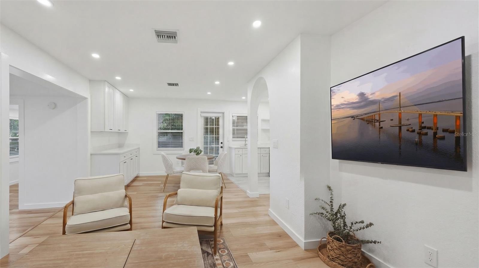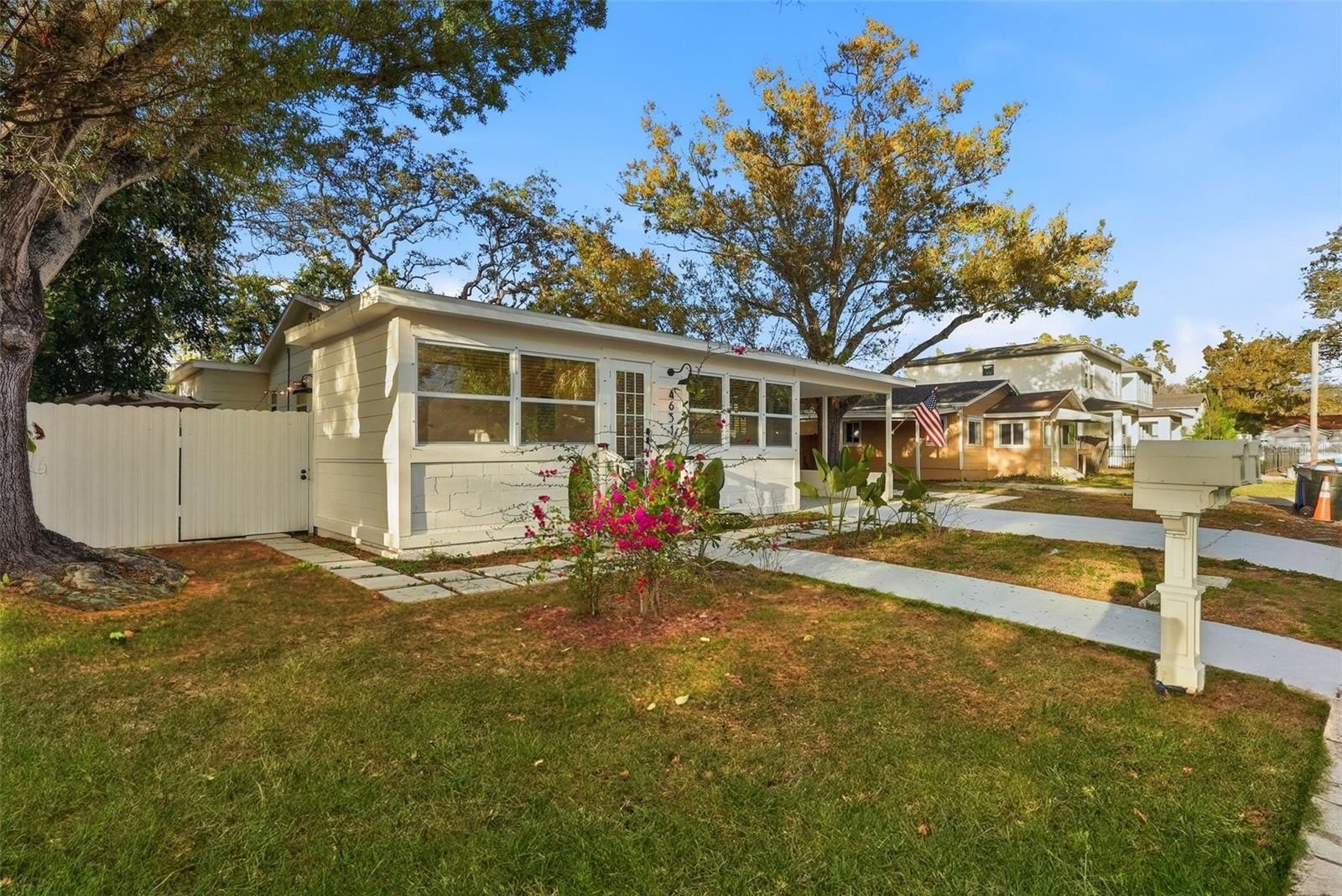 This RARE St. Pete DUPLEX screams QUALITY!!! Property offers a precisely remodeled 1950s, 3 bed, 2 bath home, and a new, custom-built, detached tiny house on a single lot. Located just minutes from Gulfport Beach, and Twin Brooks golf course, the property features two separate addresses with independent power and water meters, separate driveways, making it an ideal setup for a primary residence with a high-quality rental or a multi-generational living arrangement under separate roofs. The main house was fully remodeled between 2023 and 2026, including a full electrical rewire, completely new underground plumbing, HVAC, and a new roof. The custom-built 468-square-foot ADU features 10-foot ceilings and 8-foot French doors that showcase the lush, mature landscaping and 100-year oak trees residents can enjoy. Large window in the custom shower overlooks private oasis resembling the resort / SPA living. High-end finishes like polished concrete floors, massive windows, or custom fixtures ensure the space feels premium without any "builder-grade" shortcuts. Practical benefits include low utility bills, alley access, separate FULLY FENCED yards. Duke Energy is currently moving the electricity lines underground. This is a turnkey, 2-unit property built with longevity and quality in mind. NO HOA, NO FLOODING!