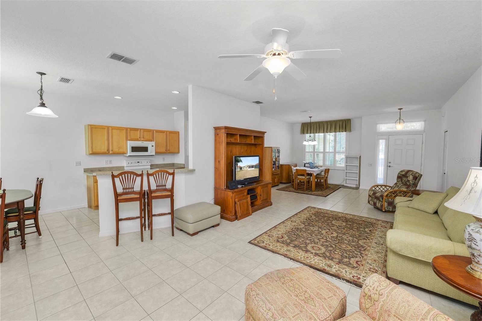 The open-concept living area creates a seamless flow between the kitchen, dining, and living spaces—perfect for entertaining or relaxing at home. Natural light fills the interior, while the layout makes everyday living effortless.