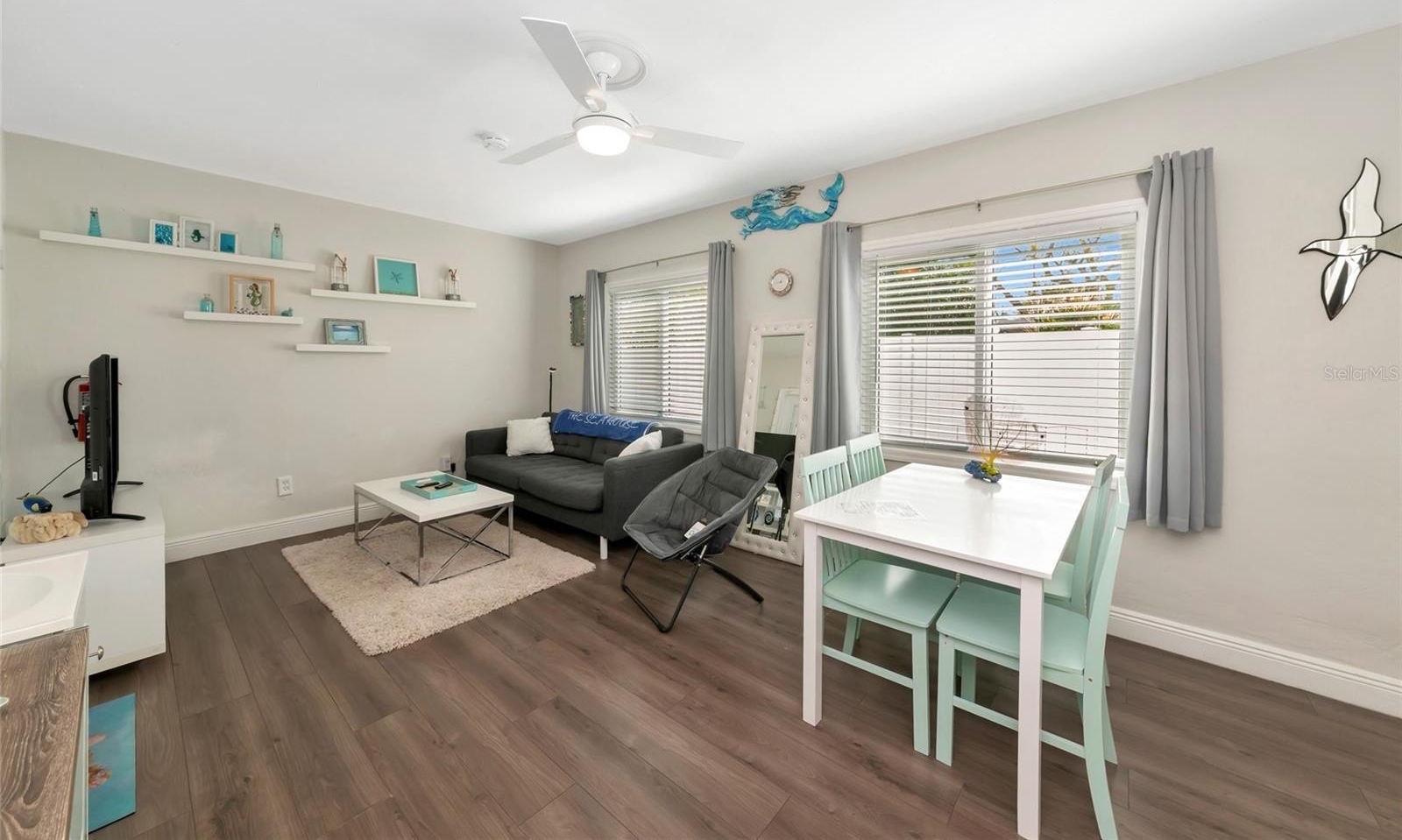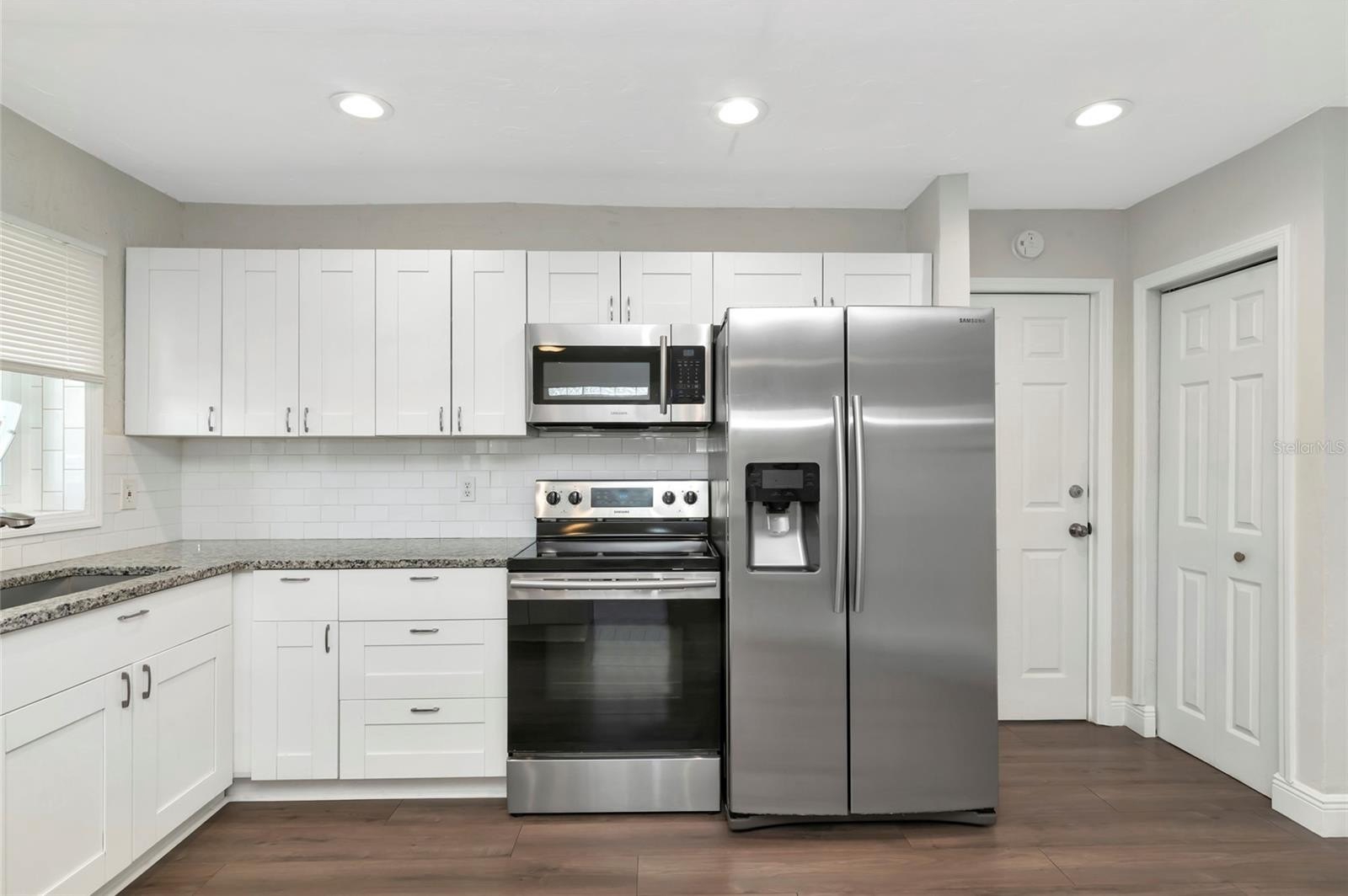 The home has been thoughtfully updated and is move-in ready, with improvements that include a new roof, new A/C, impact windows, and an updated kitchen featuring wood cabinetry, granite countertops, and stainless steel appliances.