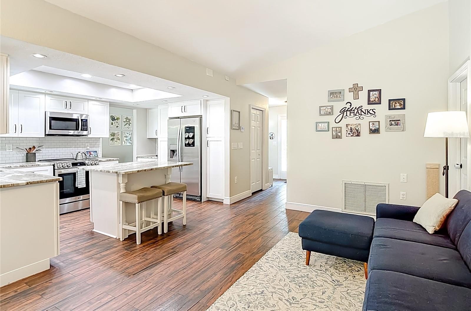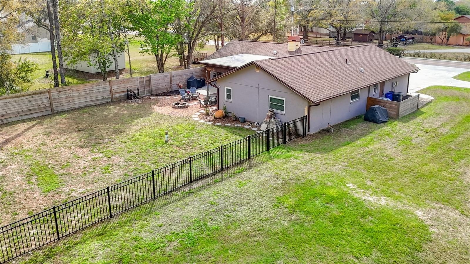 Tucked away on 1.12 acres backing to peaceful conservation, this beautifully remodeled Tampa property offers the rare combination of modern comfort, privacy, and the freedom of agricultural zoning with horses allowed. For buyers searching for Tampa homes with acreage, homes with land in Tampa, or a Tampa horse property, opportunities like this are increasingly difficult to find. The 3 bedroom, 2 bath home offers nearly 1,700 square feet of living space and a two-car garage, with a thoughtfully remodeled interior that blends contemporary style with warm, inviting spaces. Inside, wood-look tile flooring flows throughout the main living areas, while flexible carpet tile in the bedrooms adds comfort and versatility. The living room features a cozy stone fireplace, creating a warm focal point and the perfect place to unwind on cooler evenings or gather with family and friends. The updated kitchen serves as the heart of the home, featuring granite countertops, white cabinetry, stainless steel appliances, a newer induction stove/oven range, and a counter-height island and bar ideal for casual dining or conversation while cooking. A split bedroom floor plan provides privacy for the primary suite, where a barn door opens to a beautifully remodeled bath with an oversized walk-in shower, built-in seating, and modern tile surround. Secondary bedrooms are generous in size, and the guest bathroom has also been recently renovated with new flooring, vanity, and a tub with updated tile surround. Multiple living areas including a living room, family room, dining room, and breakfast area provide flexibility for entertaining, relaxing, or working from home. Sliding glass doors lead to the covered patio overlooking the fenced backyard, while an extended open patio creates the perfect setting for outdoor dining, grilling, and evenings gathered around the fire pit under the open sky. Beyond the fenced yard, additional open acreage provides space for future projects such as a barn, workshop, garden, or expanded outdoor living area, along with plenty of room for boat, RV, and recreational vehicle parking. The lot size makes the property ideal for buyers seeking homes with land in Tampa where outdoor hobbies, animals, and equipment can be comfortably accommodated. The layout of the property provides a fenced backyard for pets while still leaving a large open side yard with excellent potential for a future barn, workshop, garden, or additional outdoor projects. Backing to beautiful conservation, the property enjoys a natural backdrop that enhances privacy and tranquility while still being convenient to the amenities of Tampa. Major Recent Upgrades• Impact double-pane windows (2024)• New septic drain field (2024)• New driveway• New garage door• AC replaced in 2021• Roof replaced in 2017• New flat roof section (2025)With 1.12 acres, agricultural zoning, and horses permitted, this property offers the flexibility buyers look for in a Tampa horse property or acreage home, while still being convenient to shopping, dining, and major commuter routes. Located within a highly rated school district, this is a rare opportunity to own a remodeled Tampa home with land, privacy, and conservation views.