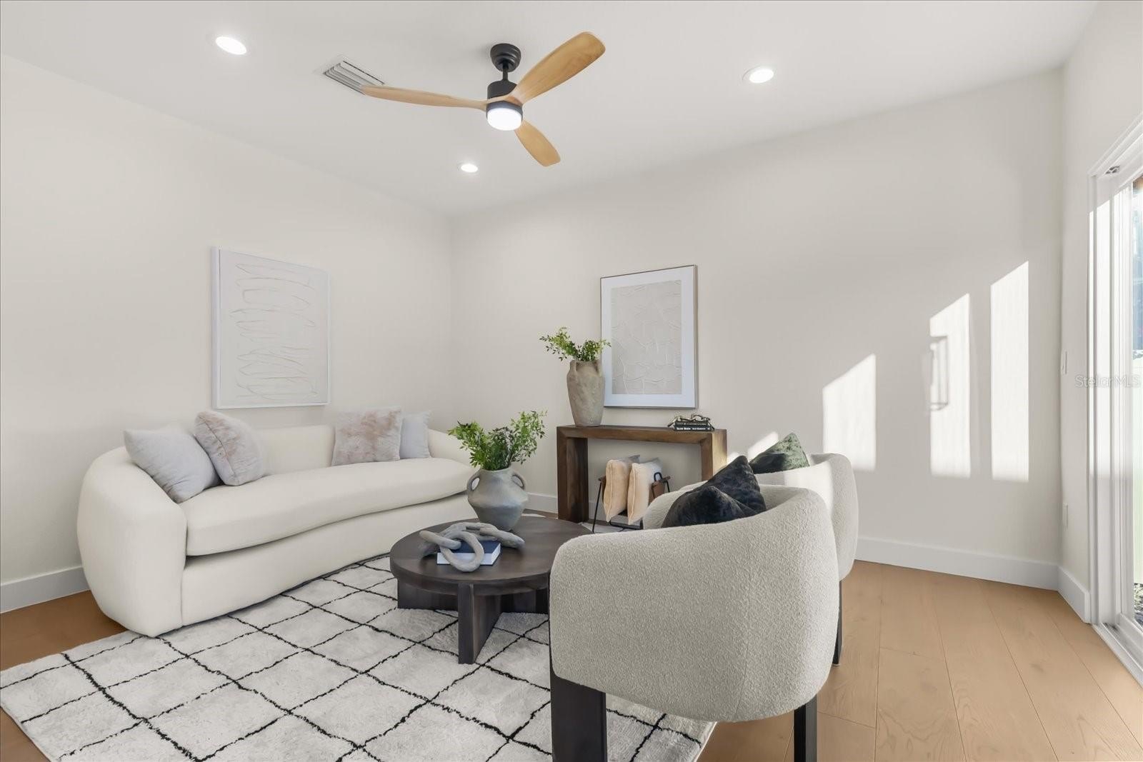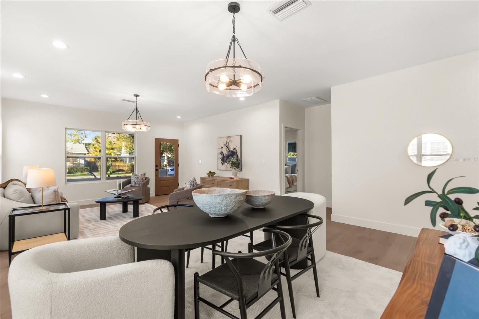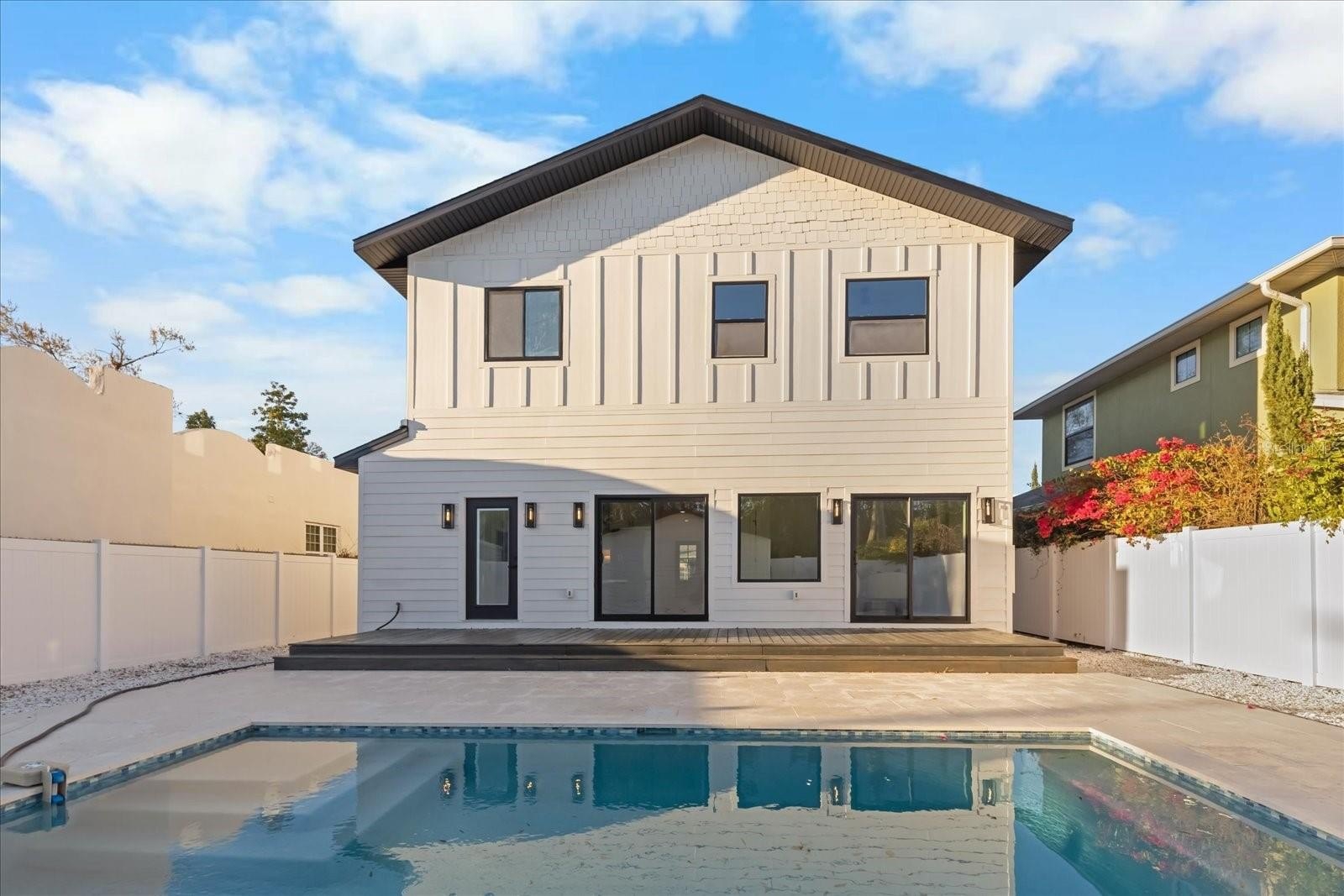 In the beloved St Pete neighborhood of Historic Kenwood, this is custom-reimagined POOL home has been refined with modern luxury and sleek finishes. High and dry non-flood zone, this home checks all the boxes. This home offers 4 bedrooms plus a flex loft space, 4 bathrooms, and over 2600 square feet of beautifully curated living space. Honey toned oak engineered hardwood floors span throughout the home carrying the warmth throughout. The main level features a first-floor bedroom ideal for guests or a home office. The modern kitchen showcases custom cabinetry, tile backsplash, high end appliances and stone countertops. Multiple living spaces downstairs give ample space for hosting. Upstairs, a versatile loft leads to two additional bedrooms and the primary suite. Featuring a walk-in closet, dual vanities and a walk-in tiled shower. An additional two guest bedrooms, two full guest baths, and dedicated laundry room complete the second level. Outdoors, the jewel of this home is the zero scape backyard with in ground pool. A separate two-car garage accessed via the rear alley gives room for kayaks, storage, parking and bikes. Perfectly situated just minutes from Central Avenue, the Warehouse Arts District, Downtown St. Petersburg, and the area’s renowned St. Pete Beach. Schedule your tour today!
