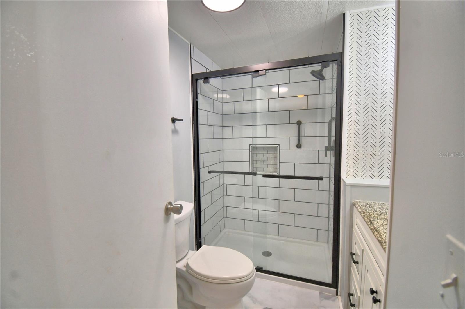 Both bathrooms have been tastefully remodeled with subway tile showers, modern glass doors, and granite-topped vanities, giving them a fresh, spa-inspired look. The home also includes an indoor laundry room, and the washer and dryer—just one year old—will convey with the sale.