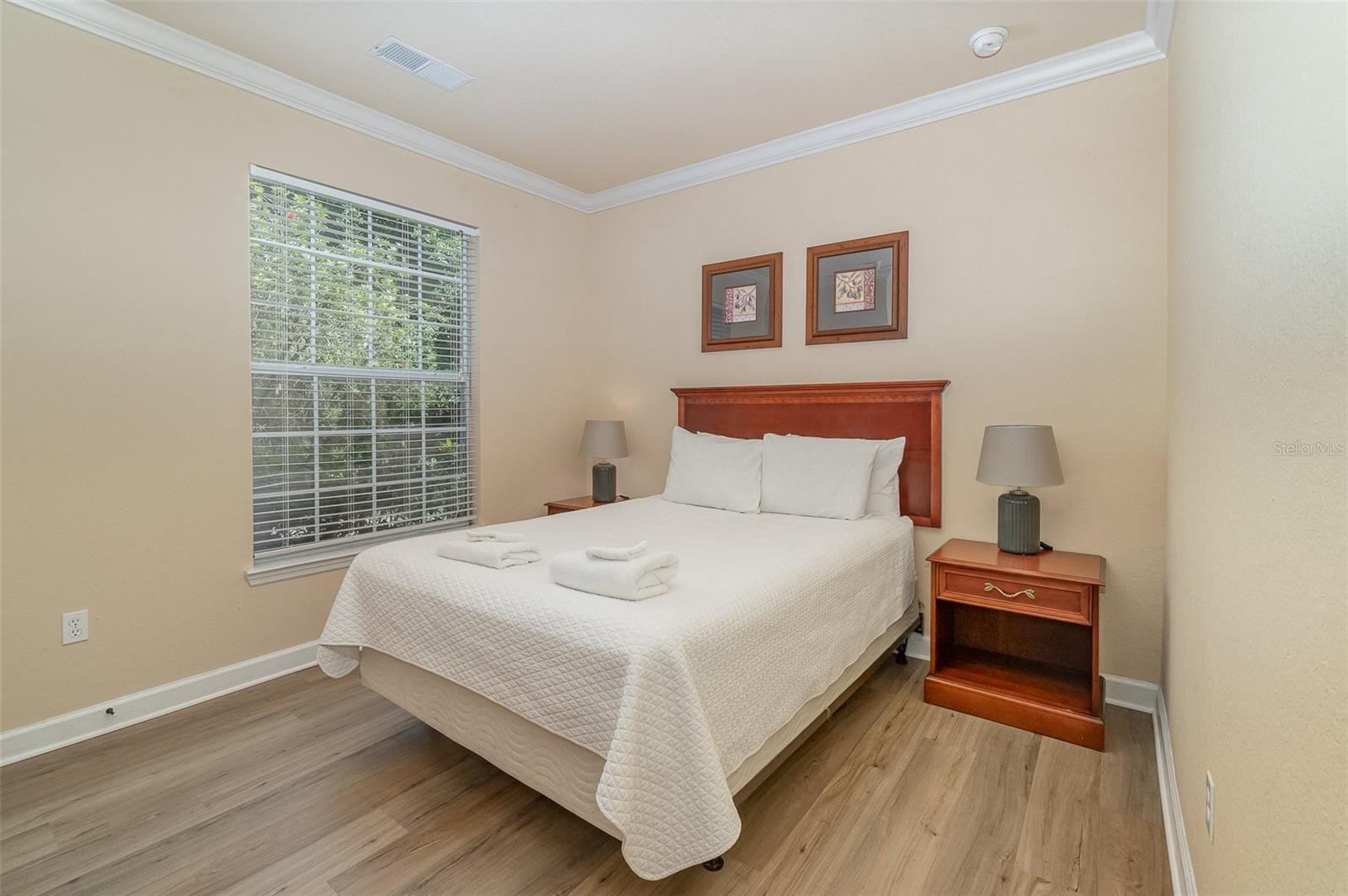 Experience luxury living in a tranquil setting with this upgraded 3-bedroom, 2-bathroom condominium located in Tuscana Resort. Nestled on the first floor, this fully furnished unit offers easy access and a layout that caters to both comfort and convenience. Distinguished by granite countertops in the kitchen, you will be struck by the tasteful design elements throughout this home. The south-facing patio is screened for privacy, creating an inviting space where you can enjoy serene views of quiet woodland scenery away from hustle and noise of I4 freeway. This ensures total peace and solitude as you unwind after a long day. Located toward the back of this gated community, there is less traffic and more tranquility on offer here against a backdrop suburban charm. You also have access to wide range of amenities including clubhouse without having to compromise on your peaceful living experience. This delightful property offers an inviting welcome from the moment you step through the front door where you're greeted by a charming foyer that flows seamlessly into an open floor plan. The heart of this home is unquestionably its kitchen, adorned with exquisite granite countertops and classy wood cabinets. Aesthetically pleasing and practical, it enhances your cooking experience while adding significant value to the living space. The living area and bedrooms gleam with beautiful new high-end vinyl wood flooring updated in 2022, a testament to effective maintenance and thoughtful upgrades made over time. Picture yourself relaxing on a south-facing screened-in patio or comfortably settled inside regardless of weather thanks to a newer 2.5-ton A/C unit installed in Dec of 2021 that strictly maintains optimal indoor temperatures. Additional upgrades include: 2024: New range. In 2023: Partial furniture replacement has been undertaken for keeping everything fresh. In May 2017: New blinds have been added; In Oct 2018: Experience entertainment at its prime with a flat-screen TV. In 2019: Refrigerator and TV console and other updates continue enhancing quality lifestyle for inhabitants here. The HOA provides a plethora of services which are covered in your fees. These include water, cable, waste management, internet, pest control and insurance for the communal areas and buildings so residents can live stress-free. The HOA also handles all maintenance duties for on-site amenities such as our fantastic pool, state-of-the-art fitness centre, 30-seat movie theatre, well-kept grounds plus an on-site bar and restaurant for socializing or when you just don't feel like cooking. A stone-throw away from multiple major highways, provide convenient connectivity to these globally recognized theme parks like Disney, Universal and Sea World. In addition, shopping only minutes from your condo! The potential for constant entertainment is endless when most sought-after vacation destinations form part of your neighborhood essentially. Just a short drive away are excellent shopping destinations including top retailers and boutique stores, perfect for weekend shopping sprees or picking up everyday essentials with ease. Dining out, you'll be spoilt for choice by the wide array of restaurants in proximity and daily conveniences like supermarkets, pharmacies, fast food and banks further add to comfortable living. Please note, all room, home, and lot sizes provided are estimated. Exact measurements, HOA fees and requirements should be confirmed by the buyer or buyers' agent.