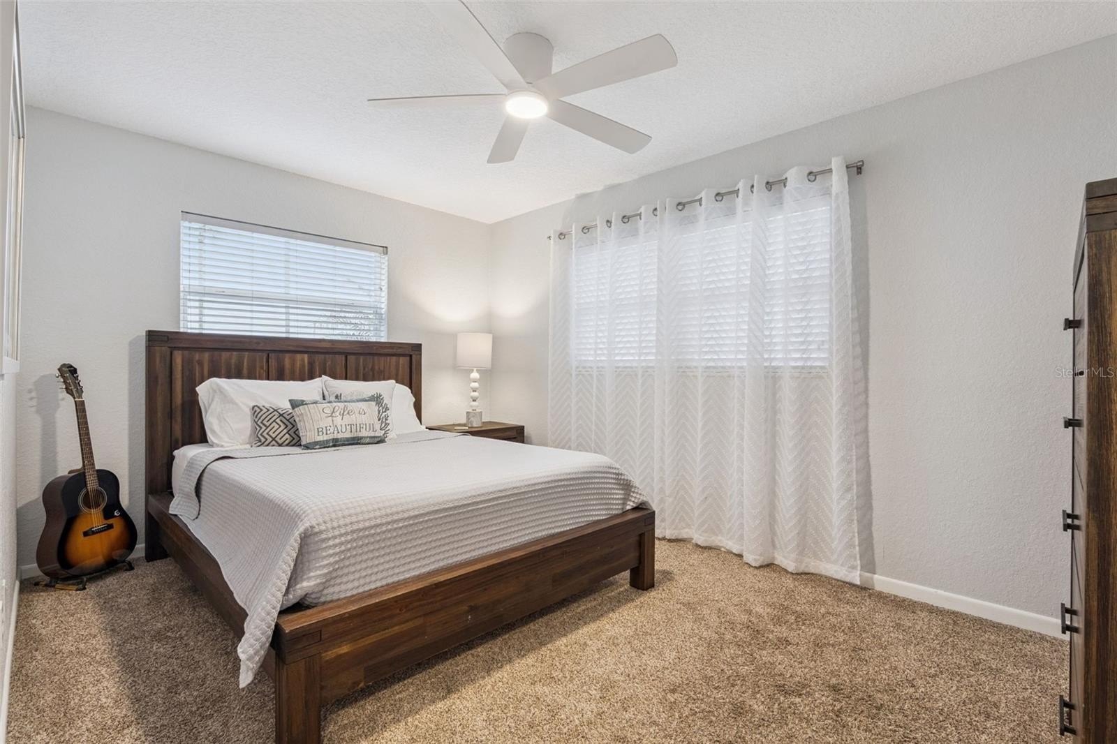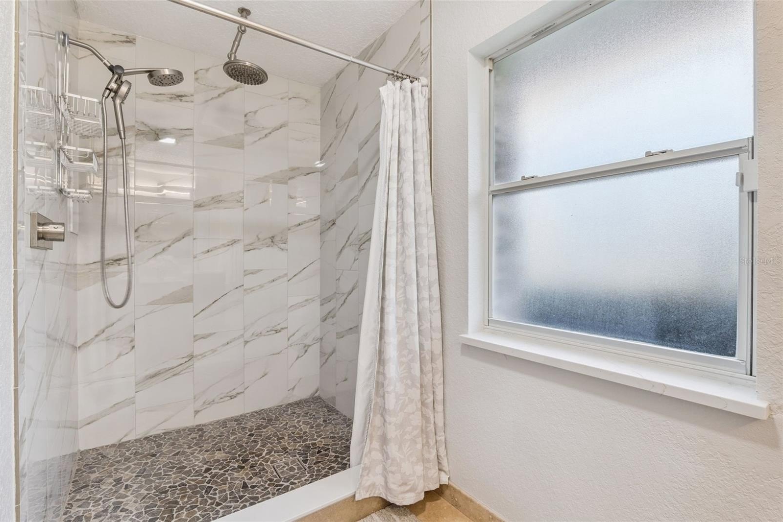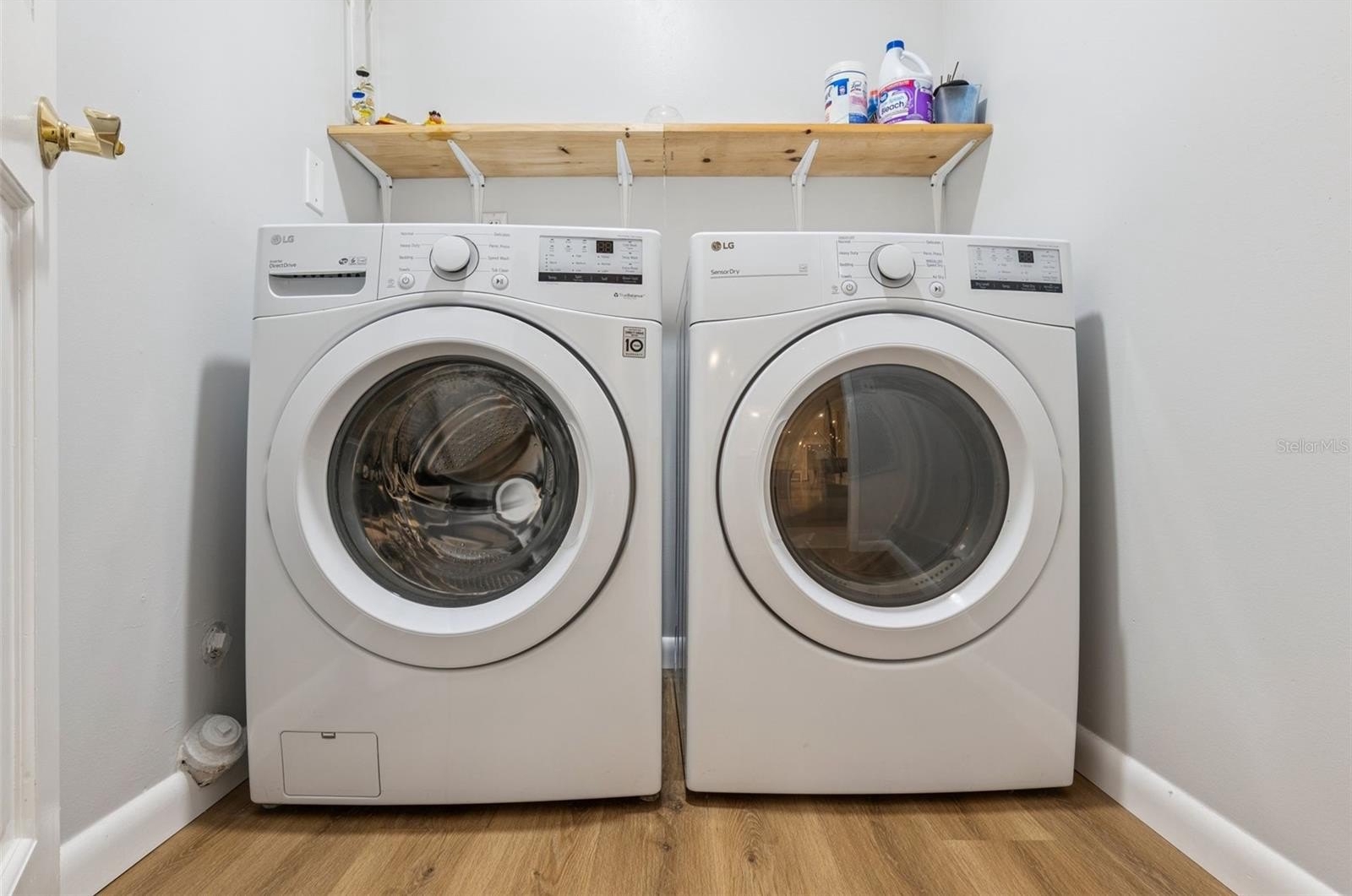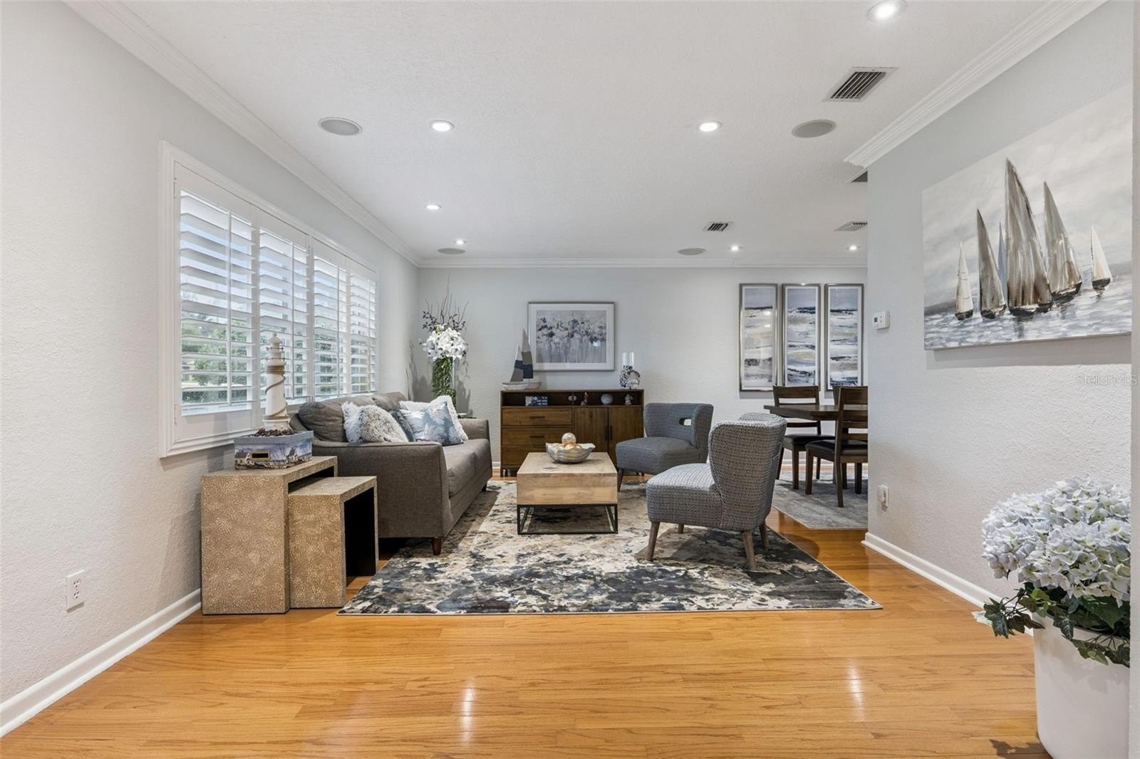 The primary suite has a sitting area with two additional closets overlooking the covered lanai & lake frontage and could serve as a secluded office space or cozy reading nook. 3 additional bedrooms, all with walk-in closets, are located at the opposite side of the home from the primary suite for that enviable split-plan! The Living Room, with wood flooring and plantation shutters leads you to the casually elegant Dining space, with room for a large dining table. Serve your guests directly from the gorgeous kitchen with BRAND NEW quartz countertops, new sink & upgraded fixtures. The Kitchen also has a breakfast bar leading to an inviting Family Room, just steps from the new laundry room. The airy Florida Room is the best place to take in the waterfront views UNTIL you step outside onto your covered lanai! This is a great spot for entertaining, gathering and Al Fresco dining! You'll want to end your evening around the firepit, toasting THE GOOD LIFE!