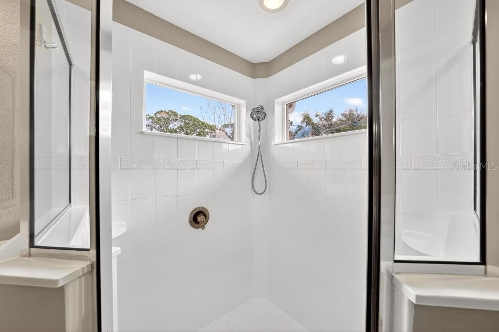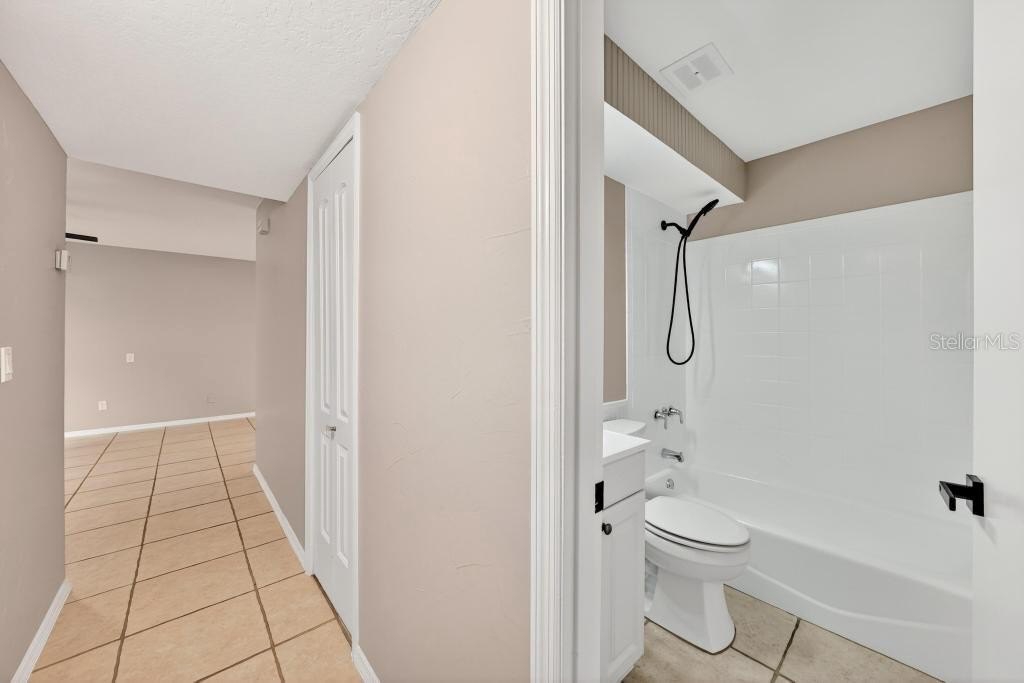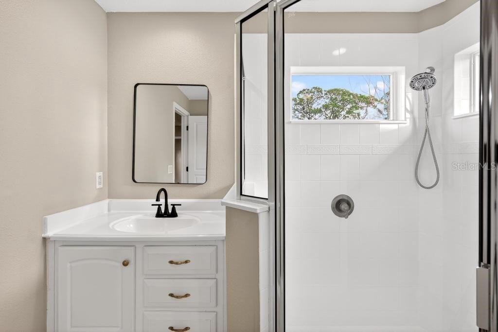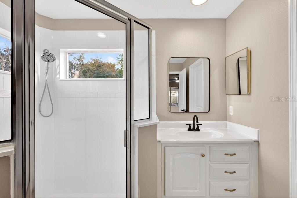 Both the primary and guest bathrooms have been professionally reglazed, making the tile look like new and providing a clean, refreshed appearance.