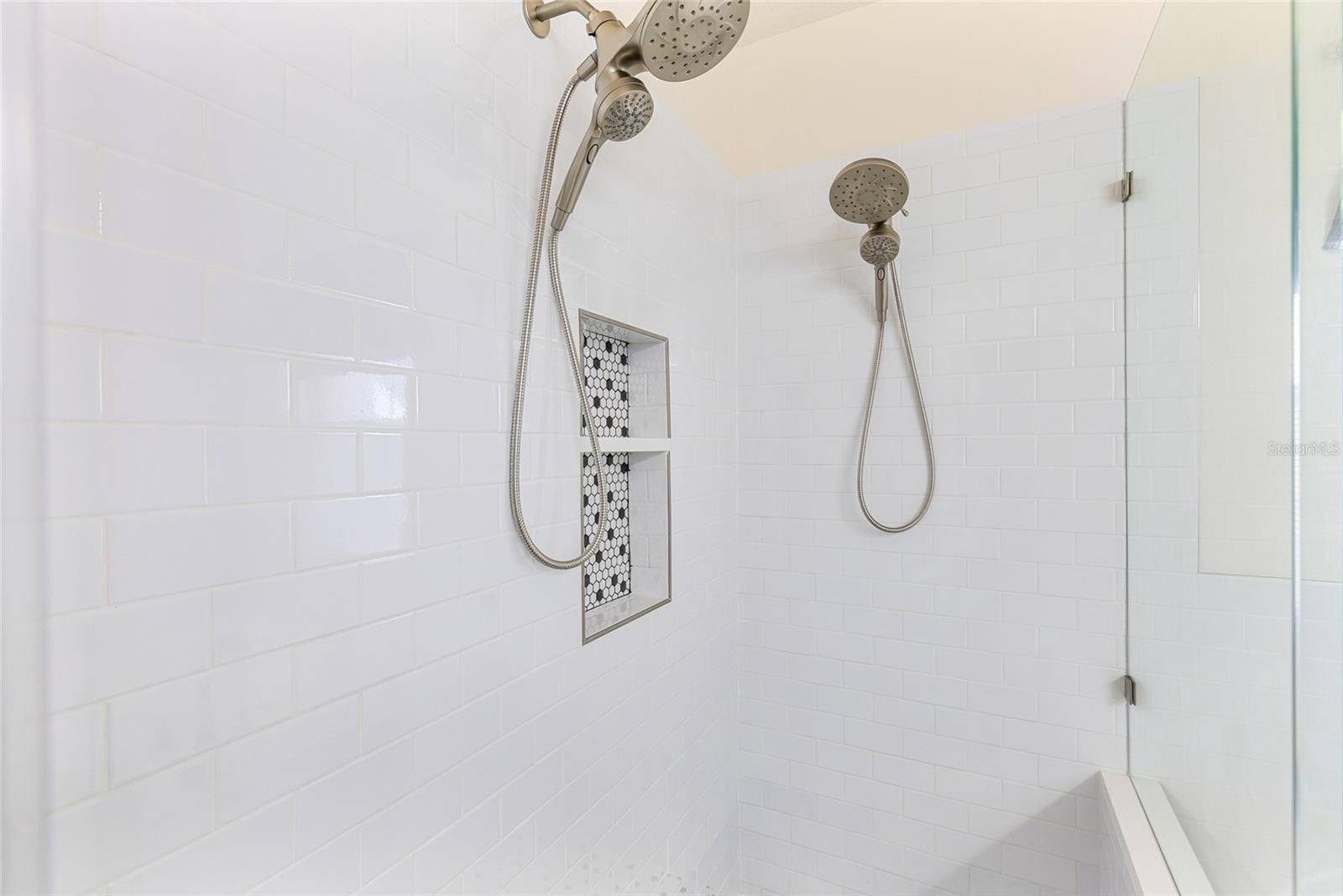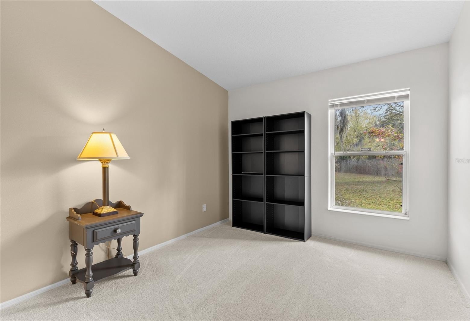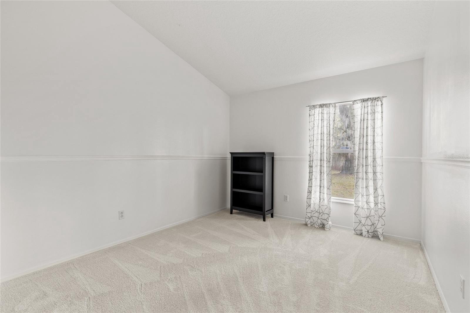 Step inside to an open floor plan highlighted by soaring high ceilings that create a bright and spacious feel throughout the main living areas. There is a formal dining and living room as you enter the home. An office or den has French doors for privacy. The split-bedroom layout offers added privacy, with the primary suite located on the opposite end of the home from the secondary bedrooms. The spacious primary retreat features new luxury vinyl flooring, an updated primary bathroom, and a generous walk-in closet. The primary bath has two separate shower heads with a total of 4 shower heads, the stunning vanity has pull out shelving providing plenty of storage space, and 2 mirrors with lighting and de-fogging features.
