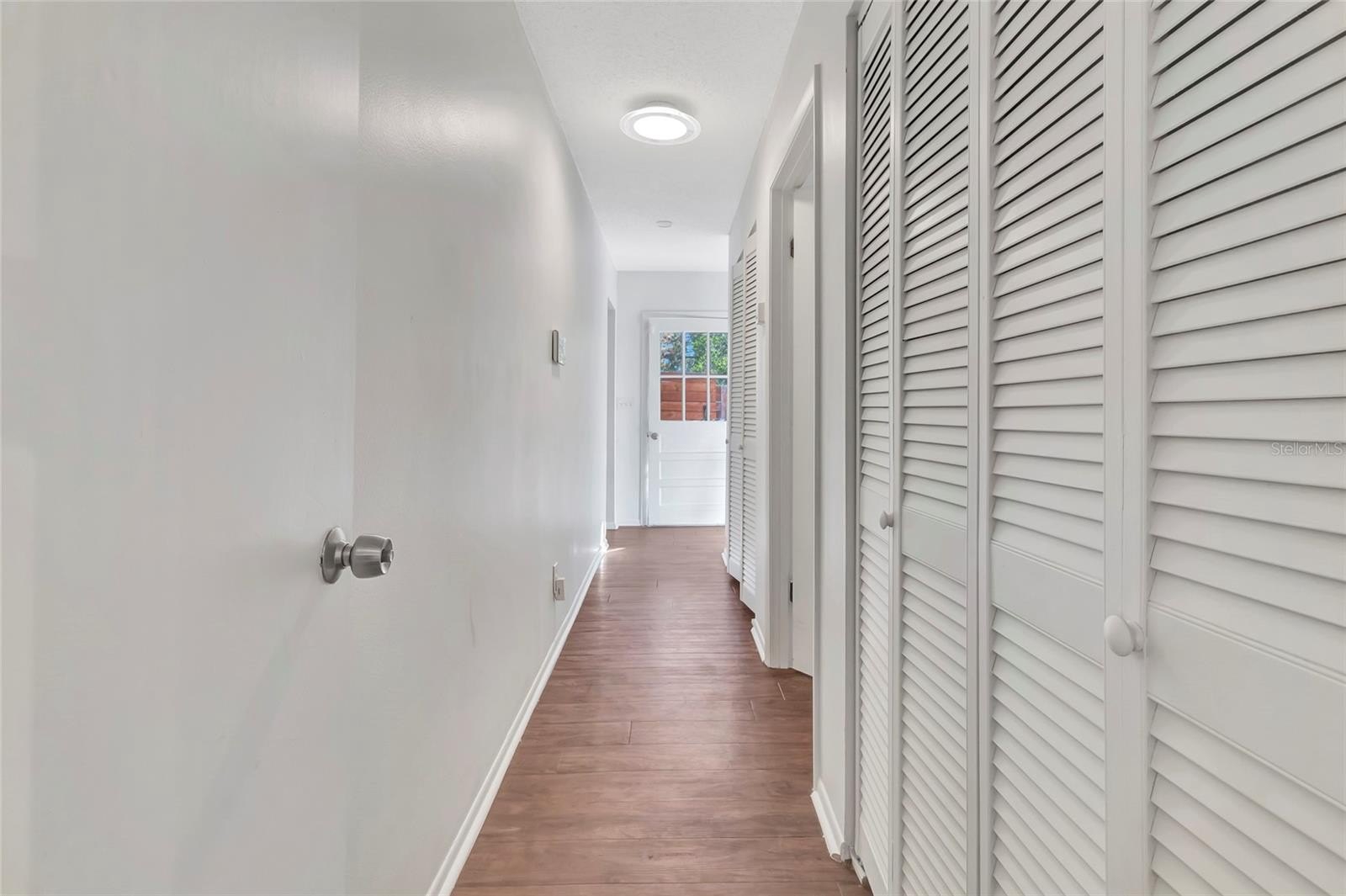 Convenience continues with the laundry closet featuring a newer stackable washer and dryer, maximizing space while keeping everyday tasks simple and efficient.