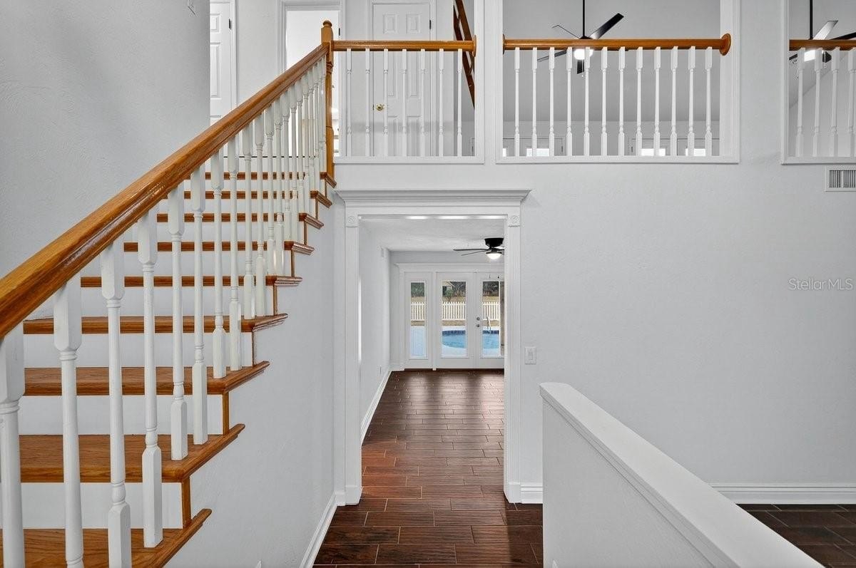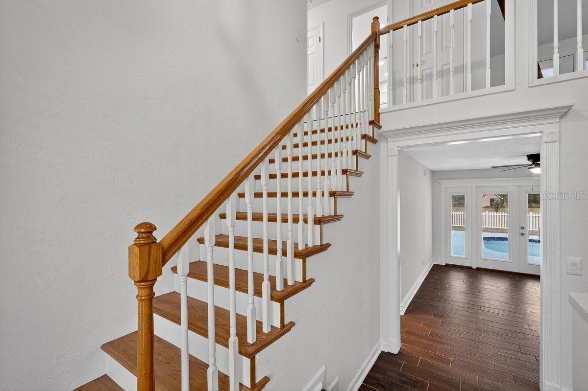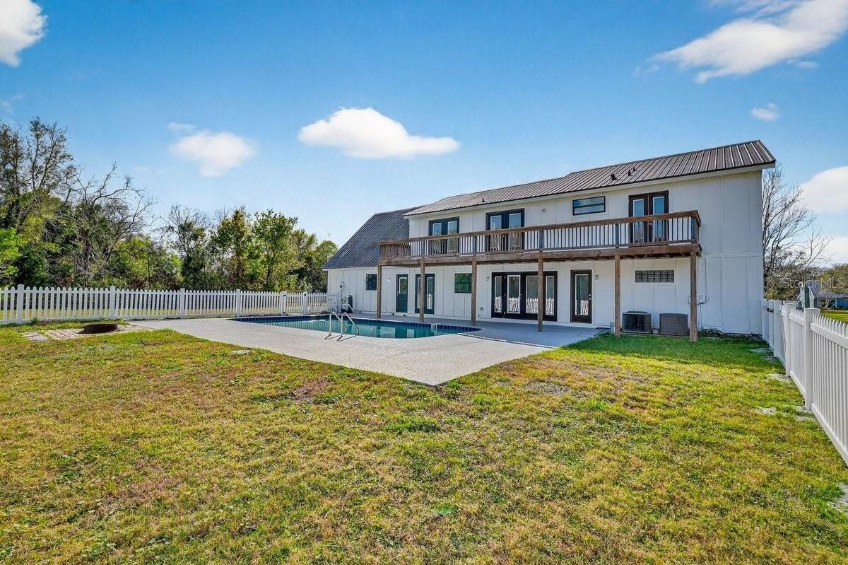 Nestled on a sprawling 1.35-acre estate lot in one of Port Orange’s most sought-after neighborhoods—where every homesite is a minimum of one acre for exceptional privacy—this beautifully renovated 4BR/2.5BA two-story pool home offers the perfect blend of rural serenity and modern sophistication, all just five minutes from shopping and dining and 15 minutes to the beach. Tucked at the back of the community and backing directly to the protected Spruce Creek Preserve, this high-and-dry property in preferred Flood Zone X provides both peaceful wooded views and added peace of mind. Following an extensive $250,000 interior and exterior renovation, the home shines with thoughtful upgrades throughout, including a fully renovated pool and pool deck with new equipment, new windows and doors, new Hardie-board board-and-batten exterior, fresh interior and exterior paint, refinished metal roof, new wood staircase, raised family room (formerly sunken), updated electrical, renovated bathrooms, new stainless steel appliance package, new water heater, new garage door openers, additional tile flooring, and a charming white picket pool fence—among many other enhancements. The well-designed floor plan features a welcoming foyer, spacious living and dining rooms, an updated kitchen, half bath with pool access, laundry room, oversized two-car garage, and a private first-floor owner’s suite with an expansive walk-in closet, while multiple French doors invite seamless indoor-outdoor living to the pool deck and fire pit gathering area. Upstairs, a generous loft anchors a split-bedroom layout, with one bedroom on one side and two additional bedrooms with shared bath on the other, plus a long balcony overlooking the lush grounds and preserve beyond. With ample room for boat and RV storage and horses welcome, this exceptional property delivers the tranquility of country living without sacrificing the convenience of town—a rare opportunity to create your own private retreat in the heart of Port Orange. ALL INFORMATION IS ASSUMED ACCURATE BUT NOT GUARANTEED. ALL MEASUREMENTS ARE APPROXIMATE. BUYERS AND THEIR AGENTS SHALL VERIFY ANY INFORMATION DEEMED IMPORTANT TO THEM.
