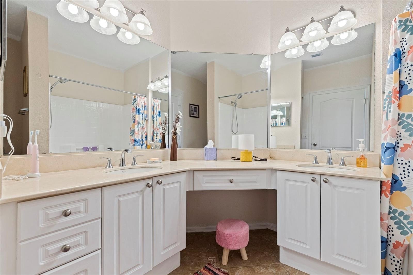 Inside, this bright and inviting residence features two spacious bedroom suites, each with large bathrooms and walk-in closets, offering comfort and privacy for residents and guests alike.
