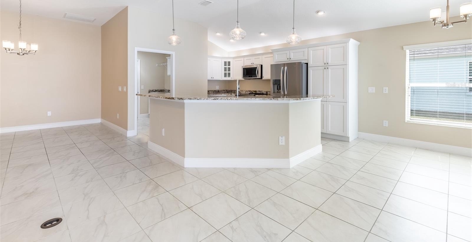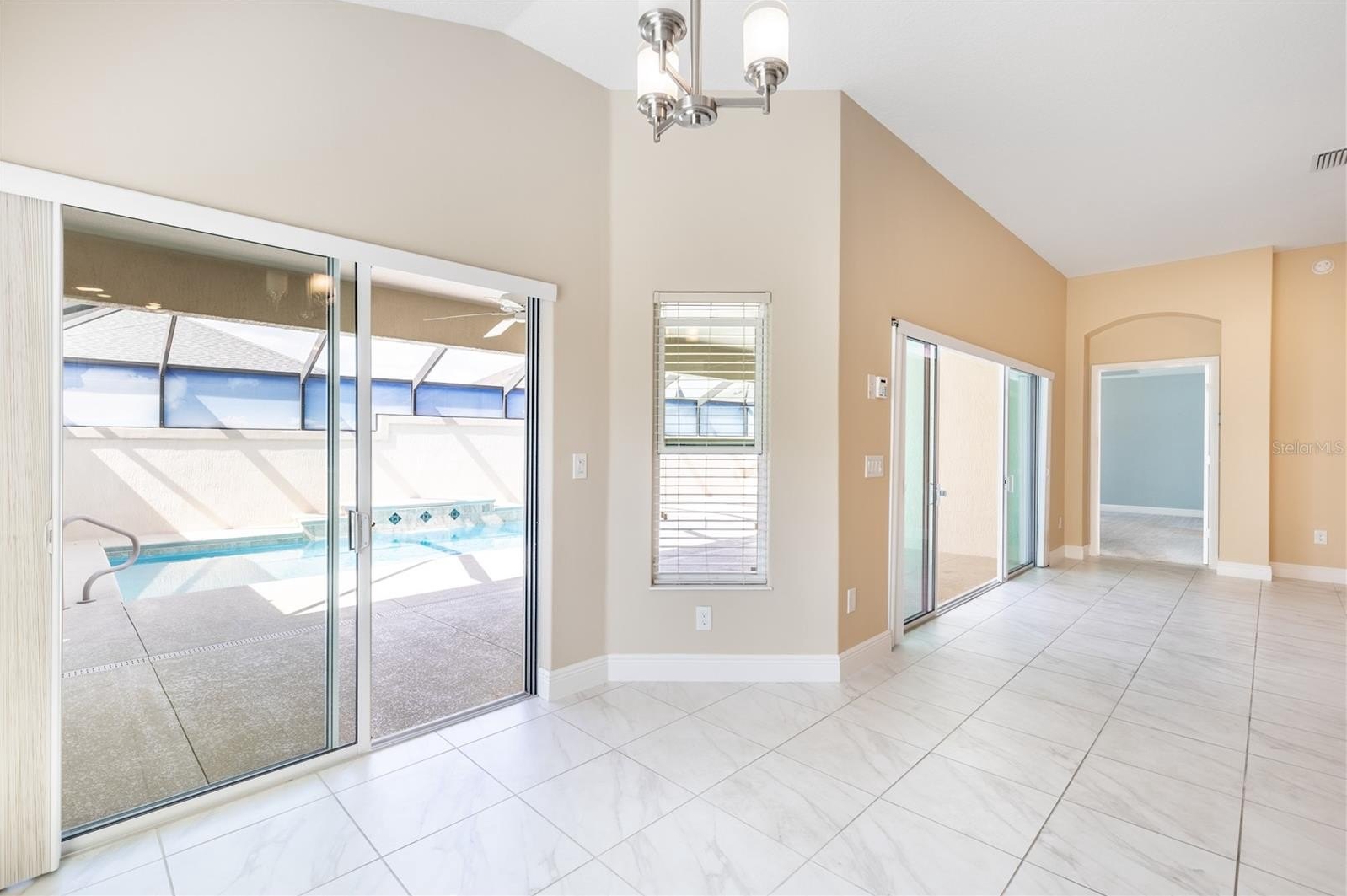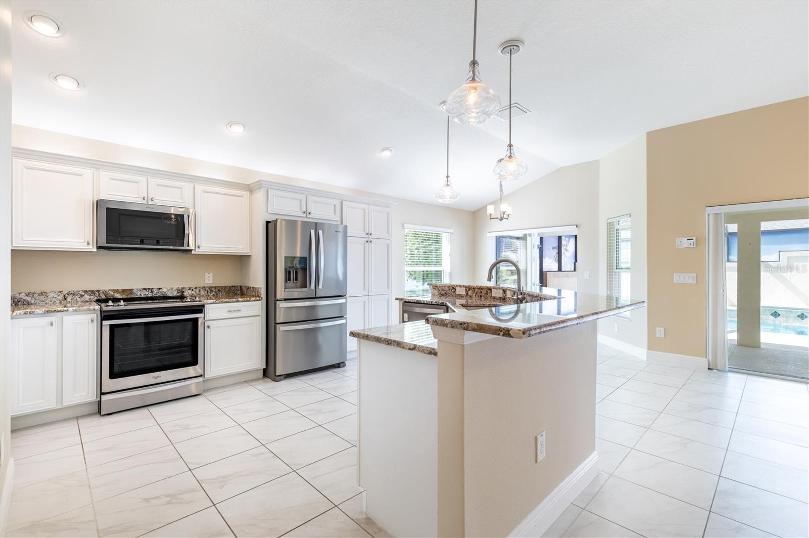 Step inside through the elegant leaded glass front door to an open and airy floor plan featuring high Volume Ceilings, gorgeous ceramic tile flooring, and abundant natural light. The kitchen is designed for both everyday living and entertaining with rich GRANITE COUNTERTOPS, STAINLESS STEEL Appliances, upgraded cabinet lighting, Pull-out Shelving, and a pantry for extra storage. The primary suite is a relaxing retreat with a Tray Ceiling, large walk-in closets, and a spacious en-suite bath featuring a Roman shower. A second guest suite with Tray Ceiling and private bath offers ideal accommodations for visitors, while the third bedroom and separate guest bath provide additional comfort and flexibility. Step outside through the sliding glass doors to your private outdoor oasis featuring a 13x27 pool with waterfall, large birdcage enclosure, and custom mural for added privacy—perfect for relaxing or entertaining. Additional highlights include :Screened front porch, New landscaping, Expanded garage with Epoxy Flooring, Golf cart garage, Pull-down attic stairs for additional storage, New Beautiful landscaping. Ideally located near Moyer Recreation Center, this home is surrounded by several executive golf courses and just a short golf cart ride to Belle Glade Country Club and its championship golf courses, as well as the Saratoga Driving Range. Enjoy the convenience of being minutes to Pine Ridge Pool, the Pine Ridge Postal Station, and Moyer Recreation Center. There are also several additional pools nearby, including a Lap Pool, where residents can enjoy water volleyball and other recreational activities. This prime location offers easy access to some of the best recreation, golf, and amenities The Villages Lifestyle. PLEASE WATCH OUR VIDEO!!!