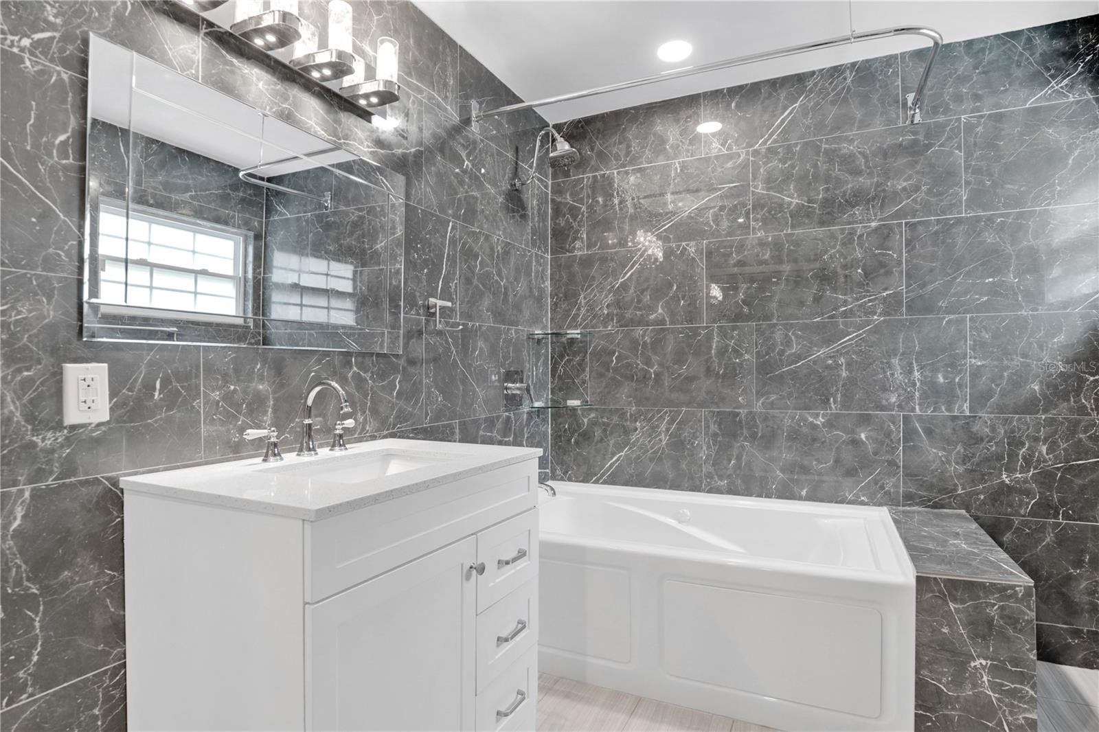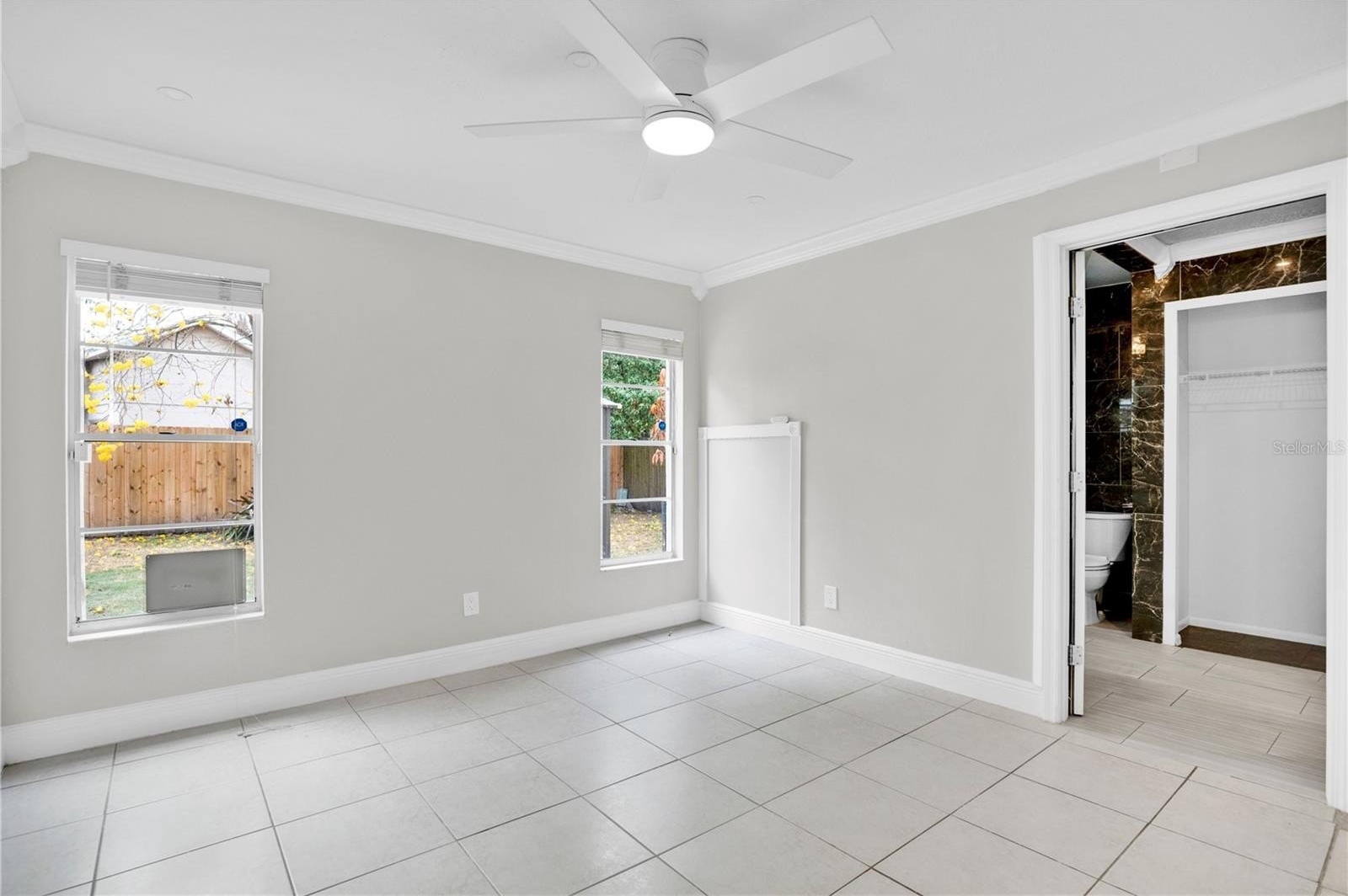 One or more photo(s) has been virtually staged. Welcome to this amazing 4-bedroom (garage was converted), 3-bath single-family home tucked away in the Devonwood community of East Orlando. This hidden gem offers the perfect blend of comfort, flexibility, and income potential, featuring a private in-law suite/guest suite/bonus room with its own separate entrance and full bathroom, ideal for extended family, guests, or owner-occupants seeking rental opportunities. The versatile layout also allows for room-by-room leasing, providing additional earning potential. Step inside to a bright, open-concept living and dining area highlighted by soaring ceilings, recessed lighting, and a cozy fireplace that creates a warm and inviting atmosphere. The renovated primary suite serves as a peaceful retreat, complete with a jacuzzi tub and separate shower for ultimate relaxation. The spacious kitchen features abundant cabinet storage, generous counter space, and a charming breakfast nook for casual dining. Upstairs, two additional bedrooms are connected by a convenient Jack-and-Jill bathroom, offering both privacy and functionality.