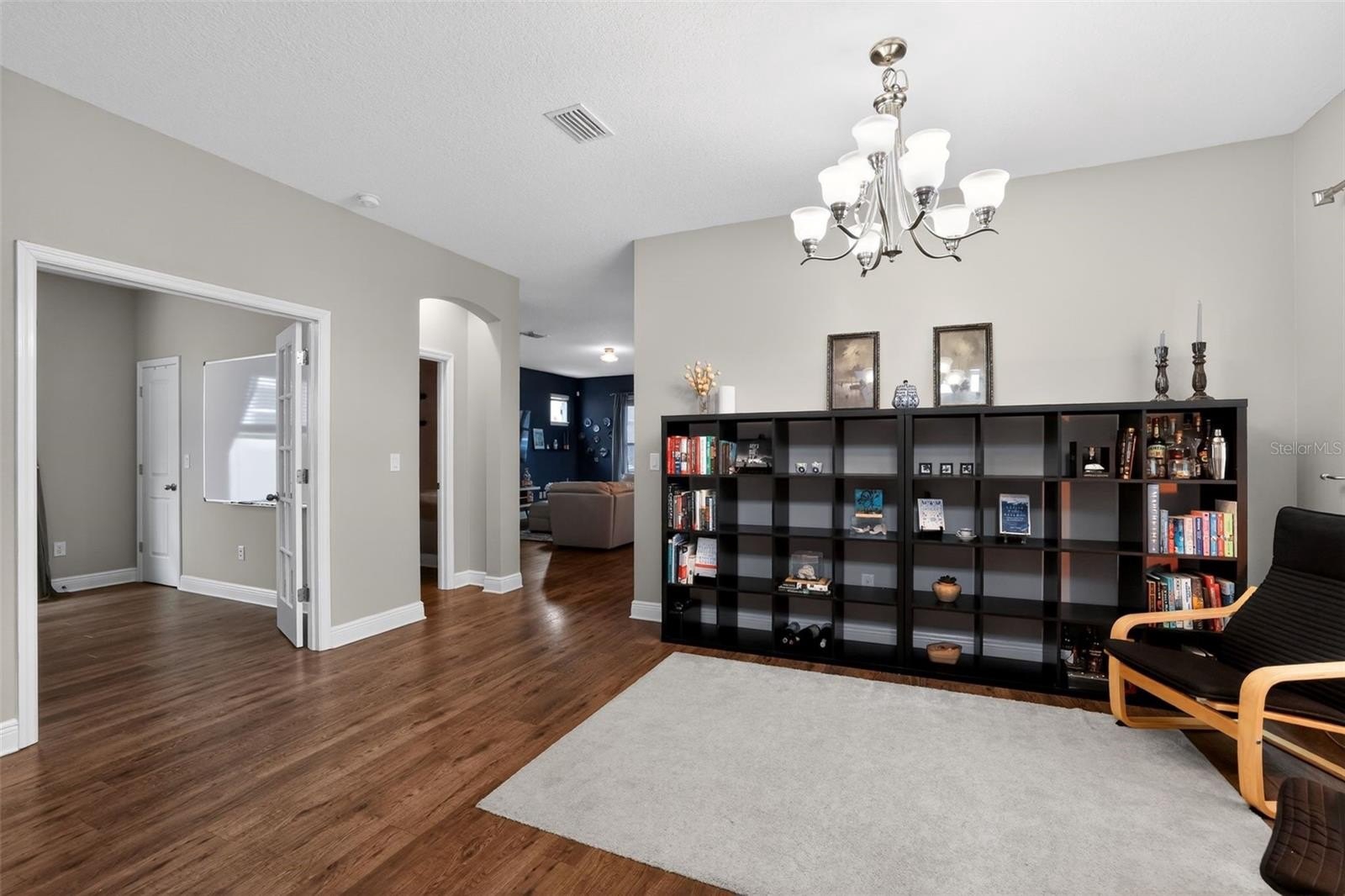 Also on the first floor, you will find a convenient half bath and a large office that includes a closet, offering the flexibility to be used as a true bedroom if desired. Beautiful chestnut engineered hardwood flooring runs through much of the main level, adding warmth and character to the space.