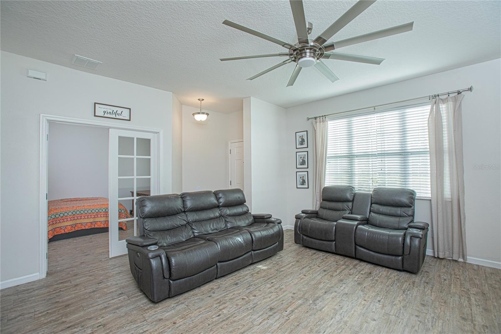 The primary suite is generously sized, providing comfort and privacy for homeowners.