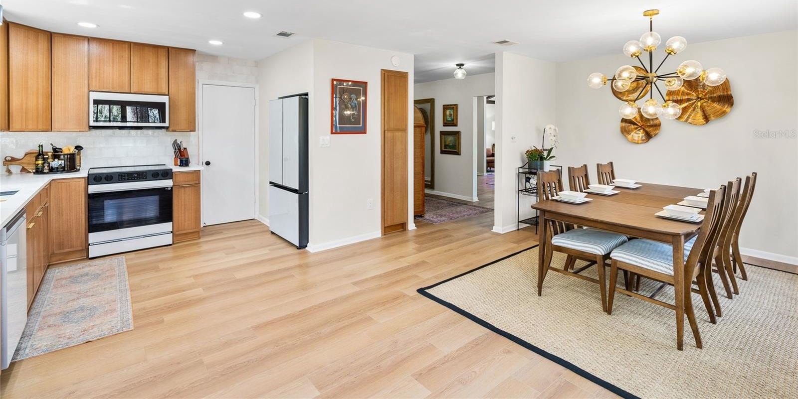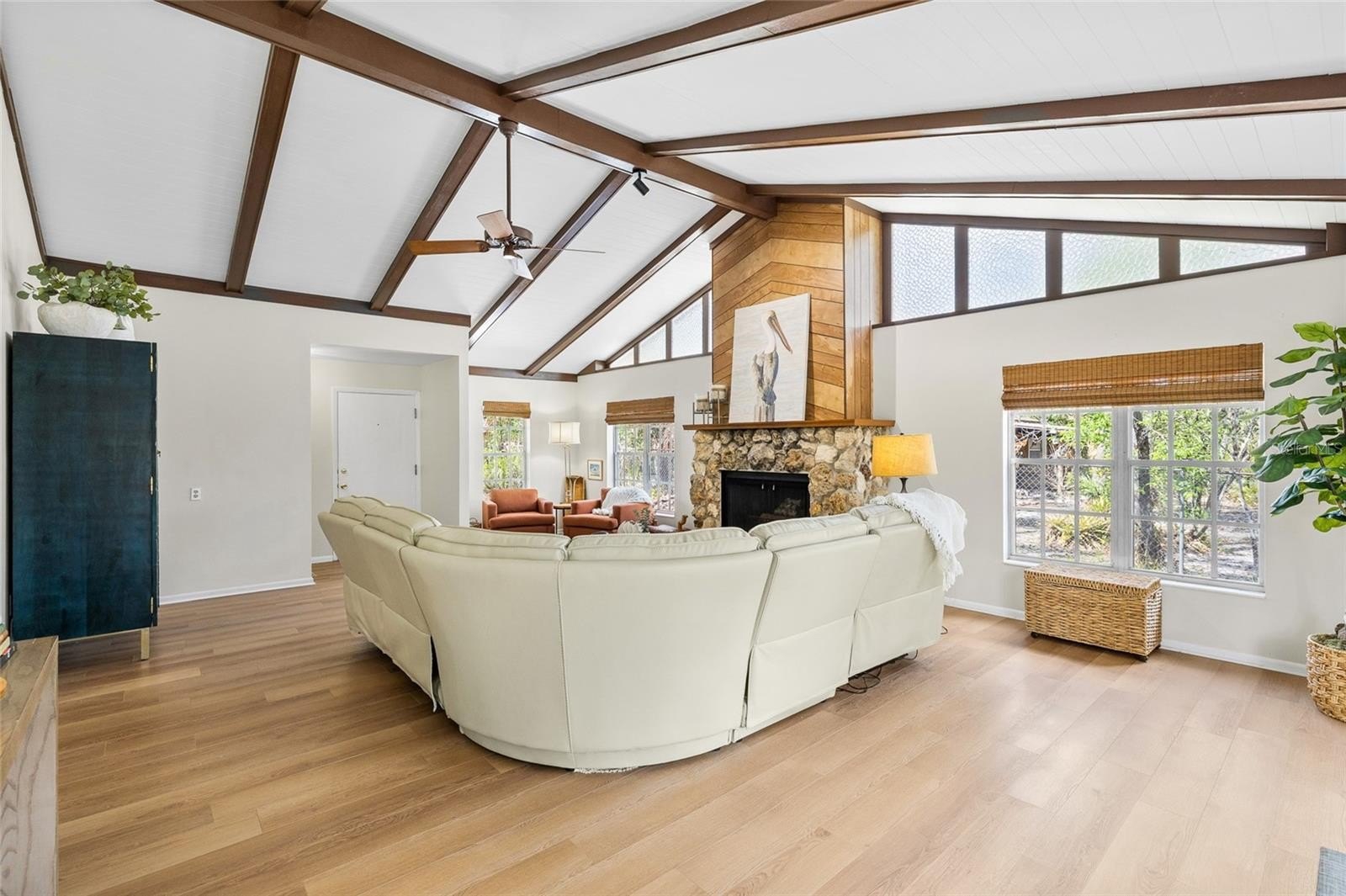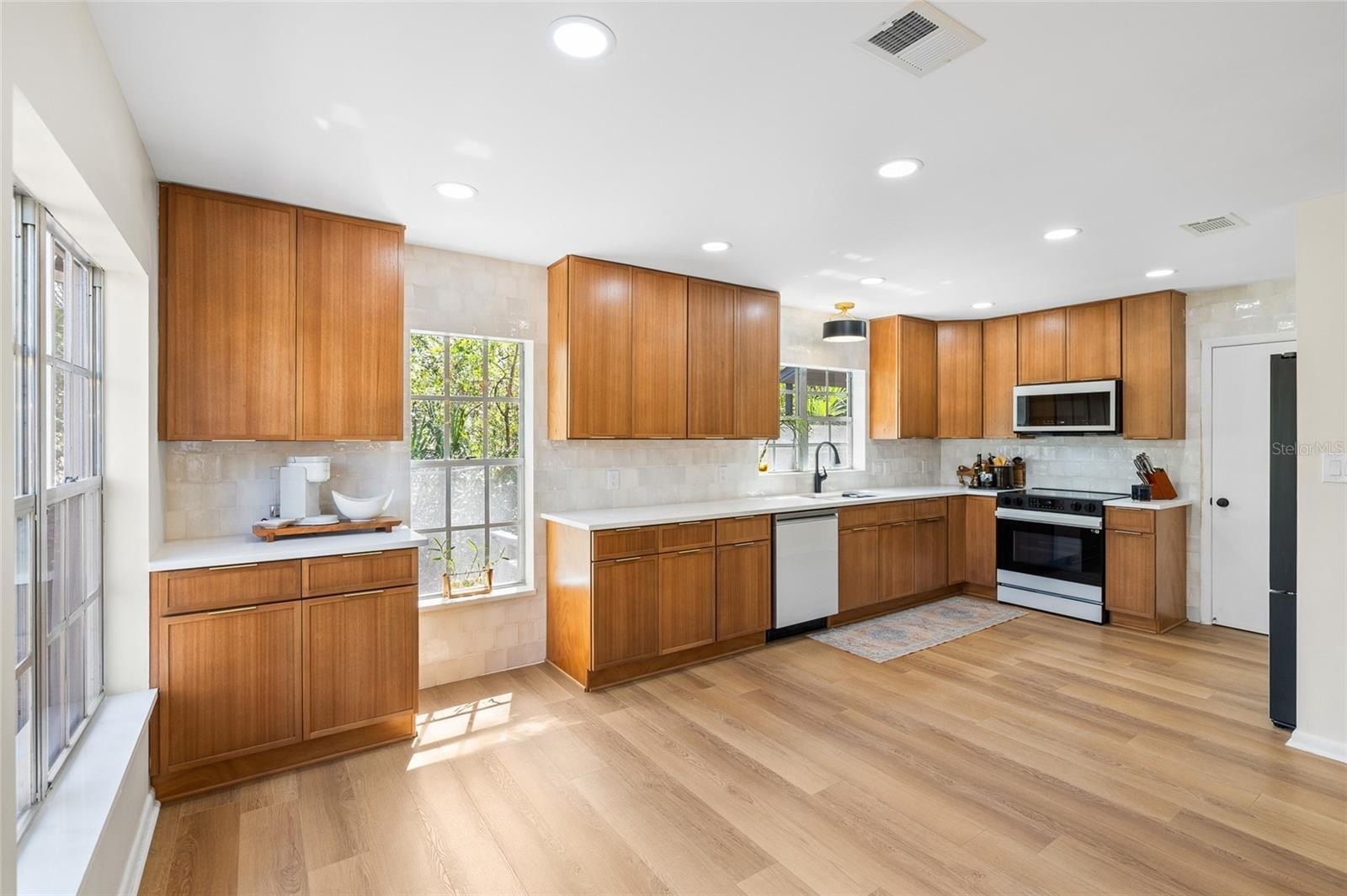 Inside, the home reflects approximately $150,000 in thoughtful renovations designed to elevate everyday living. A new roof (2025), electrical panel (2023), exterior paint (2024), and crushed shell driveway (2025) ensure lasting value. The entire home was thoughtfully remodeled in 2024 (With Permits) and introduced luxury vinyl plank flooring, updated lighting, fresh interior paint, and beautifully redesigned bathrooms with custom tile throughout. The fully renovated open concept kitchen features new cabinetry, countertops, tile, lighting, and brand new appliances—the stylish and functional heart of the home.