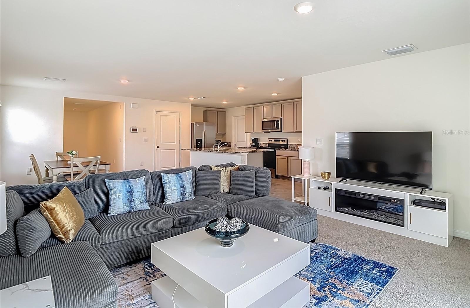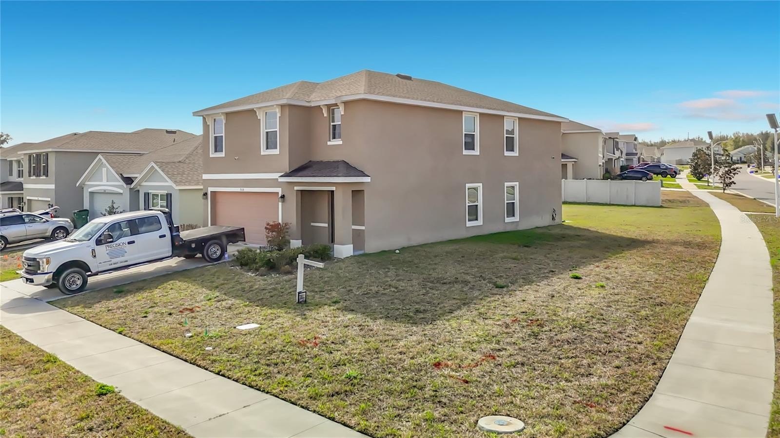 Why wait for a new construction when you can move in now. Discover this spacious five-bedroom, three-bathroom home featuring 2,267 sq. ft. of modern living space across two levels, ideal for growing families and perfect for hosting and entertaining. The main level features a bright open concept and spacious great room ideal for relaxing and gathering. The modern kitchen is equipped with granite counters, abundant cabinet space, and a large pantry, complemented with stainless steel appliances, making cooking and cleaning effortless. A convenient first-floor bedroom and full bathroom give added flexibility, while four additional bedrooms and 2 bathrooms are located on the second floor. Enjoy the added flexibility of the loft area, perfect for a second living space, home office or playroom. The home also offers 2 parking spaces and a 2-car garage, providing plenty of room for vehicles and storage. Set on a corner lot, the property included a rear concrete patio that expands the living space outdoors, a built-in irrigation system for easy lawn maintenance, and community sidewalks that promote both safety and a welcoming neighborhood feel. Community Amenities Include: Clubhouse with party rooms, Resort-style swimming pool, Playground and Dog park. This home is perfect for those looking to settle into a vibrant, growing neighborhood.