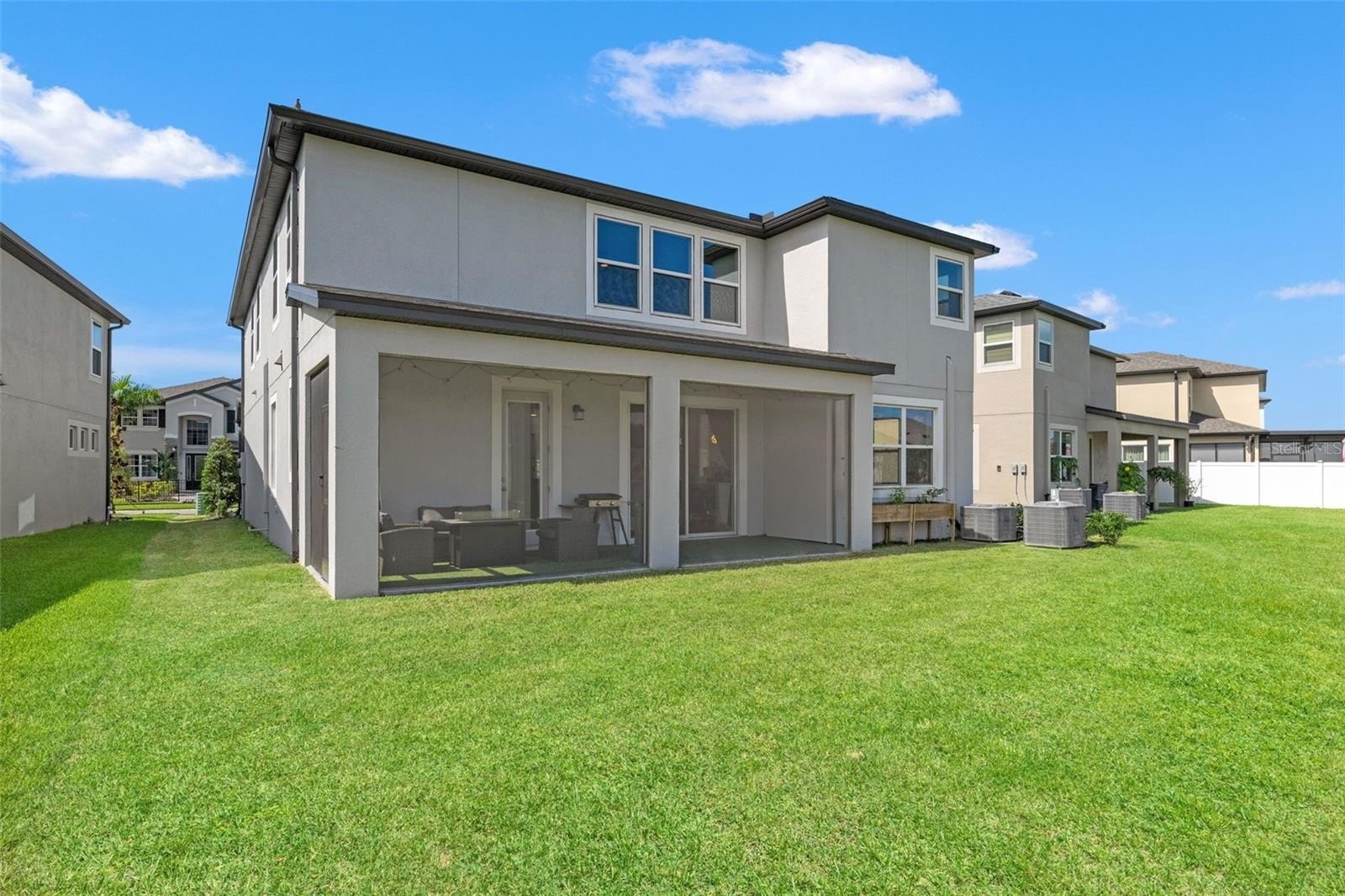 Better Than New, Loaded with Upgrades, Move-In Ready! Welcome to 5945 Newberry Pines Avenue, a stunning 2023 built MI Homes Coronado II that truly stands apart from new construction. Why wait months to build when you can move right into a home already filled with high end upgrades, designer finishes, and thoughtful details that most new builds simply do not include? Offering over 3,000 square feet of beautifully designed living space, this home features five spacious bedrooms, four bathrooms, a versatile flex space, and a large upstairs loft, creating the perfect layout for both everyday living and entertaining. From the moment you walk in, the upgrades are impossible to miss. The home showcases designer accent walls, a statement electric fireplace, a stunning library feature wall, upgraded lighting throughout, and modern finishes that elevate every room. Soaring ceilings and an open layout create a bright, inviting atmosphere that feels both elegant and comfortable. The chef’s kitchen is the heart of the home, complete with premium appliances including a GE Smart Kitchen Hub, stylish cabinetry, and upgraded finishes designed for both beauty and functionality. Just off the entryway, the home features a beautifully designed mudroom located near the front door and laundry room, providing the perfect drop zone for bags, shoes, and everyday organization. The primary suite is a true retreat, offering generous space, two custom-built oversized walk-in closets, and a spa inspired bathroom designed for comfort and relaxation. Secondary bedrooms are all generously sized, perfect for family, guests, or dedicated home office space. Additional upgrades throughout the home include custom closet systems, upgraded flooring, overhead garage storage, and an installed Tesla charging station. Step outside to enjoy the screened lanai with no vertical beams, creating wide open, unobstructed views of the beautifully finished low maintenance turf backyard, perfect for relaxing or entertaining. Beyond the home itself, the community offers an incredible lifestyle. With an extremely low HOA of just $85 a year, residents enjoy resort style amenities including a pool with lazy river, fitness center, playgrounds, tennis courts, and pickleball courts. Homes with this level of upgrades, space, and move in readiness rarely come available. Skip the builder wait and step into a home where everything has already been thoughtfully completed. Schedule your private showing today and discover why this home is truly better than brand new.