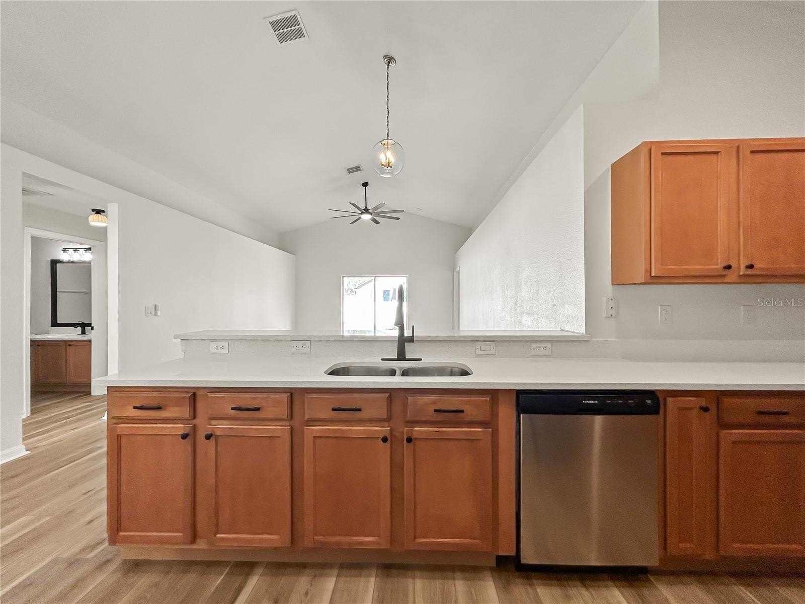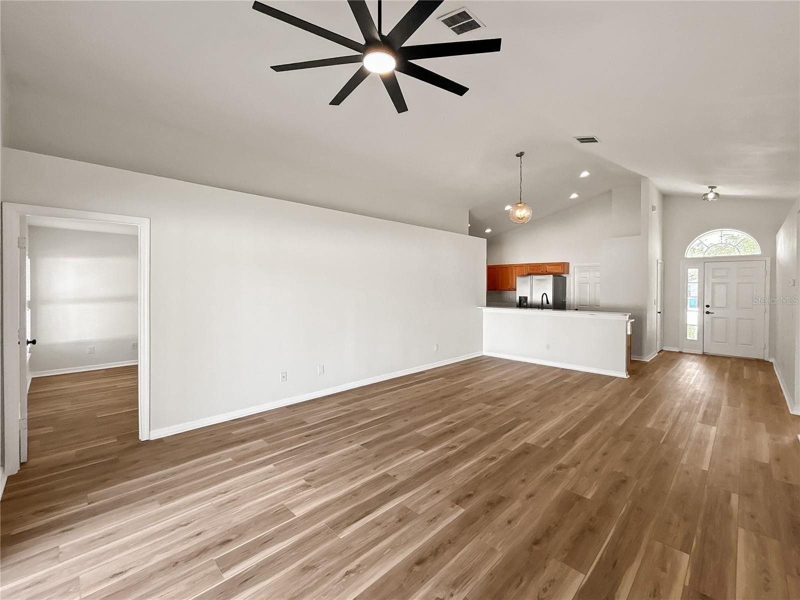 Step inside to soaring vaulted ceilings that flood the home with natural light, creating an airy and inviting atmosphere from the moment you enter. The open-concept layout seamlessly connects the living, dining, and kitchen areas — perfect for entertaining or everyday living.
