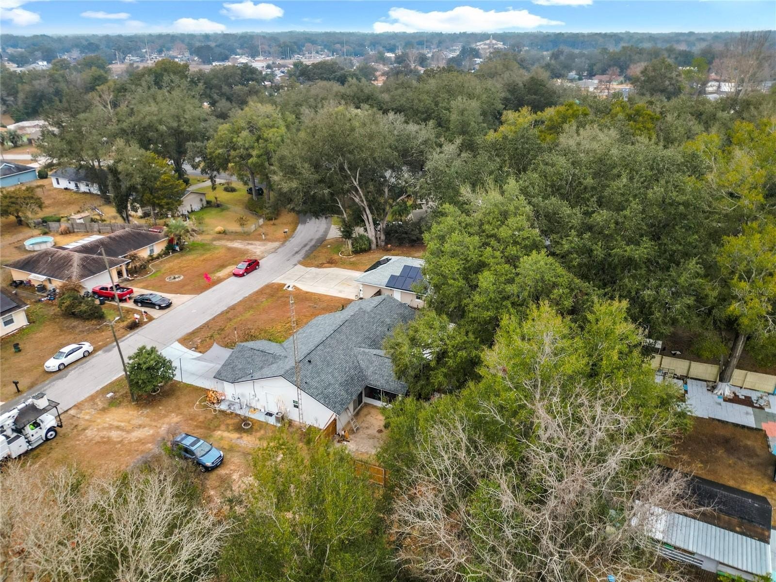 Recent upgrades include a new architectural shingle roof installed in 2025, interior A/C unit replaced in 2023, whole-house water filtration system installed in 2023, upgraded windows in 2020, and the septic system pumped in 2020. The garage includes a dedicated laundry area with a utility tub, a door that leads to the outside of the home, and a canopy tarp in front of the garage to help keep vehicles shaded from the heat when parked outside. The property also features a well, meaning no water bill.