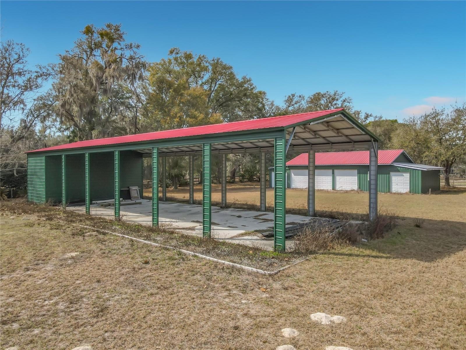 The property includes several substantial outbuildings designed for versatility and agricultural functionality: