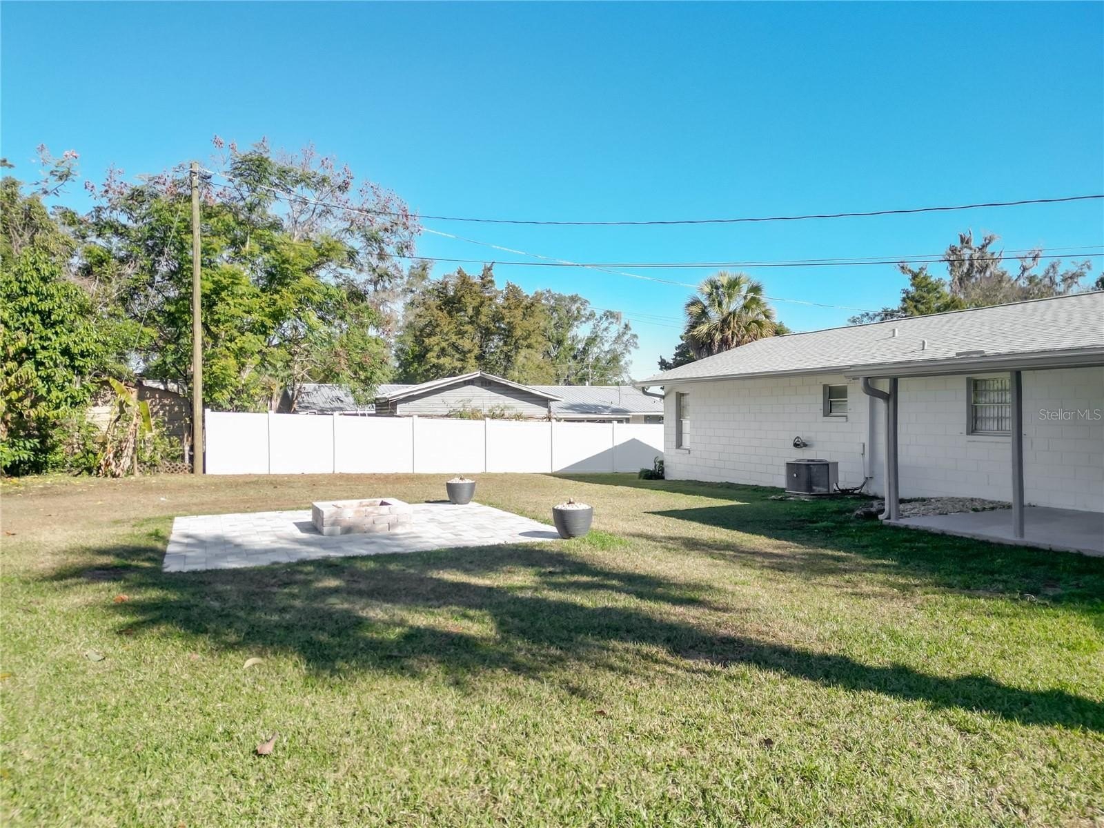 This 3-bedroom, 2.5-bath home offers a functional layout with a living room and dining area, a generously sized laundry room, and additional storage near the rear lanai. The backyard is designed for relaxation and entertaining, featuring mature palm trees, a producing avocado tree, a paved gathering area with fire pit, and two storage sheds (12x20 and a smaller shed). A 10x20 paved dog kennel adds additional convenience for pet owners.