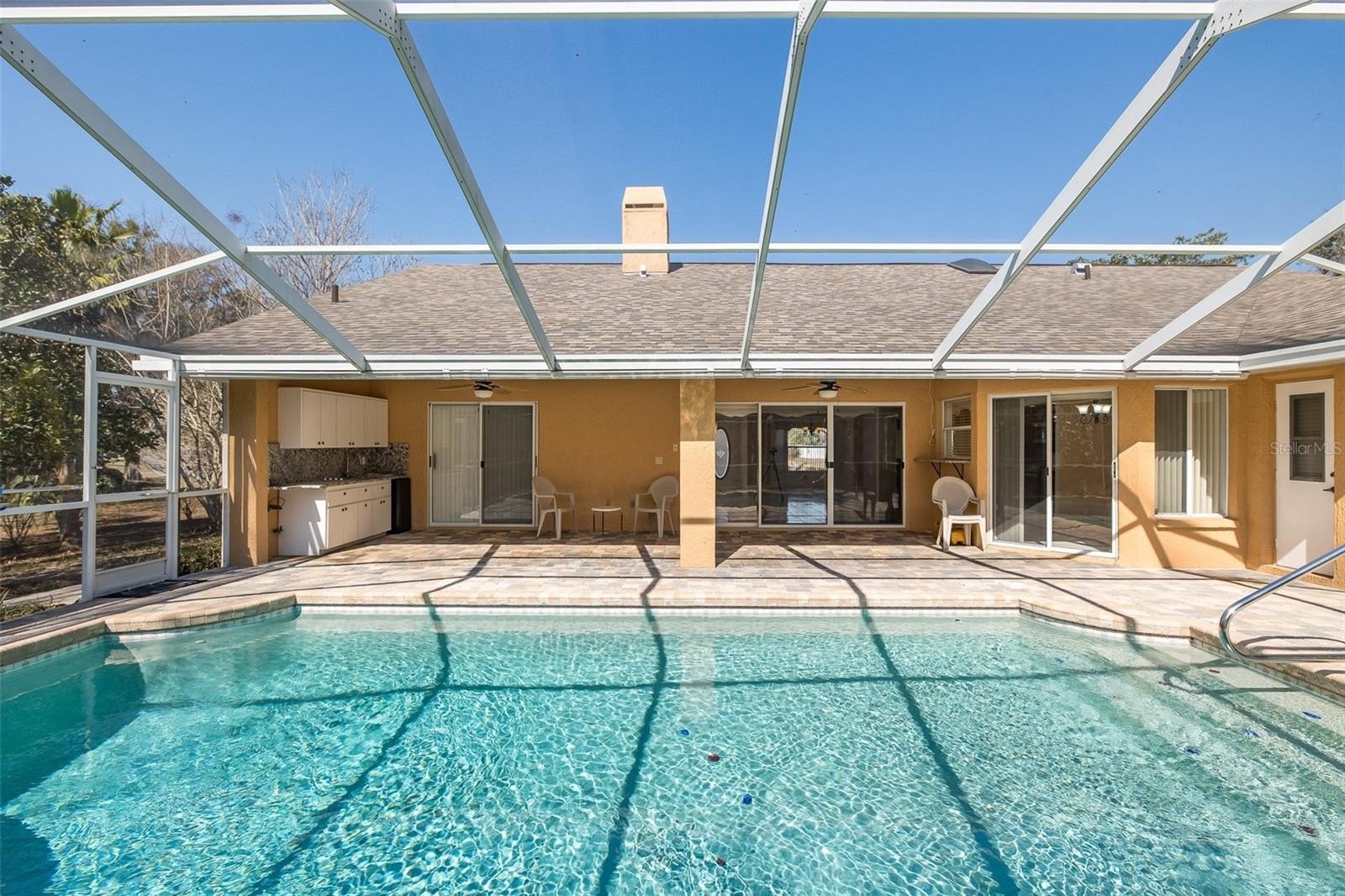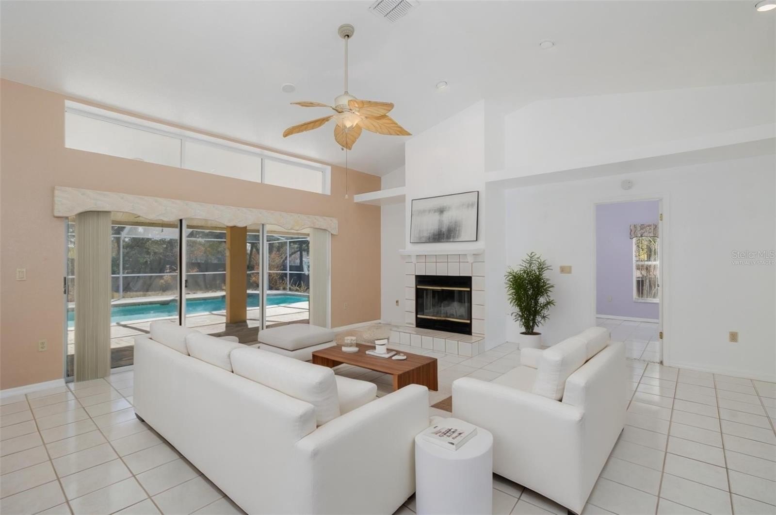 One or more photo(s) has been virtually staged. Welcome to your private slice of paradise in the highly desirable Oakridge Estates — where space, serenity, and modern comfort come together beautifully. Situated on an expansive 0.629-acre lot, this stunning 3-bedroom pool home offers the perfect balance of elegance and everyday livability. From the moment you arrive, you’ll appreciate the pride of ownership and thoughtful updates, including a newer roof (2019), newer AC system, and updated pool screening—providing peace of mind for years to come. Step inside to a bright, open layout designed for both entertaining and relaxation. The split floor plan offers privacy and functionality, while the spacious living and dining areas flow effortlessly beneath soaring cathedral ceilings. At the heart of the home, you’ll find a beautifully updated kitchen featuring modern granite countertops, a sleek glass backsplash, and Stainless-steel appliances—all overlooking the inviting main living area. A cozy wood-burning fireplace adds warmth and charm, creating the perfect gathering spot for family and friends. The primary suite has sliders leading out to the pool, double walk-in closets, and an en-suite bathroom. The bath has been updated and has dual sinks, granite counters, garden tub and separate shower. The two spare bedrooms both have walk in closets and are located in their own hallway with a fully updated adjacent bath. The bath has granite countertops and leads out to the pool. Step outside to your own Florida retreat. The expansive lanai overlooks a screened-in, in-ground pool, ideal for cooling off on sunny afternoons or hosting unforgettable weekend get-togethers. With plenty of covered space and an outdoor kitchen, this is definitely a place to relax. The indoor laundry room has plenty of cabinet space and leads out to the oversized two-car garage. You don’t want to miss this one! This is a repaired settlement home and fully insurable. Full report available