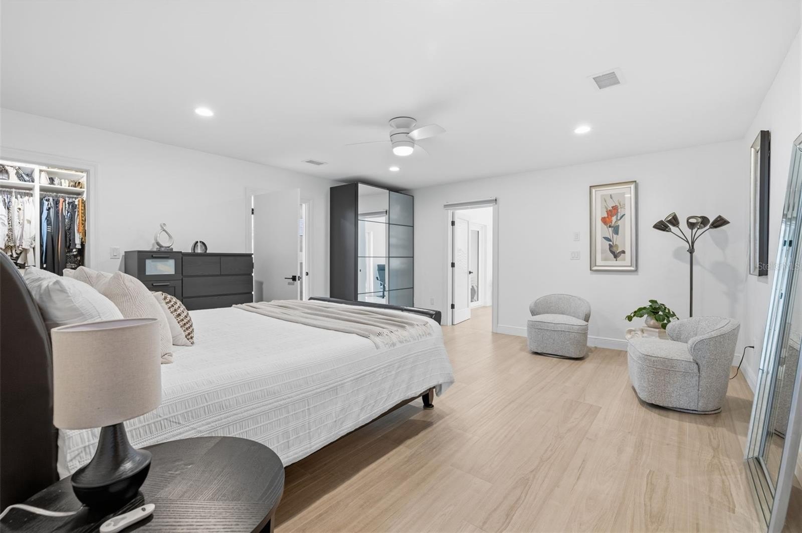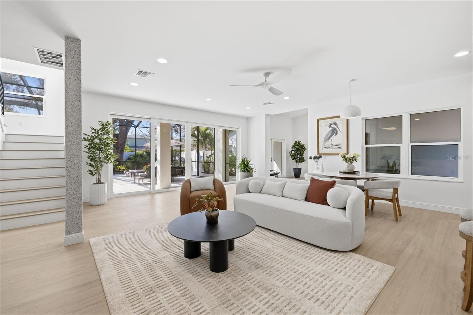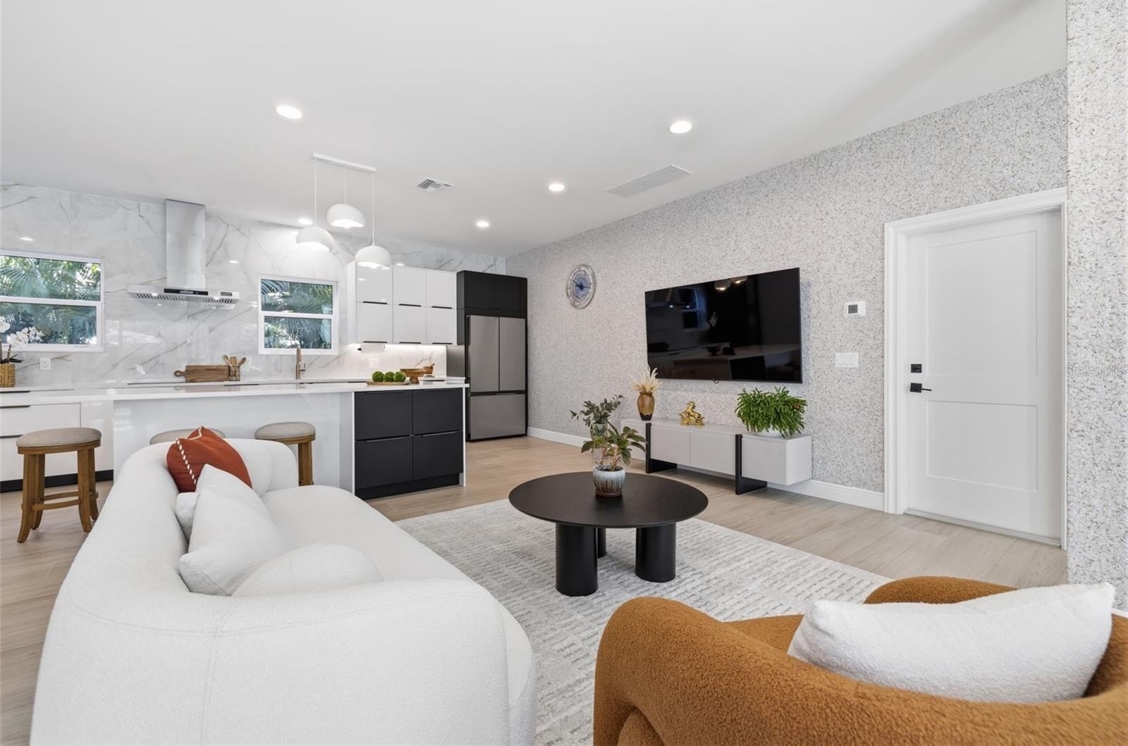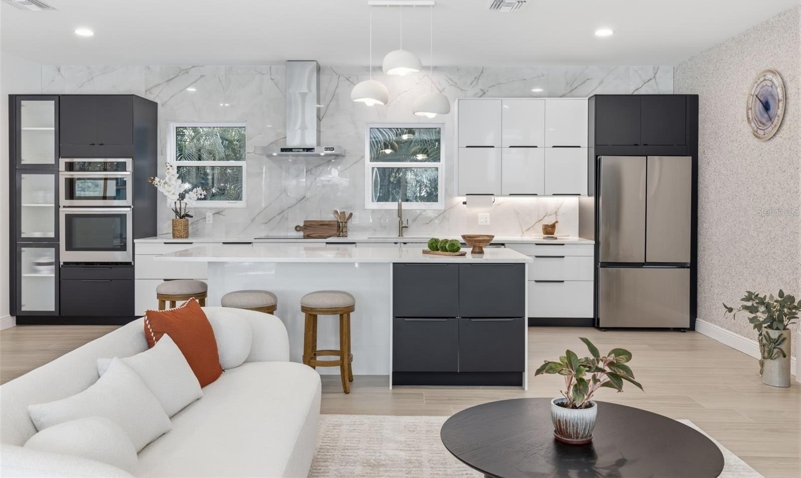 NOTE: Zestimate does NOT reflect the home's size, renovation, or recent new construction addition quality. You haven’t found paradise until you step inside 639 43rd Avenue North in St. Petersburg. Located in the peaceful and coveted Allendale Terrace neighborhood, just 5 minutes from vibrant downtown St. Petersburg and only 15 minutes from the beaches, this extraordinary multi-generational estate offers luxury, privacy, and thoughtful design throughout. The original home was completely remodeled in 2021, blending timeless character with modern elegance. As you arrive via the enchanting circular walkway and enter the original residence, you’re welcomed into a spacious, fully updated kitchen and living room designed for comfort and entertaining. Two bedrooms are positioned to the right, ideal for guests or family members. Beyond the kitchen sits an oversized laundry room, and across from it, a stunning master retreat featuring a fully remodeled custom-tiled bathroom and oversized bedroom with a private sitting area — a peaceful escape within the home. The original home and new addition are connected by an enclosed breezeway with French doors providing entrances to both the north and south sides of the property. Passing through the breezeway, you enter the new 2,821 square foot addition completed in August 2024. This space feels like a brand-new home featuring a gorgeous modern kitchen within the breathtaking 820 square foot great room, perfect for entertaining gatherings of any size. Large multi-panel sliding glass doors open to the 1,500 square foot lanai and pool area. The oasis-style pool and lanai, completed in September 2024, create a resort-like experience in your own backyard. The 30 ft by 14 ft heated pool is accented with blue iridescent tile and complemented by a separate hot tub area, surrounded by lush tropical landscaping, palm trees, and mature oaks offering privacy and serenity. A striking staircase with contemporary chandelier and metal railing leads upstairs to a thoughtfully designed split floor plan featuring two expansive master suites positioned on opposite sides for maximum privacy. Each suite is approximately 650 square feet and includes a large bedroom, additional living space ideal for an office or lounge, a full custom-tiled bathroom, generous walk-in closet, and screened-in balcony — perfect for morning coffee or evening cocktails. In total, the home offers 4,518 square feet of air-conditioned space with five bedrooms, three of which are true master suites, five full custom-tiled bathrooms, and two full kitchens - ideal for multi-generational living while maintaining privacy. There are two laundry rooms, including one with an oversized washer and dryer for convenience. Water quality is maintained by a water filtration and reverse osmosis system. The home also features a large attached two-car garage with an “oatmeal” pattern epoxy floor and a separate garden utility shed for additional storage. Situated on a double lot totaling 12,197 square feet, the property is surrounded by lush tropical landscaping and a lock-enabled fence for privacy and security. A seven-zone Rain Bird irrigation system with an on-site deep well maintains the grounds year-round. The entire home received a NEW ROOF in January 2024, and all windows and exterior doors are storm-resistant and code compliant. Flood insurance is NOT required for this home. This is more than just a home — it’s a private compound designed with vision and style.