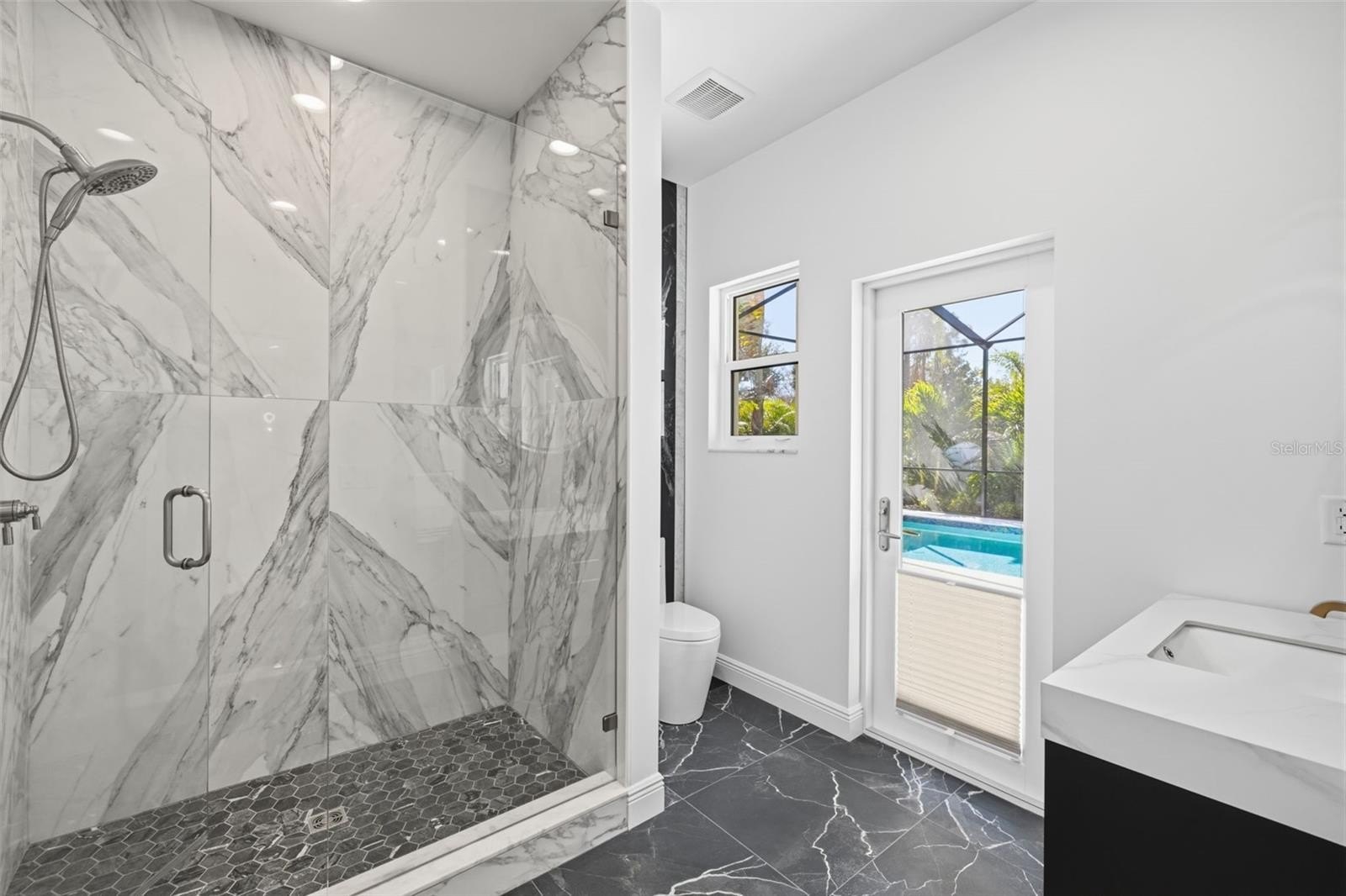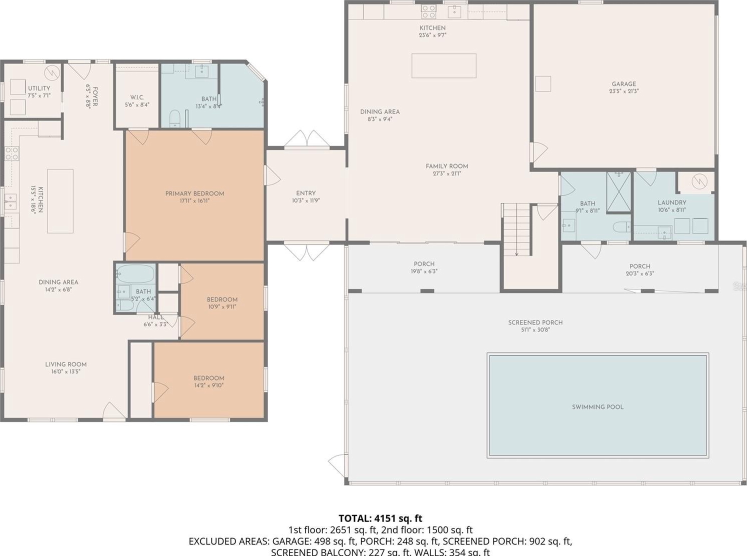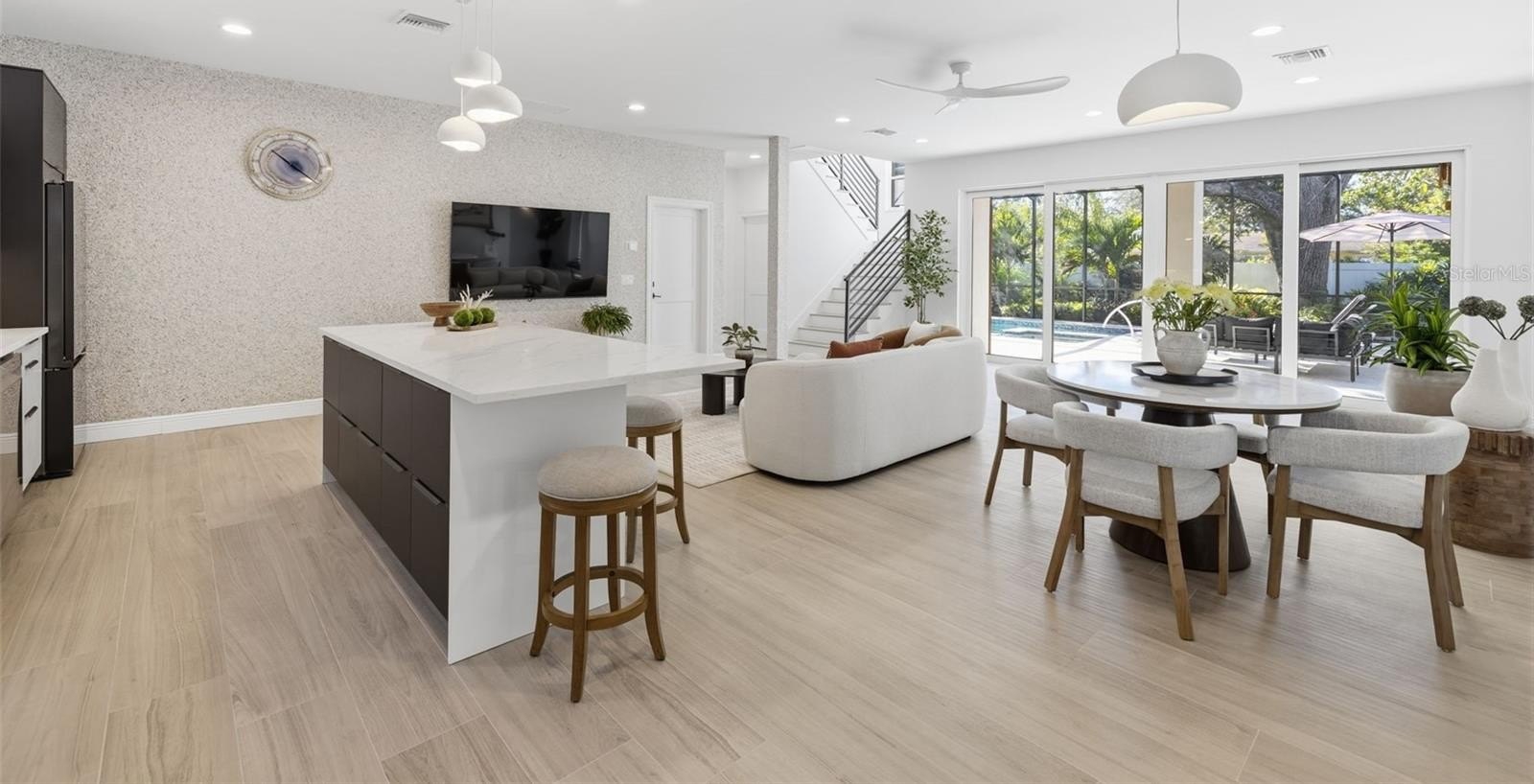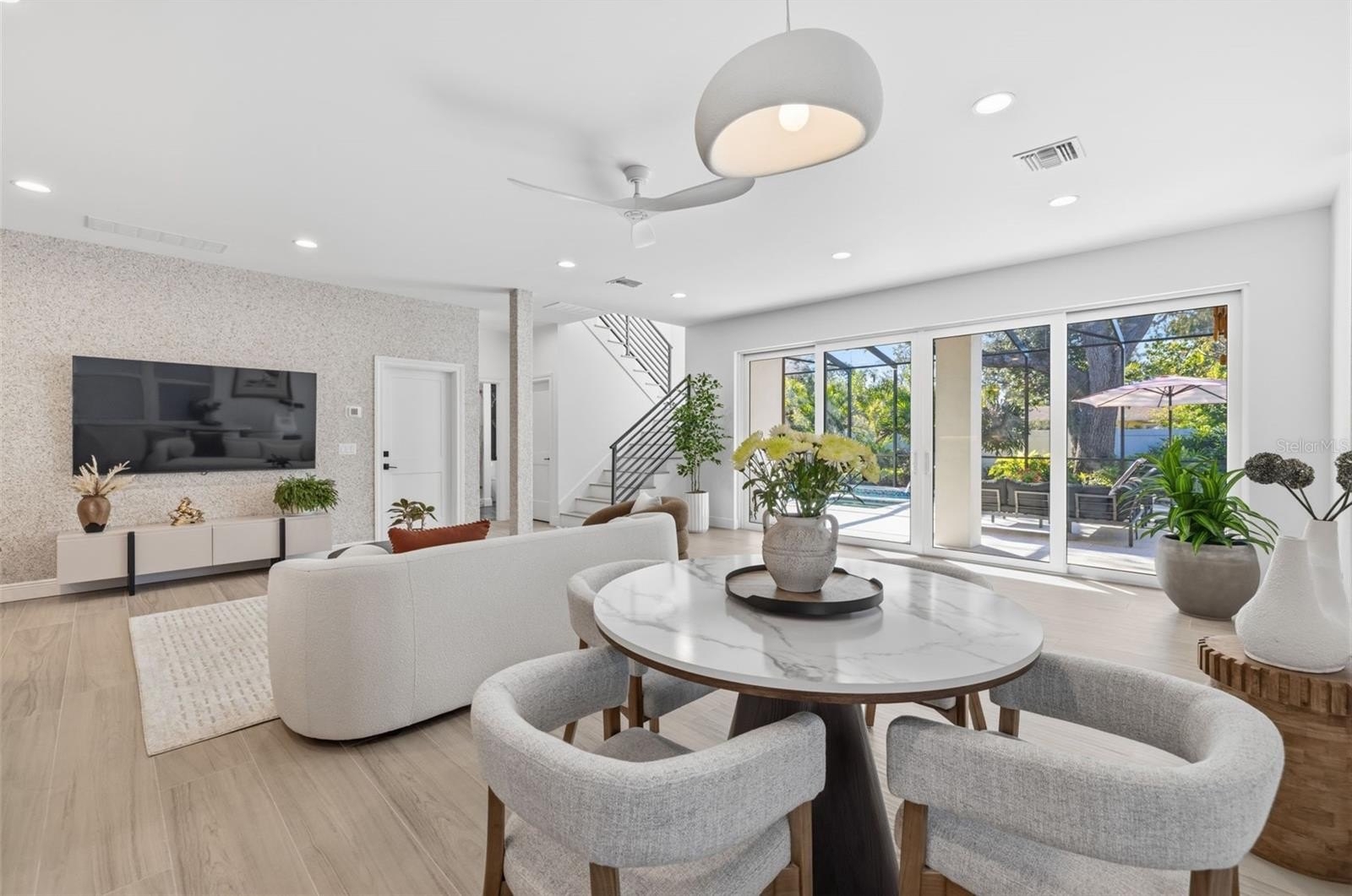 NOTE: Zestimate does NOT reflect the home's size, renovation, or recent new construction addition quality. You haven’t found paradise until you step inside 639 43rd Avenue North in St. Petersburg. Located in the peaceful and coveted Allendale Terrace neighborhood, just 5 minutes from vibrant downtown St. Petersburg and only 15 minutes from the beaches, this extraordinary multi-generational estate offers luxury, privacy, and thoughtful design throughout. The original home was completely remodeled in 2021, blending timeless character with modern elegance. As you arrive via the enchanting circular walkway and enter the original residence, you’re welcomed into a spacious, fully updated kitchen and living room designed for comfort and entertaining. Two bedrooms are positioned to the right, ideal for guests or family members. Beyond the kitchen sits an oversized laundry room, and across from it, a stunning master retreat featuring a fully remodeled custom-tiled bathroom and oversized bedroom with a private sitting area — a peaceful escape within the home. The original home and new addition are connected by an enclosed breezeway with French doors providing entrances to both the north and south sides of the property. Passing through the breezeway, you enter the new 2,821 square foot addition completed in August 2024. This space feels like a brand-new home featuring a gorgeous modern kitchen within the breathtaking 820 square foot great room, perfect for entertaining gatherings of any size. Large multi-panel sliding glass doors open to the 1,500 square foot lanai and pool area. The oasis-style pool and lanai, completed in September 2024, create a resort-like experience in your own backyard. The 30 ft by 14 ft heated pool is accented with blue iridescent tile and complemented by a separate hot tub area, surrounded by lush tropical landscaping, palm trees, and mature oaks offering privacy and serenity. A striking staircase with contemporary chandelier and metal railing leads upstairs to a thoughtfully designed split floor plan featuring two expansive master suites positioned on opposite sides for maximum privacy. Each suite is approximately 650 square feet and includes a large bedroom, additional living space ideal for an office or lounge, a full custom-tiled bathroom, generous walk-in closet, and screened-in balcony — perfect for morning coffee or evening cocktails. In total, the home offers 4,518 square feet of air-conditioned space with five bedrooms, three of which are true master suites, five full custom-tiled bathrooms, and two full kitchens - ideal for multi-generational living while maintaining privacy. There are two laundry rooms, including one with an oversized washer and dryer for convenience. Water quality is maintained by a water filtration and reverse osmosis system. The home also features a large attached two-car garage with an “oatmeal” pattern epoxy floor and a separate garden utility shed for additional storage. Situated on a double lot totaling 12,197 square feet, the property is surrounded by lush tropical landscaping and a lock-enabled fence for privacy and security. A seven-zone Rain Bird irrigation system with an on-site deep well maintains the grounds year-round. The entire home received a NEW ROOF in January 2024, and all windows and exterior doors are storm-resistant and code compliant. Flood insurance is NOT required for this home. This is more than just a home — it’s a private compound designed with vision and style.