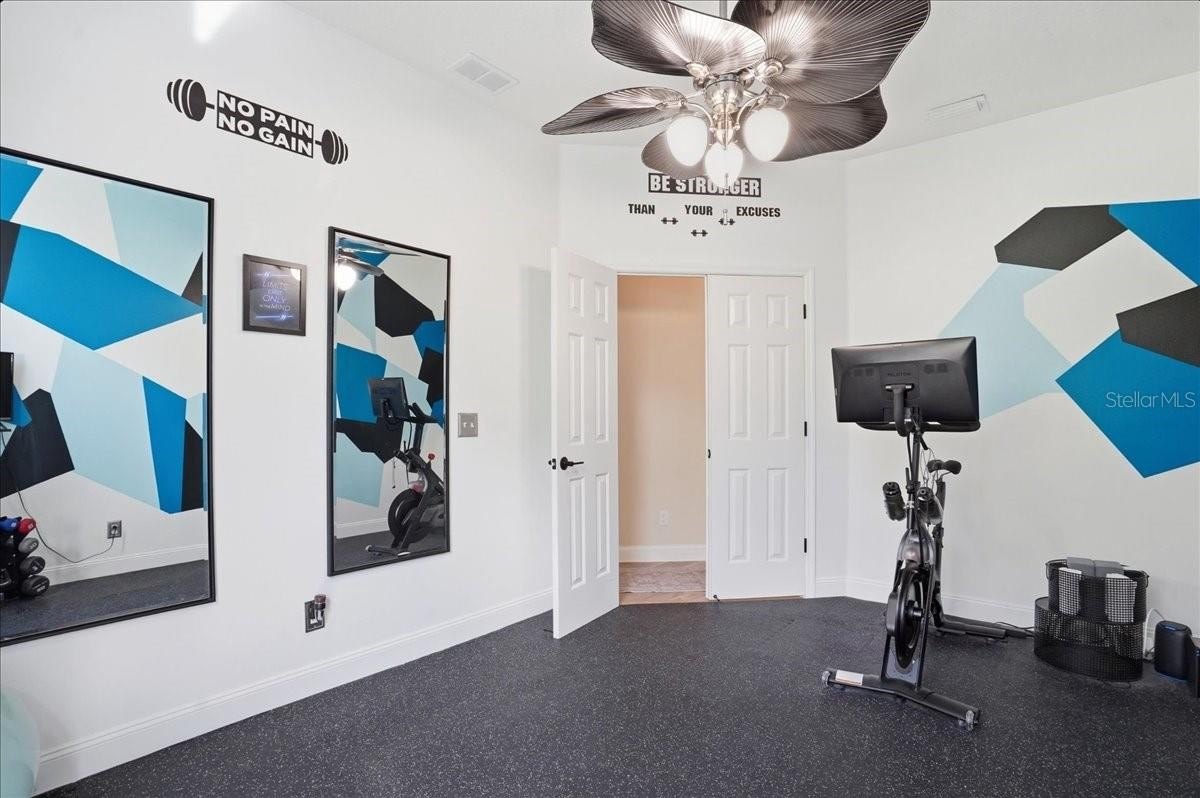The fully updated kitchen features new appliances and custom-built pantry shelving, perfect for both everyday living and entertaining. An upgraded laundry room adds both convenience and style, while the dedicated in-home gym, ideal as an office or flex space, offers the versatility today’s lifestyle demands.