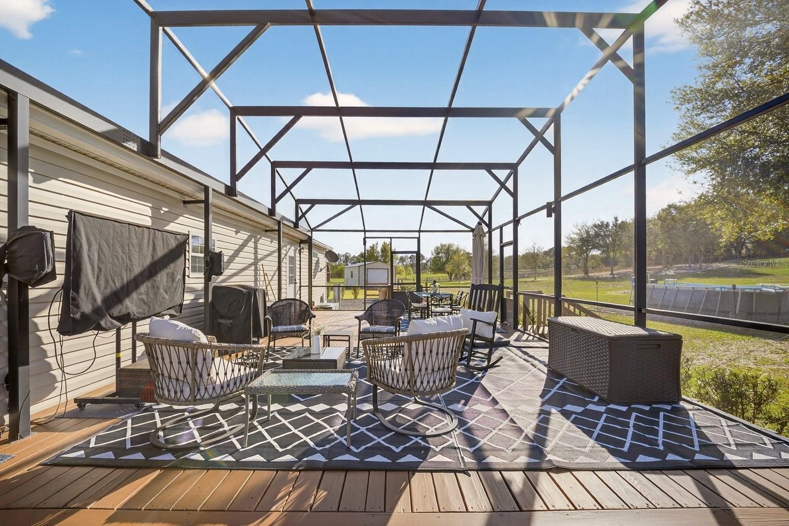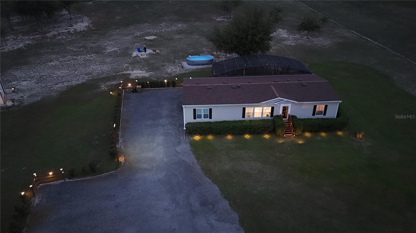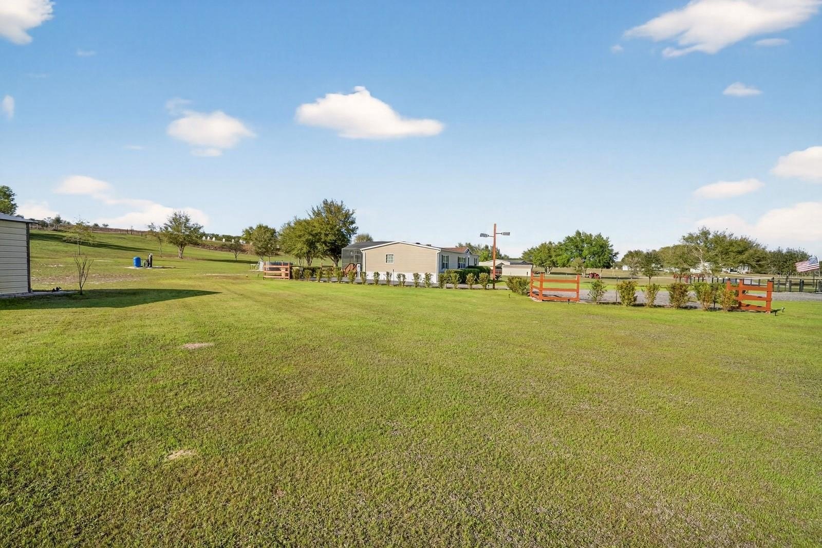 Discover peaceful country living with modern convenience on 3.05 acres of tranquility! Built in 2020, this 1,980 sq ft double-wide manufactured home offers 3 bedrooms and 2 bathrooms with thoughtful upgrades throughout. A brand-new roof (2025) adds peace of mind, while a Bluetooth digital thermostat enhances comfort and efficiency. When you enter the home, you’ll be impressed by the attention to detail and spacious open layout. The large kitchen features a generous island with sitting area for 6 people, abundant cabinetry, and plenty of space for cooking and gathering. Elegant vinyl plank flooring flows throughout the home with no carpet, creating a modern and low-maintenance living space. The primary suite offers a spacious bedroom and a beautiful bath with dual vanities, a relaxing garden tub, and a walk-in shower. The home also features two additional large bedrooms and a second full bathroom, providing plenty of space for family, guests, or a home office. Outdoor living truly shines with a 50x20 screened deck—perfect for relaxing while enjoying wildlife, sunsets, and peaceful lake views with lake access. Cool off in the above-ground pool and enjoy the recently installed winter rye grass, the envy of the community. This is one of only two homes in the neighborhood with a full irrigation system. Designed for versatility, the property includes an electric car charger and RV hookups with 30- and 50-amp service. An additional RV setup with power, water, and a waste dump station offers excellent potential for guest quarters or income opportunities. The 18x20 powered workshop with a concrete floor can also be used as a garage. The property is fully fenced and features a long driveway with offset parking for added convenience. Ideally located just minutes from Lake Harris, Downtown Clermont, Downtown Tavares, Mission Inn Resort with championship golf courses and restaurants, and JB Boondock’s Bar & Grill. This unique property offers space, flexibility, and an unbeatable lifestyle opportunity. Schedule your private showing today!