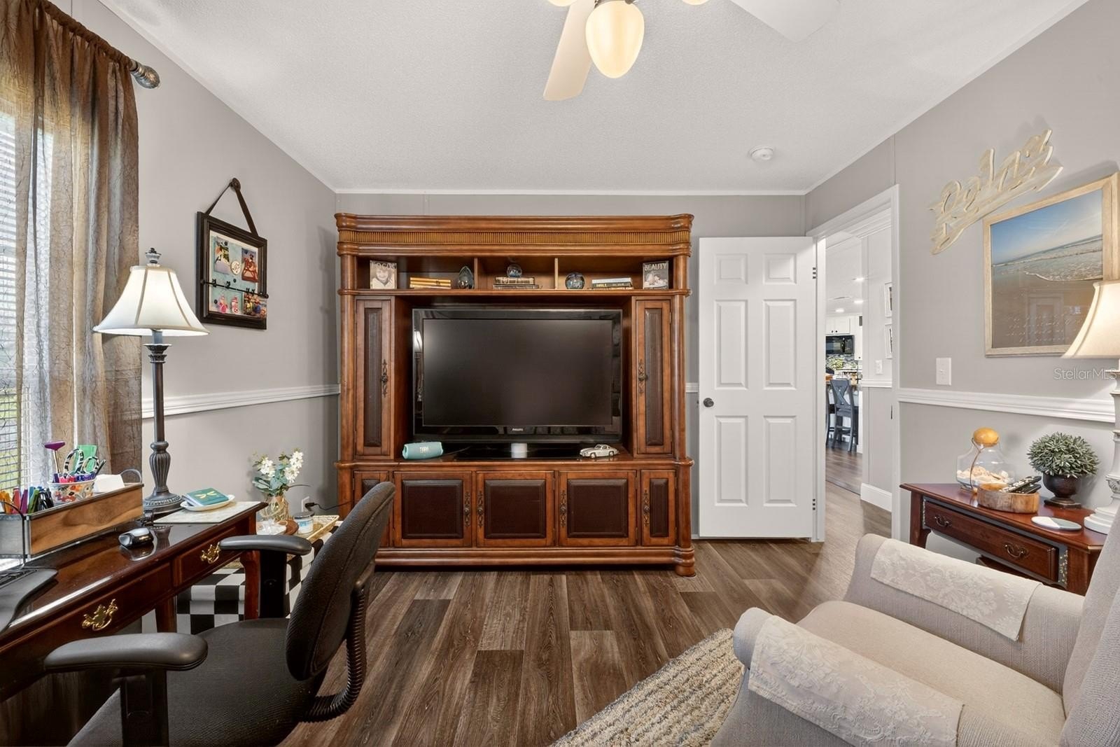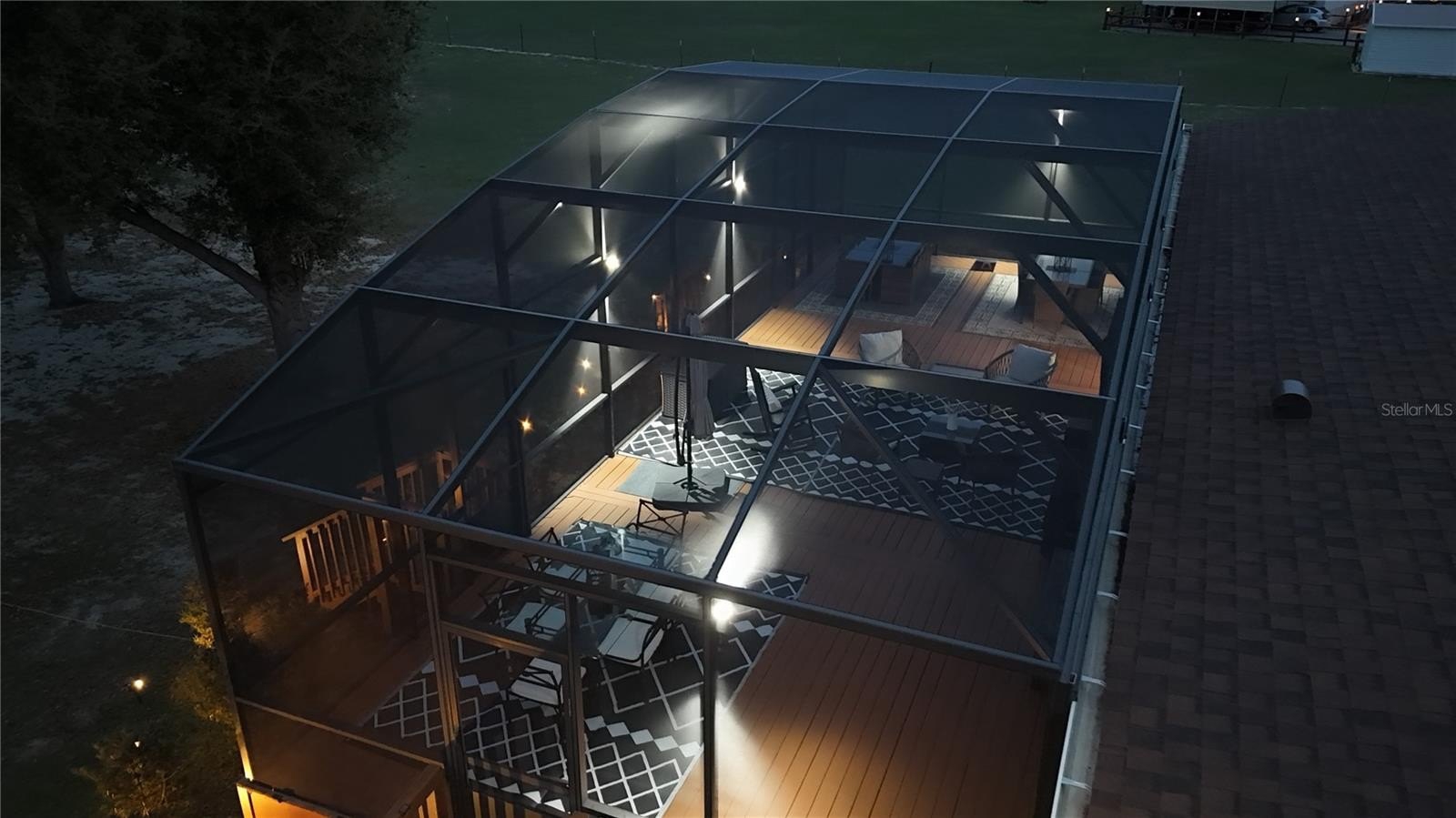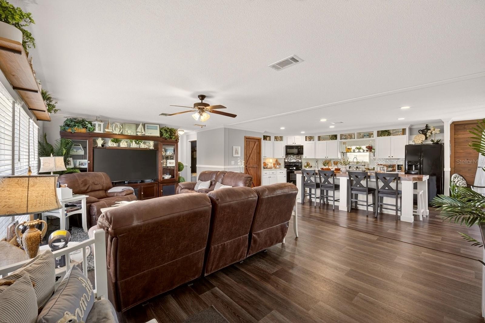 Discover peaceful country living with modern convenience on 3.05 acres of tranquility! Built in 2020, this 1,980 sq ft double-wide manufactured home offers 3 bedrooms and 2 bathrooms with thoughtful upgrades throughout. A brand-new roof (2025) adds peace of mind, while a Bluetooth digital thermostat enhances comfort and efficiency. When you enter the home, you’ll be impressed by the attention to detail and spacious open layout. The large kitchen features a generous island with sitting area for 6 people, abundant cabinetry, and plenty of space for cooking and gathering. Elegant vinyl plank flooring flows throughout the home with no carpet, creating a modern and low-maintenance living space. The primary suite offers a spacious bedroom and a beautiful bath with dual vanities, a relaxing garden tub, and a walk-in shower. The home also features two additional large bedrooms and a second full bathroom, providing plenty of space for family, guests, or a home office. Outdoor living truly shines with a 50x20 screened deck—perfect for relaxing while enjoying wildlife, sunsets, and peaceful lake views with lake access. Cool off in the above-ground pool and enjoy the recently installed winter rye grass, the envy of the community. This is one of only two homes in the neighborhood with a full irrigation system. Designed for versatility, the property includes an electric car charger and RV hookups with 30- and 50-amp service. An additional RV setup with power, water, and a waste dump station offers excellent potential for guest quarters or income opportunities. The 18x20 powered workshop with a concrete floor can also be used as a garage. The property is fully fenced and features a long driveway with offset parking for added convenience. Ideally located just minutes from Lake Harris, Downtown Clermont, Downtown Tavares, Mission Inn Resort with championship golf courses and restaurants, and JB Boondock’s Bar & Grill. This unique property offers space, flexibility, and an unbeatable lifestyle opportunity. Schedule your private showing today!